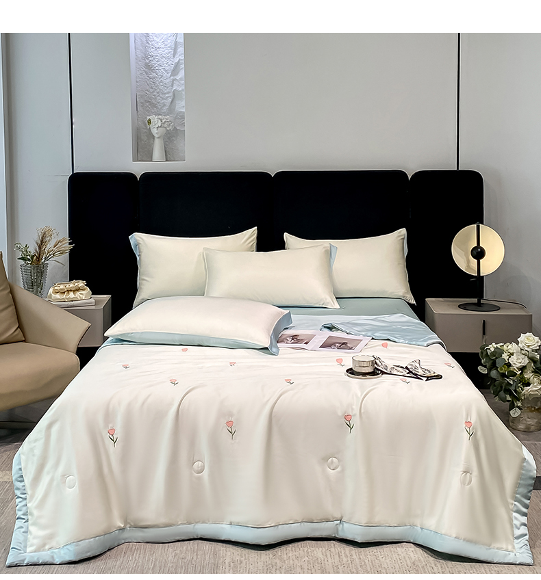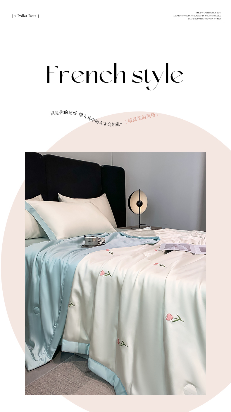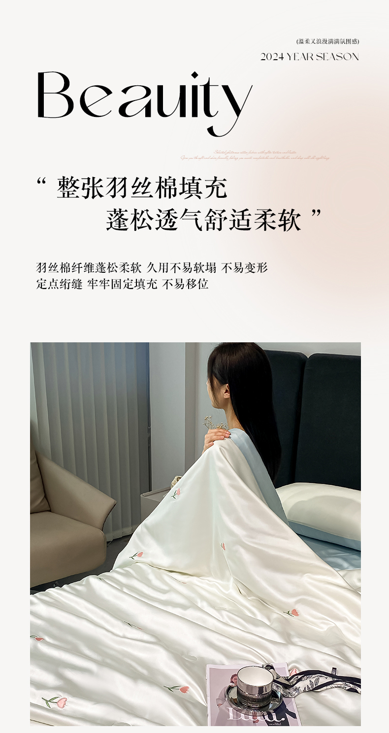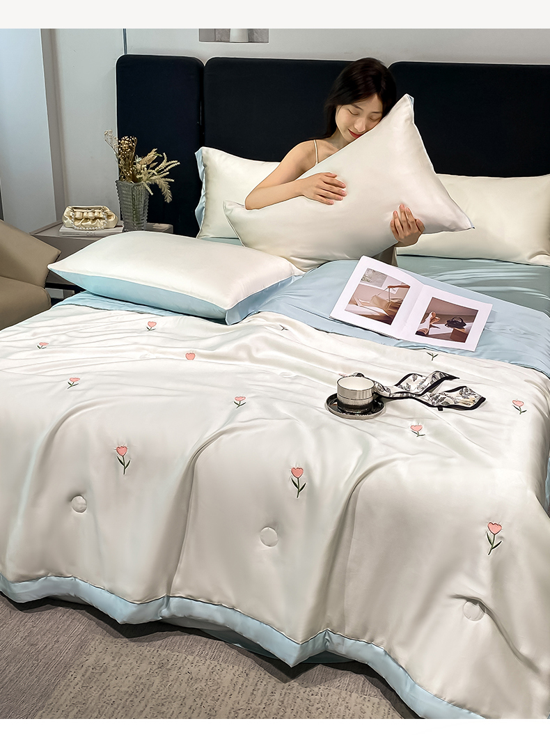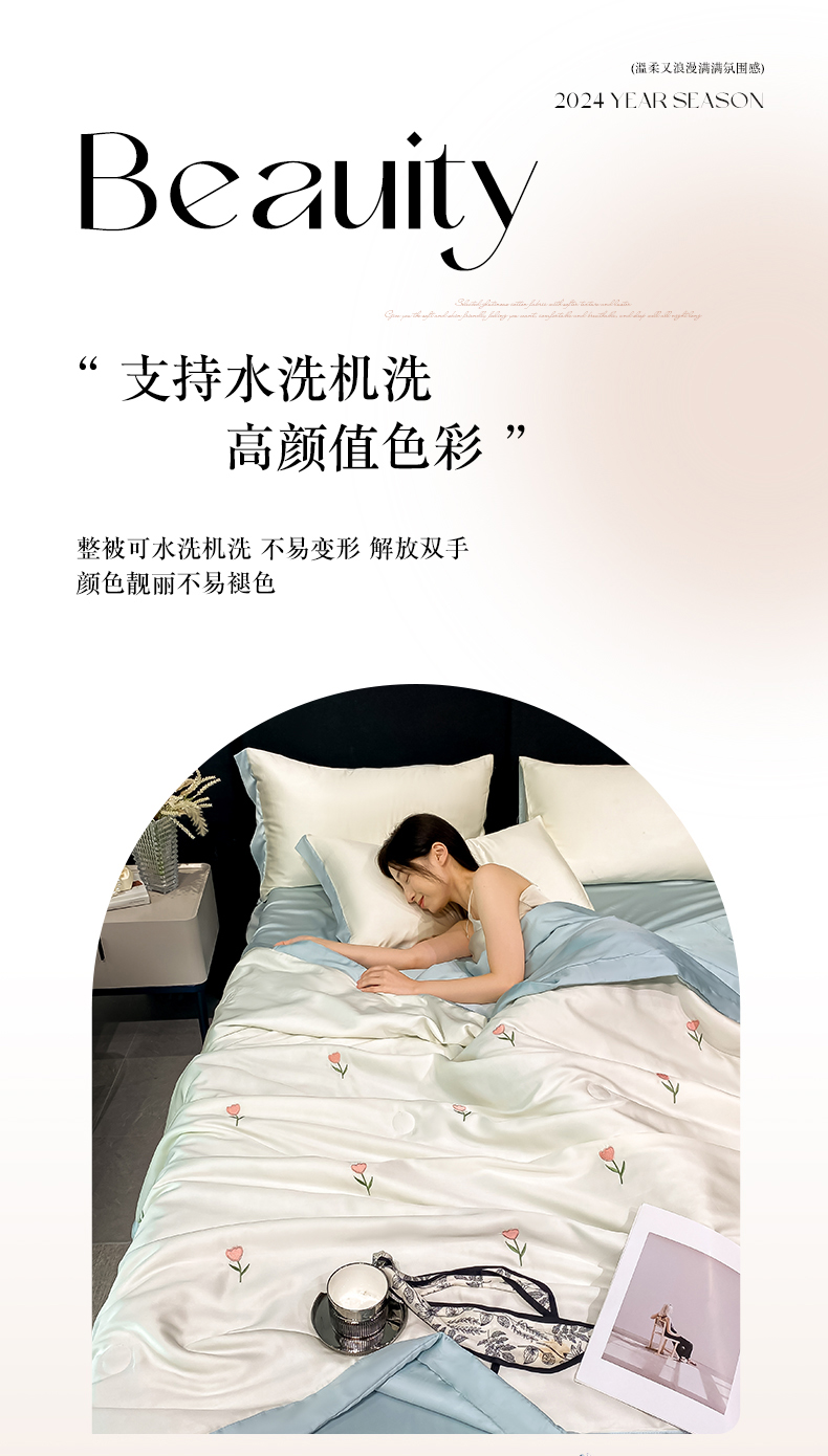 当前位置: 91家纺网 > 商品网购 > 床品套件 > 四件套 > 夏被四件套 > 利欧 2025新款刺绣水洗真丝夏被四件套 花朵-奶白蓝