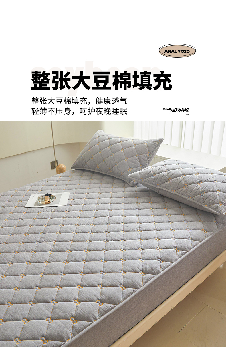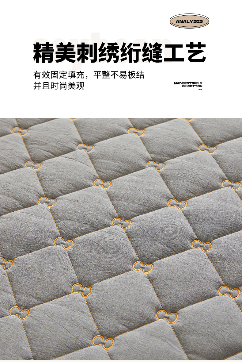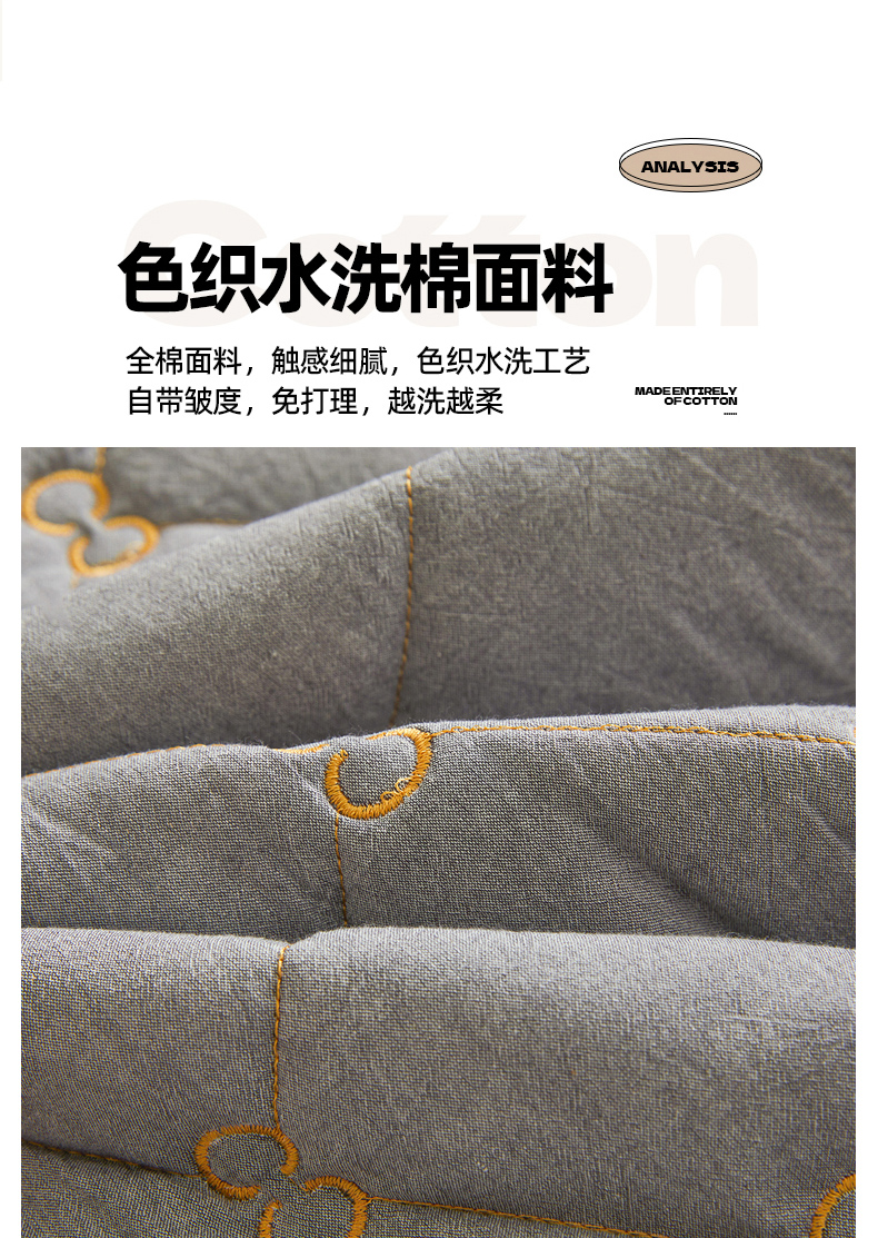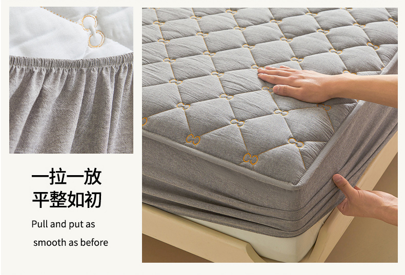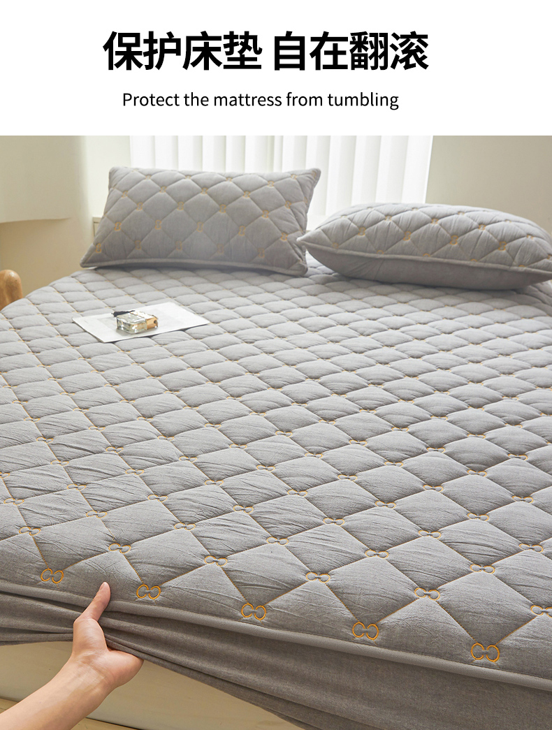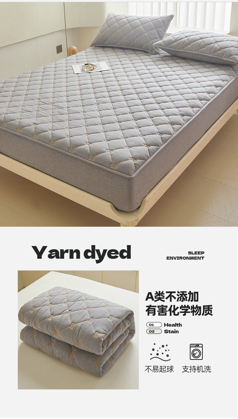 • 91家纺网 家纺一手货源 找家纺 糯米猪 2024新款A类全棉刺绣色织水洗棉夹棉床笠 星辰灰