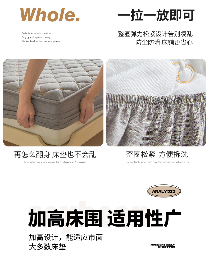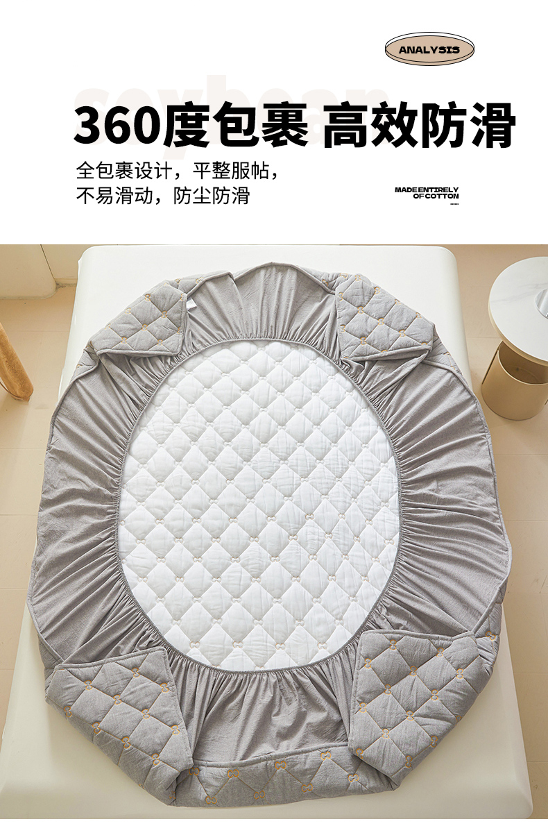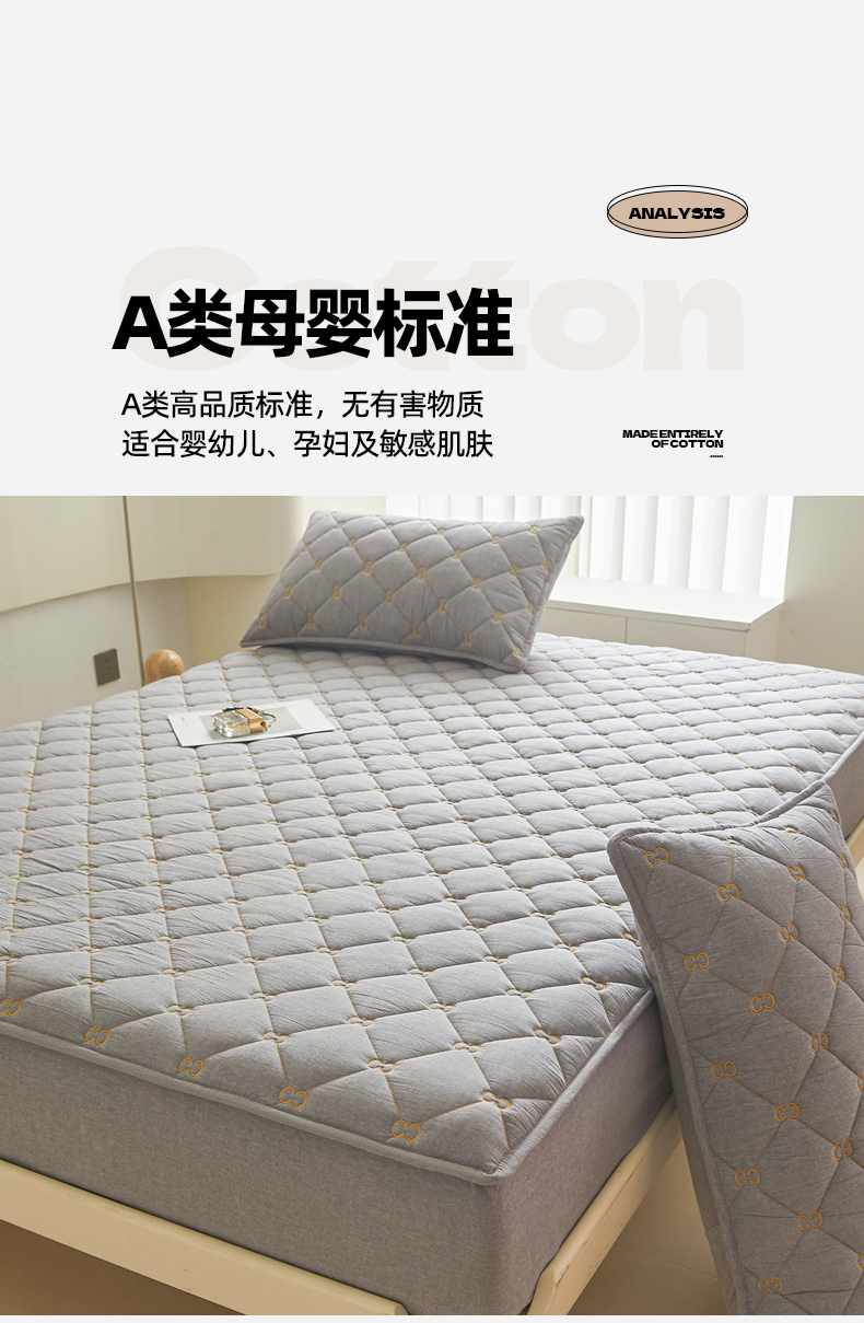 • 91家纺网 家纺一手货源 找家纺 (总)糯米猪家纺 2025春夏新款亲肤棉六面全包防水压花床笠单件单床笠,组合图仅供展示,典雅白,高级灰,静谧绿,浅卡其,水雾蓝,樱花粉
