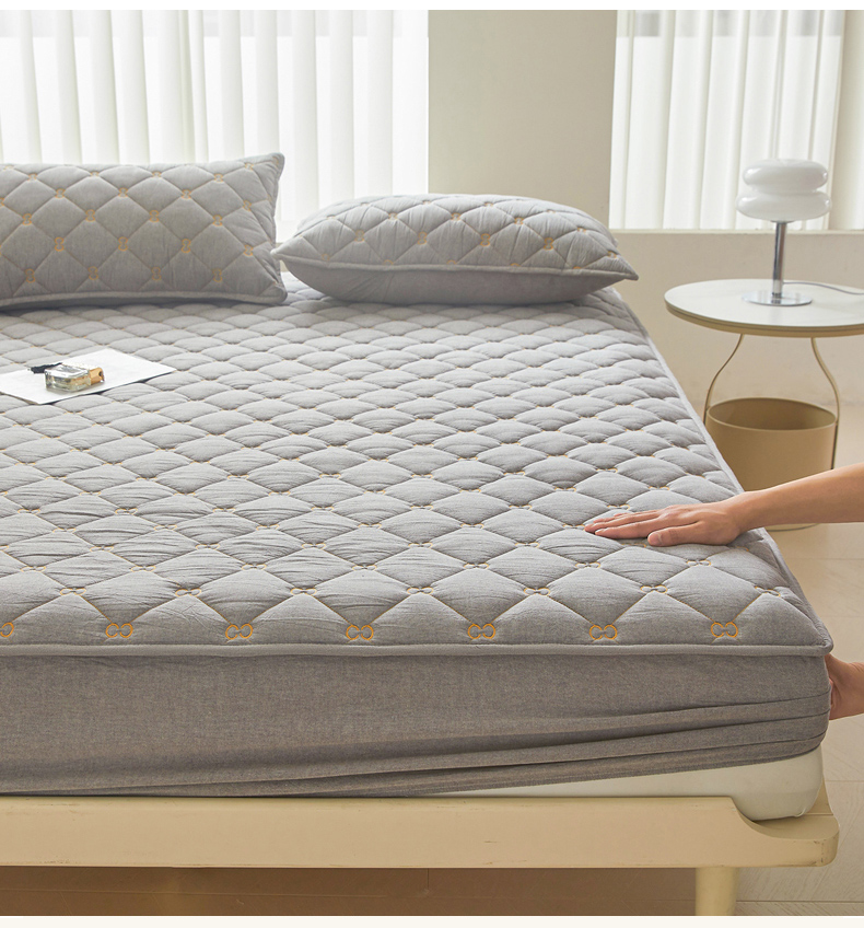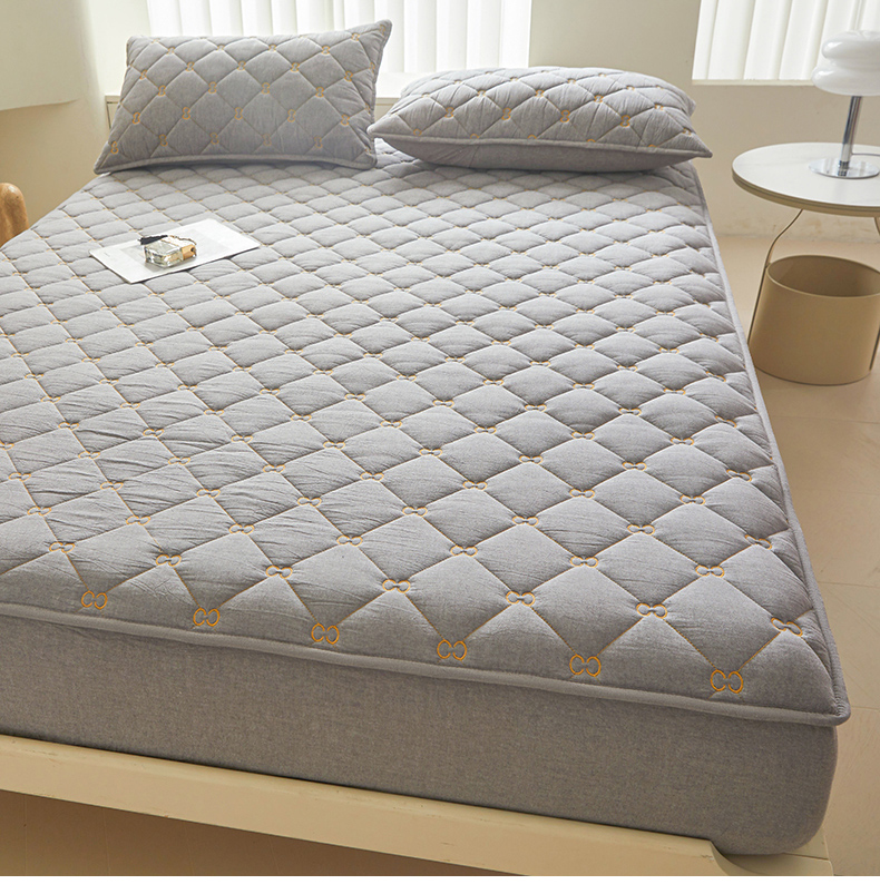 糯米猪 2024新款A类全棉刺绣色织水洗棉夹棉床笠 星辰灰