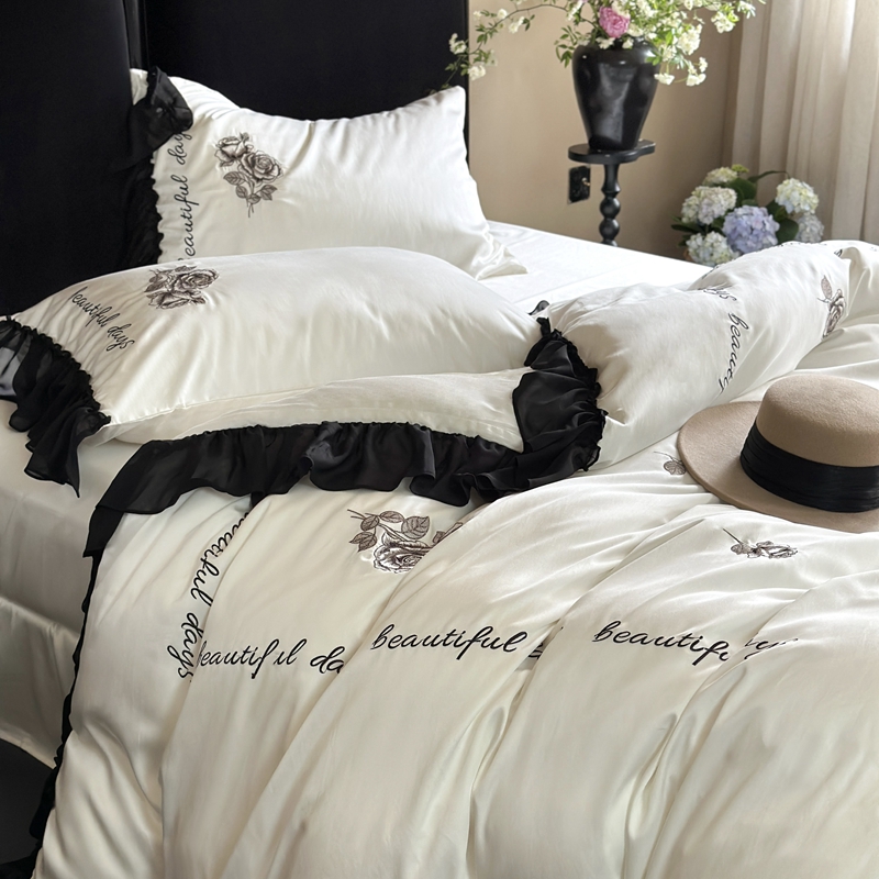 当前位置: 91家纺网 > 商品网购 > 床品套件 > 四件套 > 莱赛尔四件套 > MIU缪家居 2024新款80支兰精天丝轻奢四件套系列-巴黎之约(有同款夏被四件套) 乳白