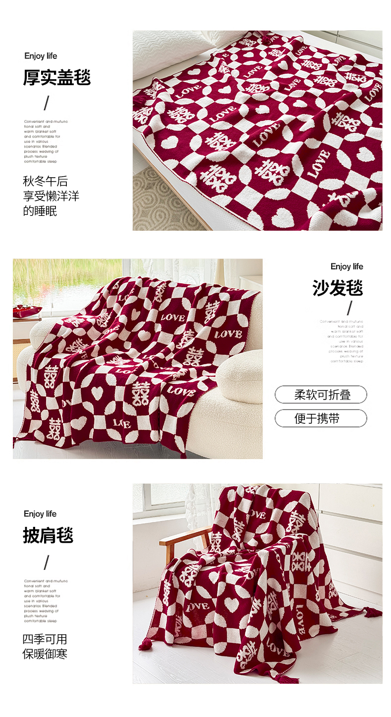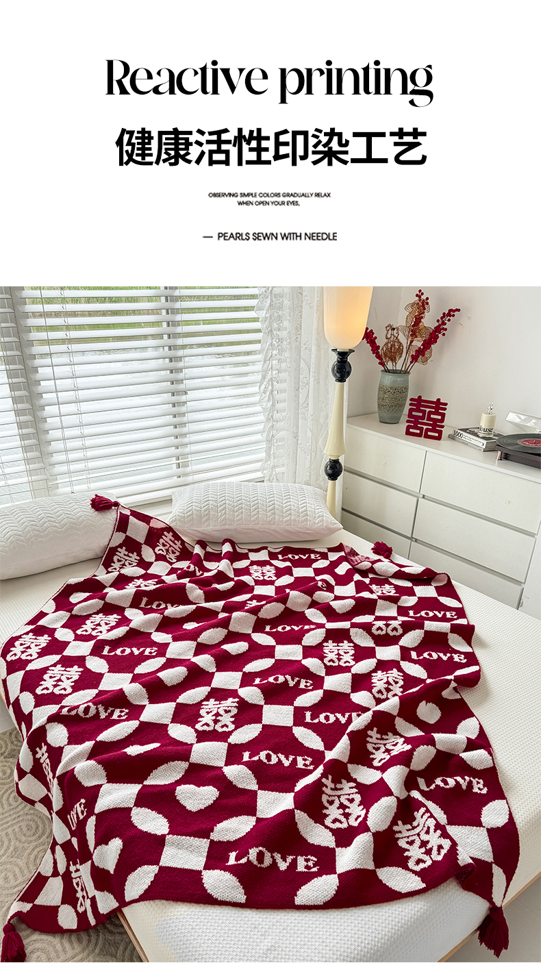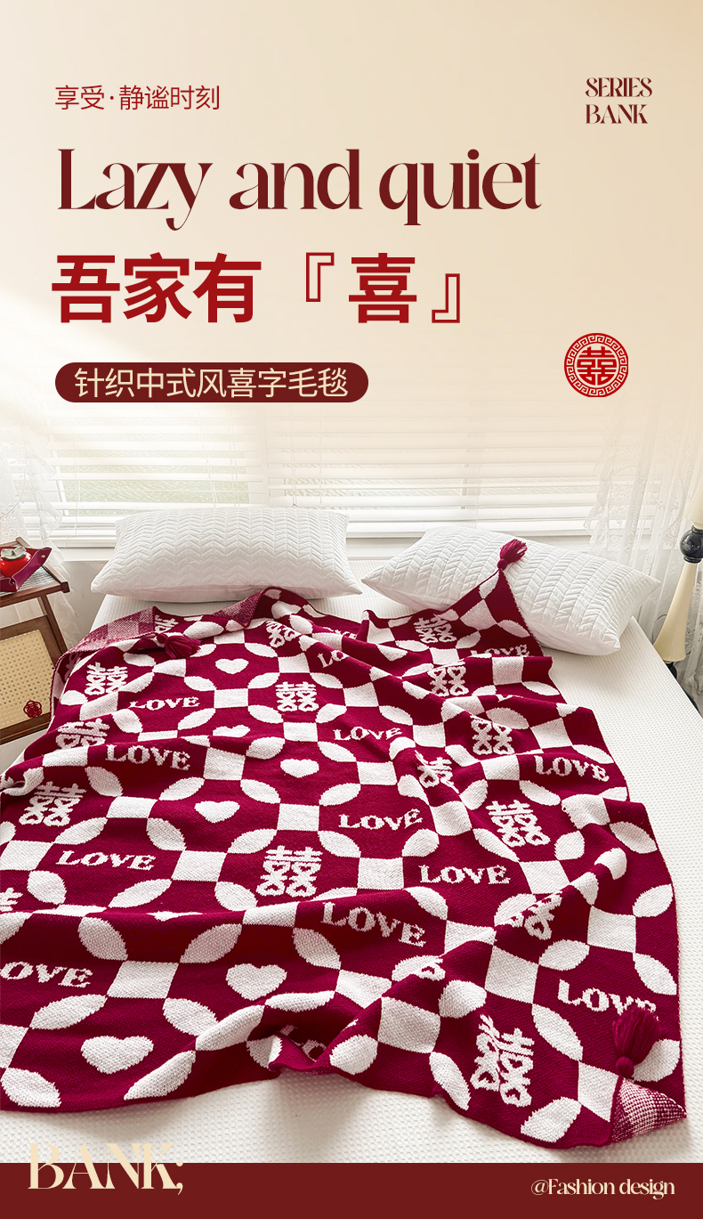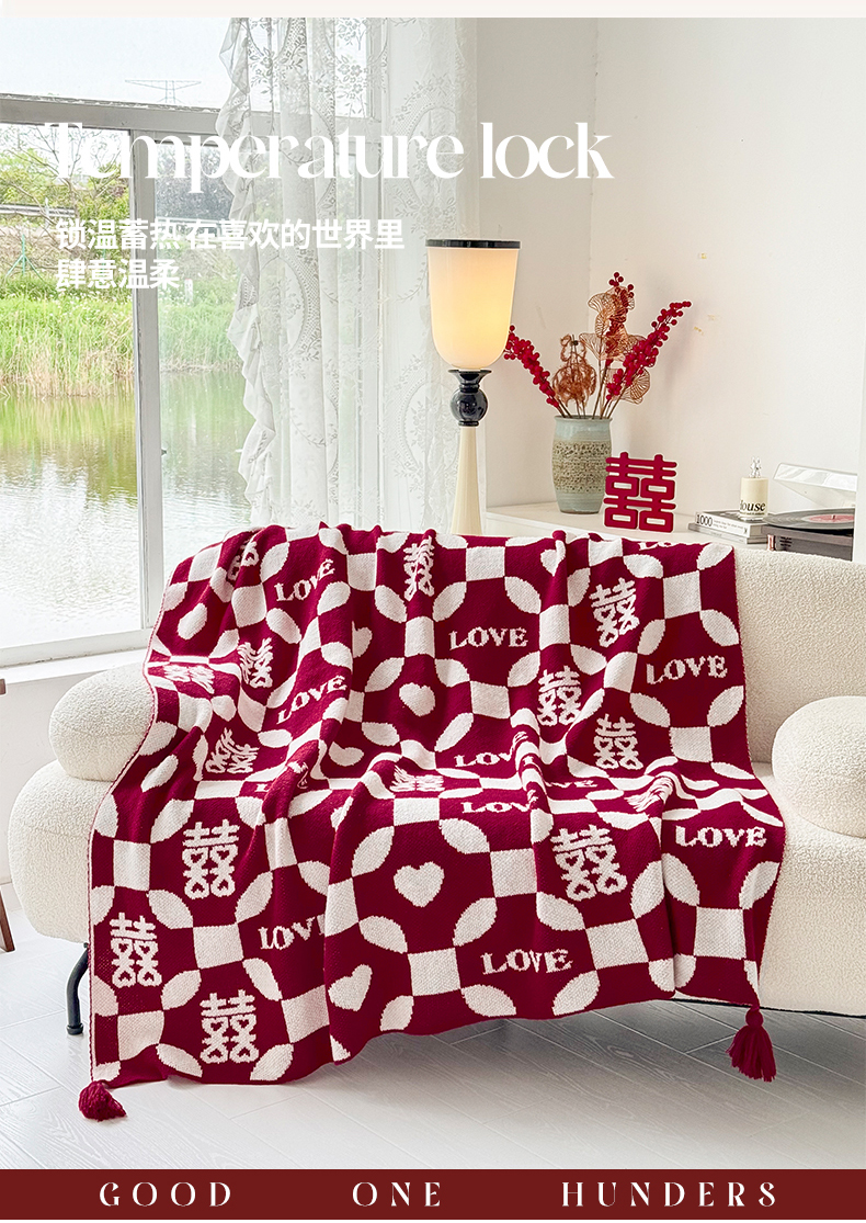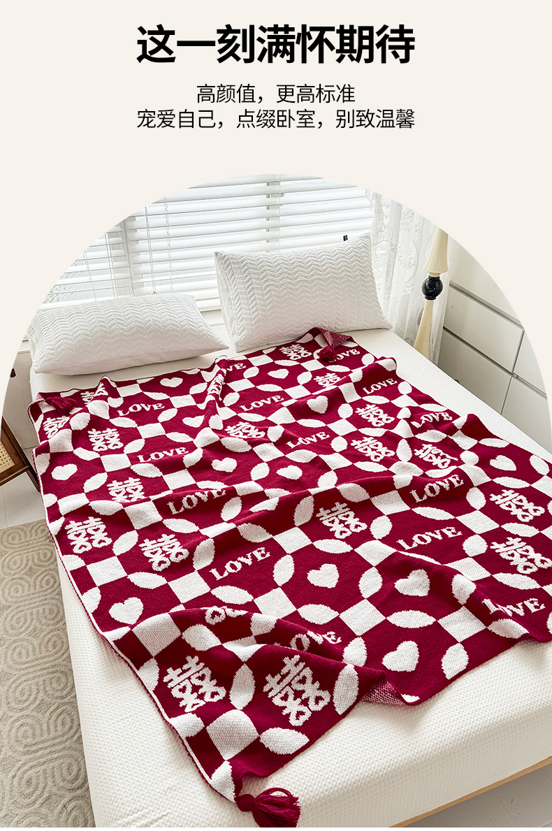 当前位置: 91家纺网 > 商品网购 > 毛毯休闲毯绒毯 > 针织毯 > 苏艺针织盖毯 2024新款中式风高端婚礼喜字毛毯 针织毯喜-love喜字盖毯