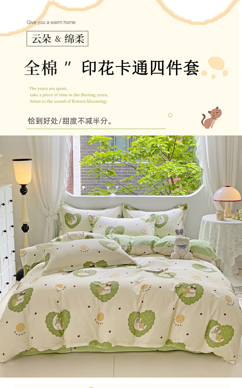 (总)恩泽家纺 2026春夏新款全棉纯棉12868印花四件套(提供买家秀,预留缩水率),花丛小兔子,草莓季,多彩世界,护花使者,花季少女,花梦间,极简主义,凯蒂宝贝,可爱喵,拉菲特,洛琳粉,绿格小熊,帽子小狗,喵喵,魔法帽,奶油阿布,派对小狗,苹果小猫咪,时尚猫咪粉,田园小花,碎花兔兔,甜小桔,甜心汪·咖,甜心汪·蓝,晚樱,小狗乐乐,小精灵,小萌物,小淘气,小甜心,小熊布丁,小熊猫,星动情节,星梦童话,星愿萌犬,熊猫与牛油果,学院风,雪纳瑞,樱桃派,樱桃兔,樱桃小熊,宅宅女孩