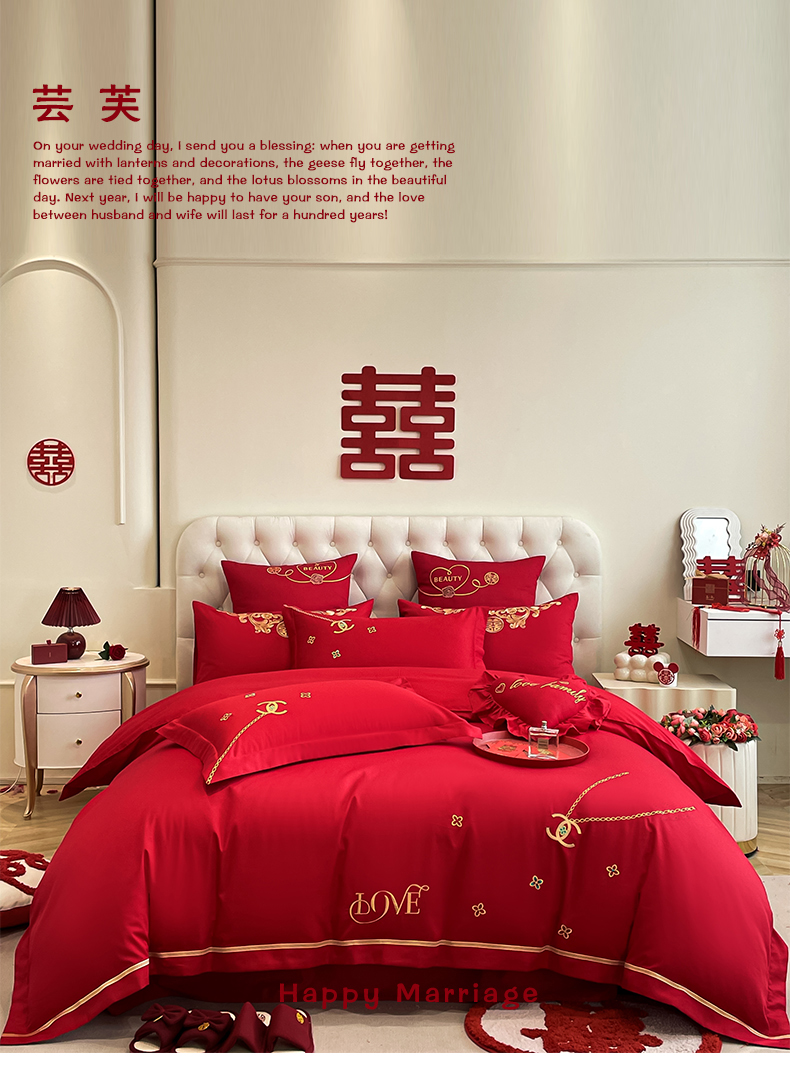 当前位置: 91家纺网 > 商品网购 > 床品套件 > 四件套 > 婚庆四件套 > 东方合美(原:皇家传奇) 2024新款轻奢精梳磨毛刺绣婚庆套件系列 芸芙