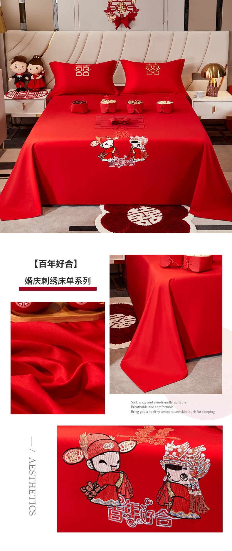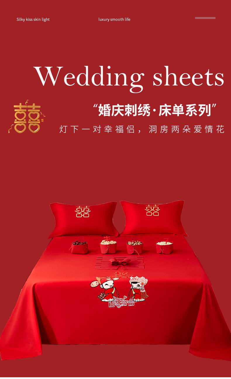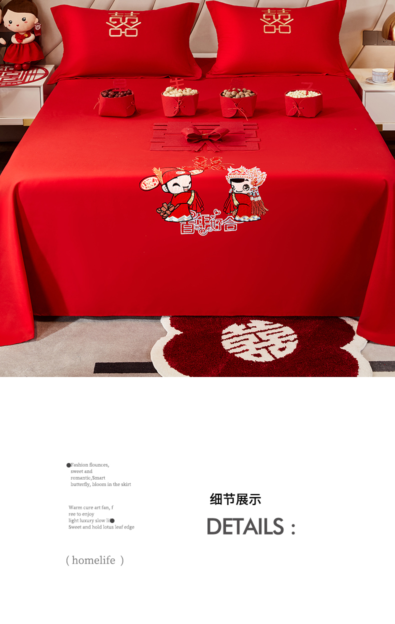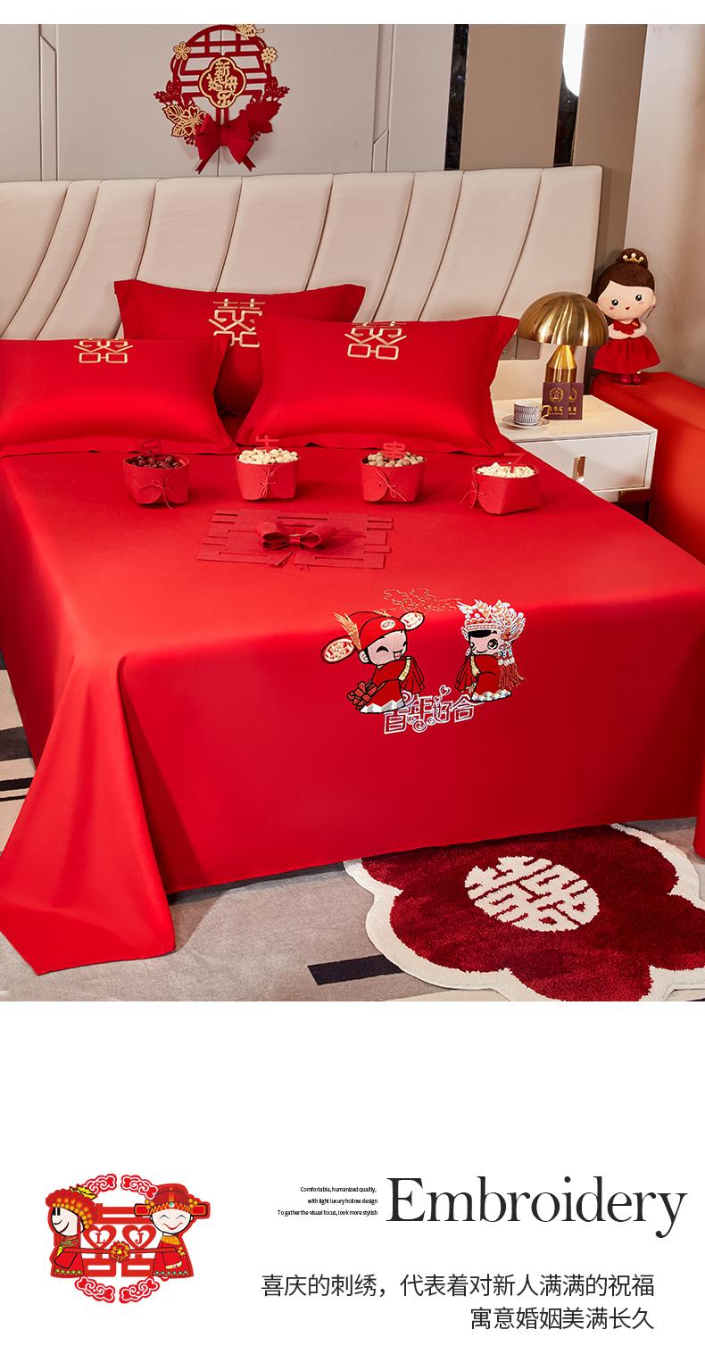 当前位置: 91家纺网 > 商品网购 > 床品套件 > 四件套 > 婚庆四件套 > 玉雅家纺 2025新款婚庆刺绣单品床裙床单床笠三件套 婚庆床单-百年好合