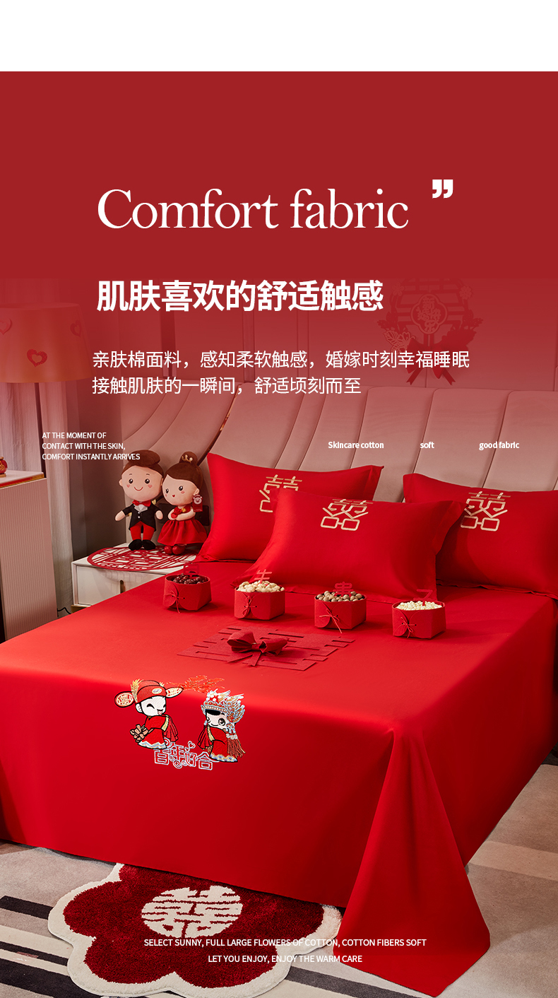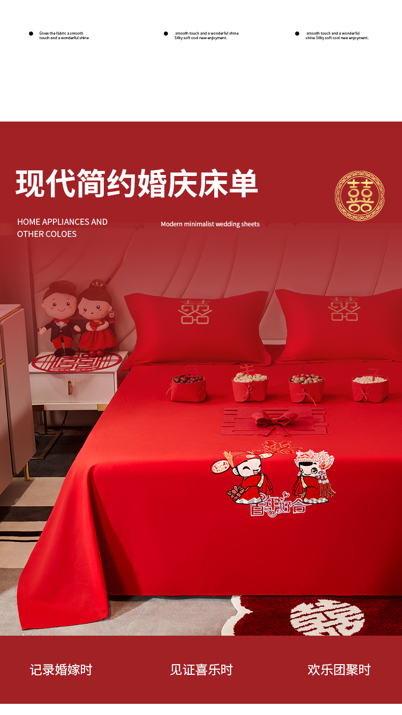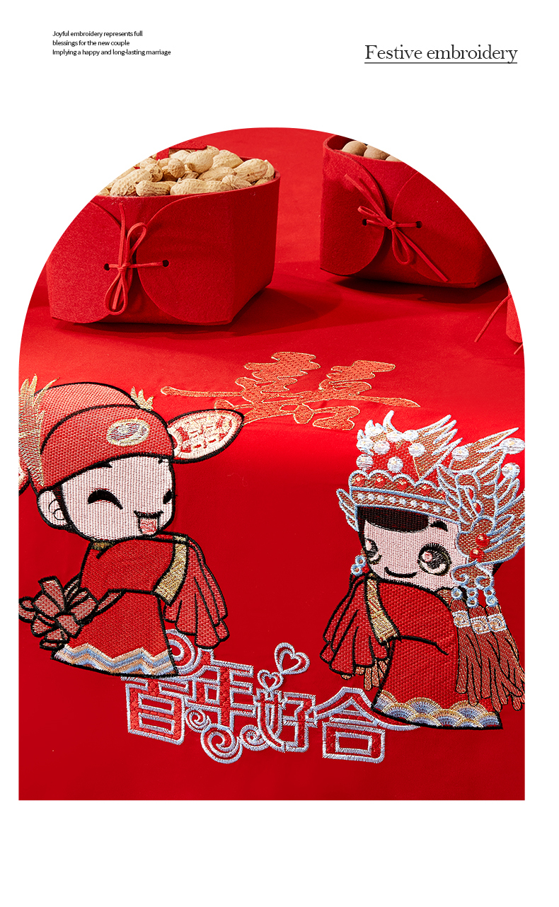 当前位置: 91家纺网 > 商品网购 > 床品套件 > 四件套 > 婚庆四件套 > 玉雅家纺 2025新款婚庆刺绣单品床裙床单床笠三件套 婚庆床单-百年好合