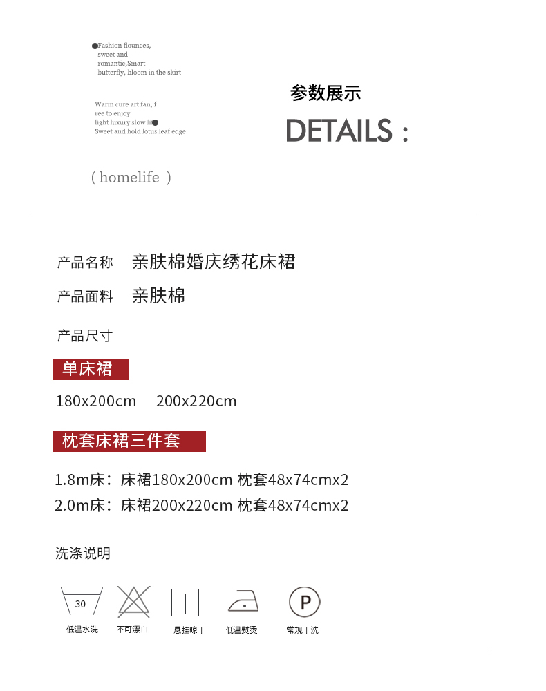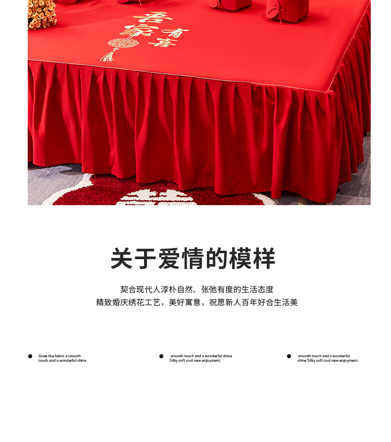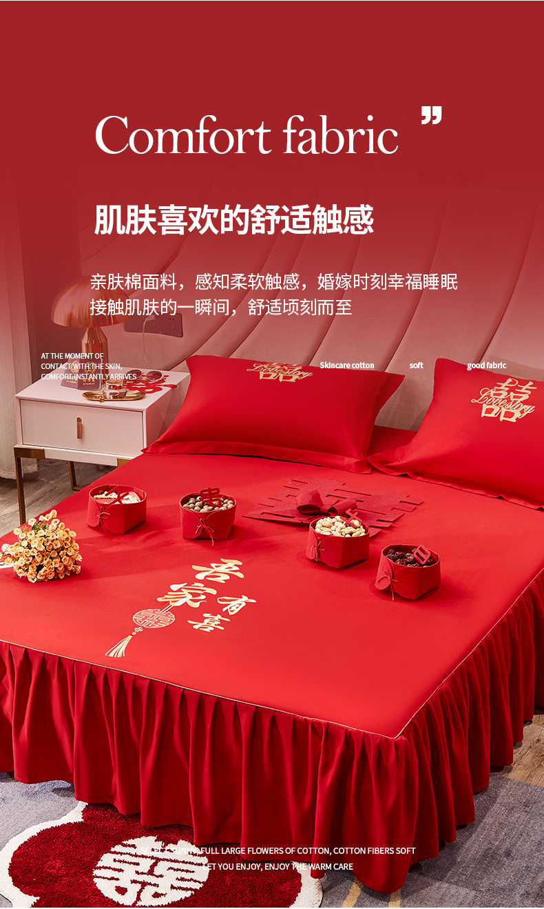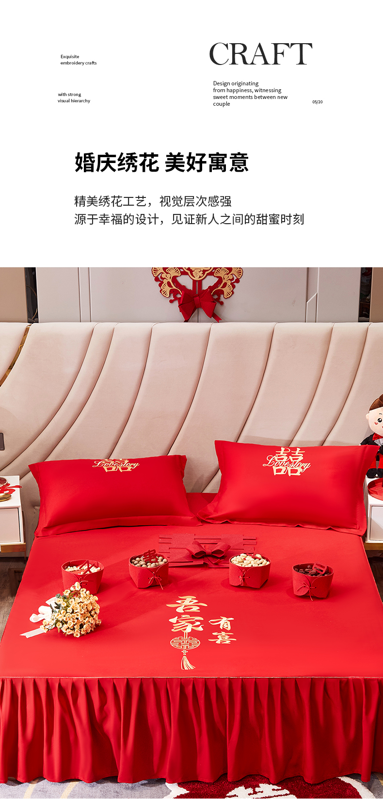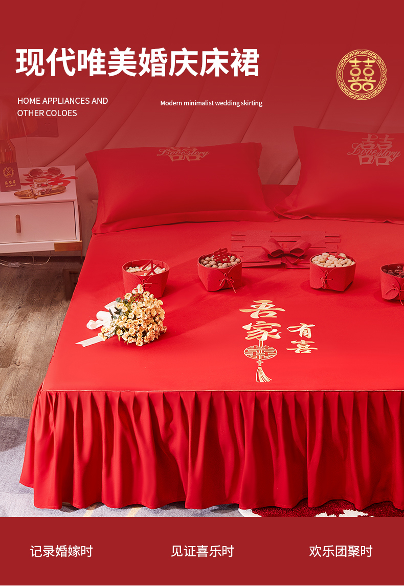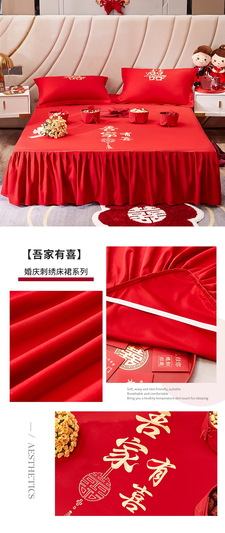 当前位置: 91家纺网 > 商品网购 > 床品套件 > 四件套 > 婚庆四件套 > 玉雅家纺 2025新款婚庆刺绣单品床裙床单床笠三件套 婚庆床裙-吾家有喜