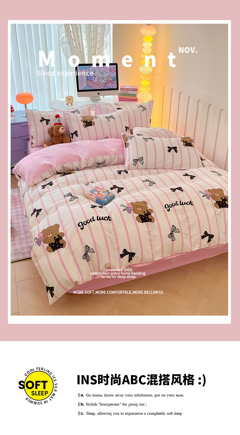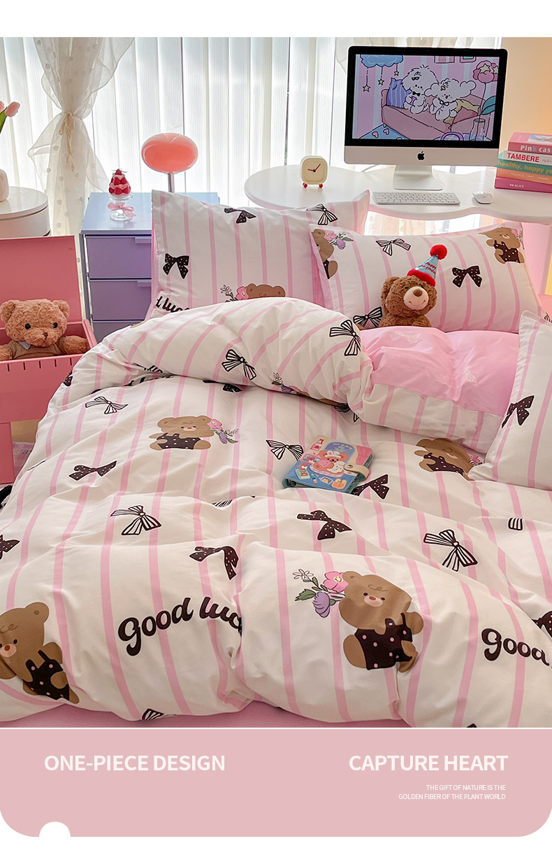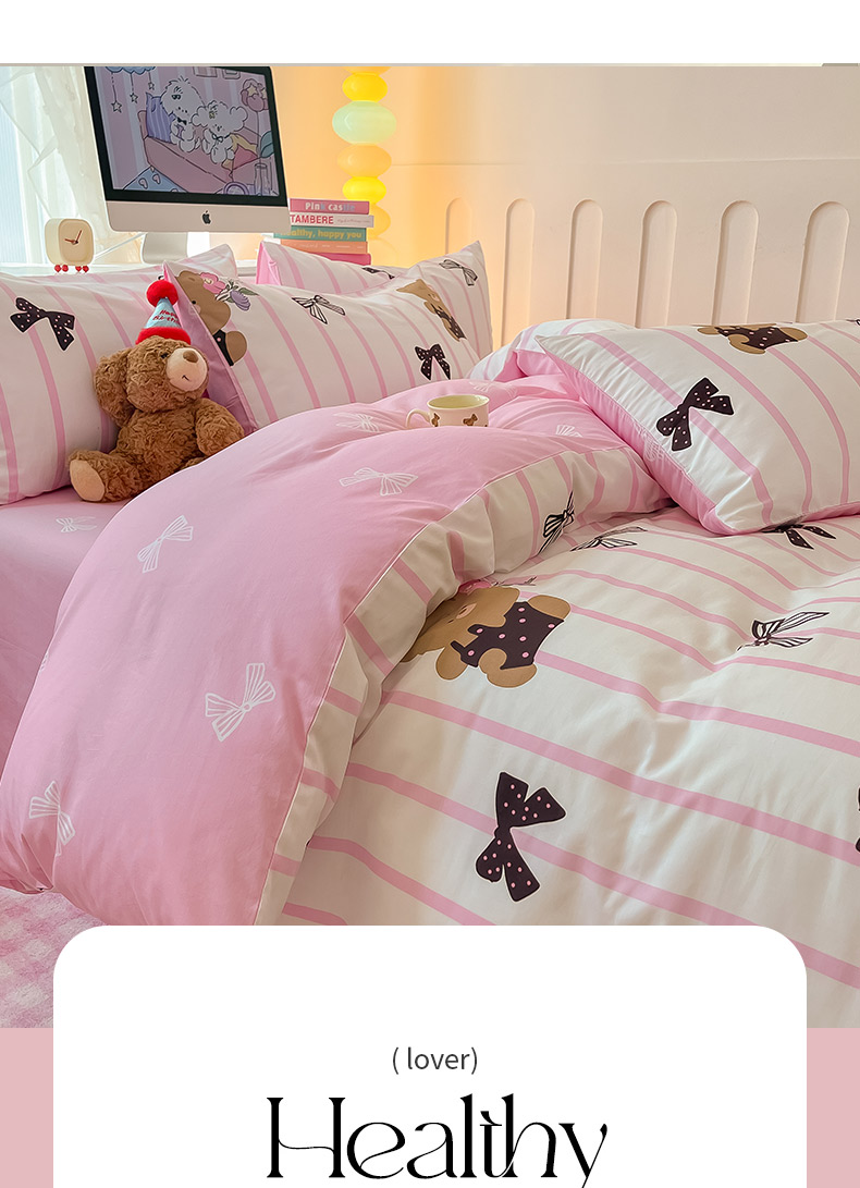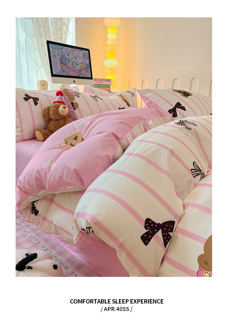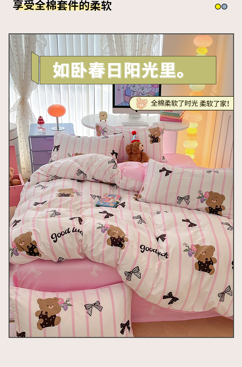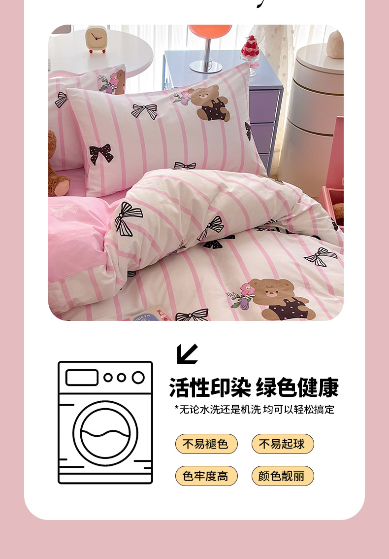 晨希家居 2024新款全棉卡通活性印花四件套蝴蝶小熊