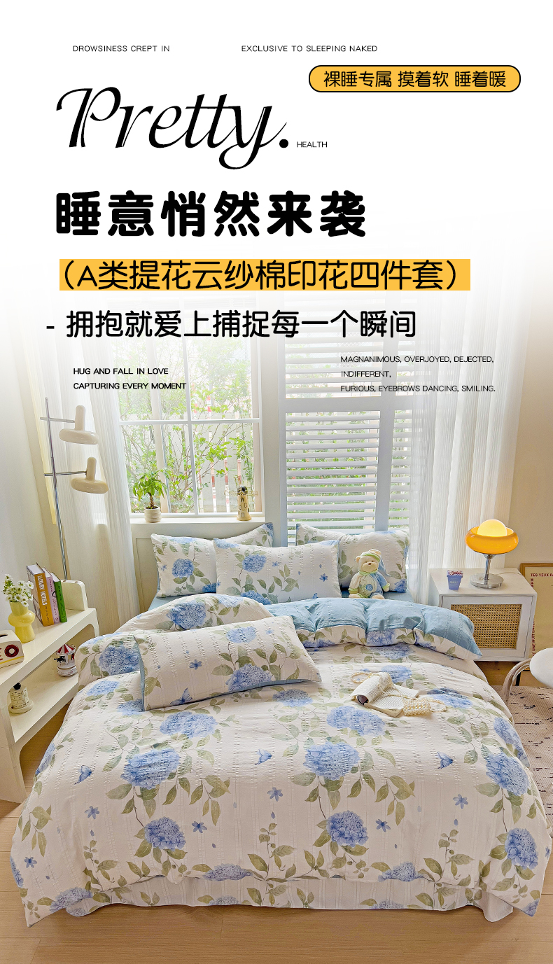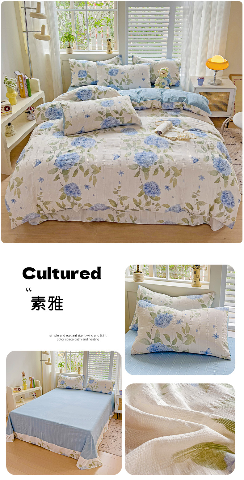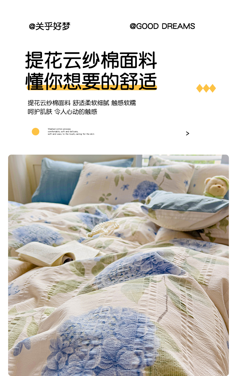 当前位置: 91家纺网 > 商品网购 > 床品套件 > 四件套 > 其它四件套 > 优选良品 2025新款有氧提花云纱棉圆角吊边工艺款四件套学生三件套素雅