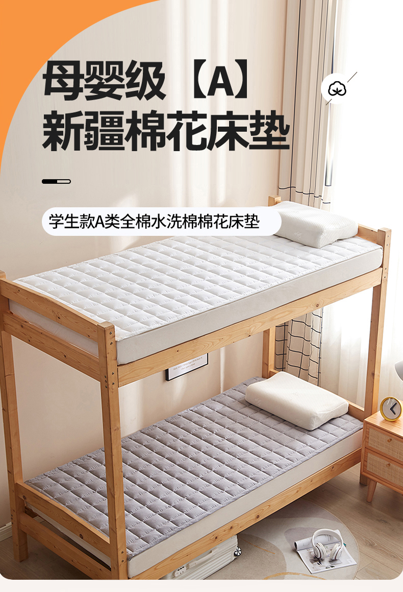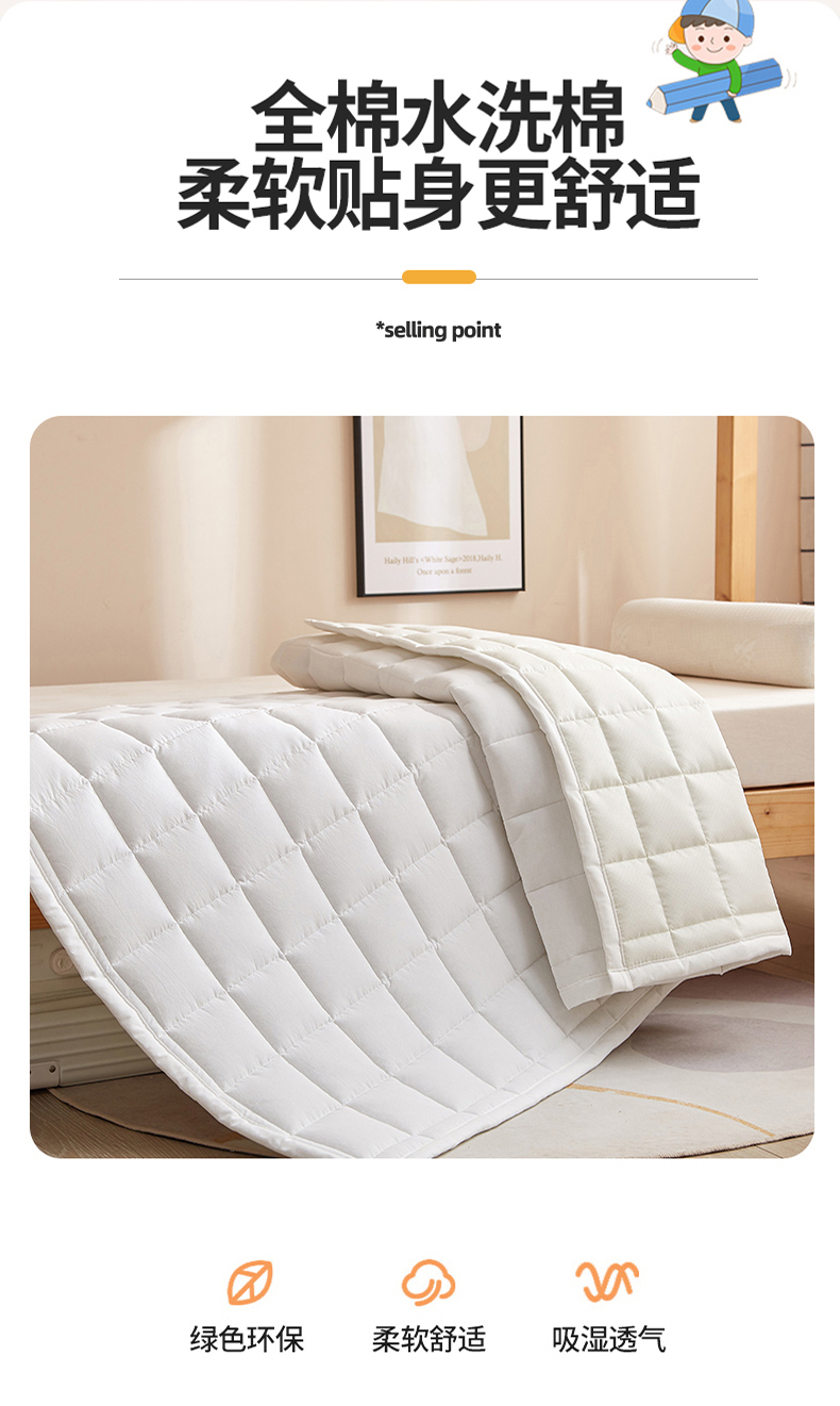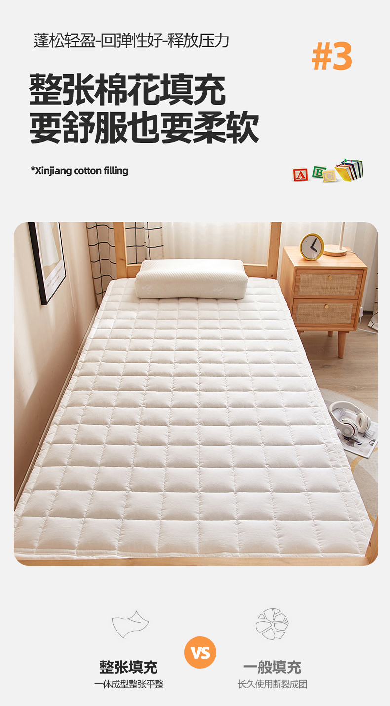 商品名称:2025新款A类色织全棉水洗棉棉花学生床护垫床褥(1.5cm厚度) 典雅白