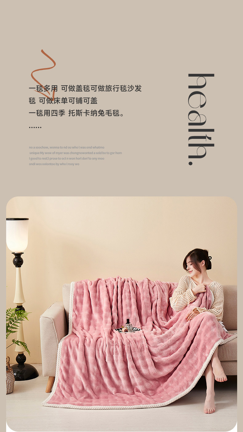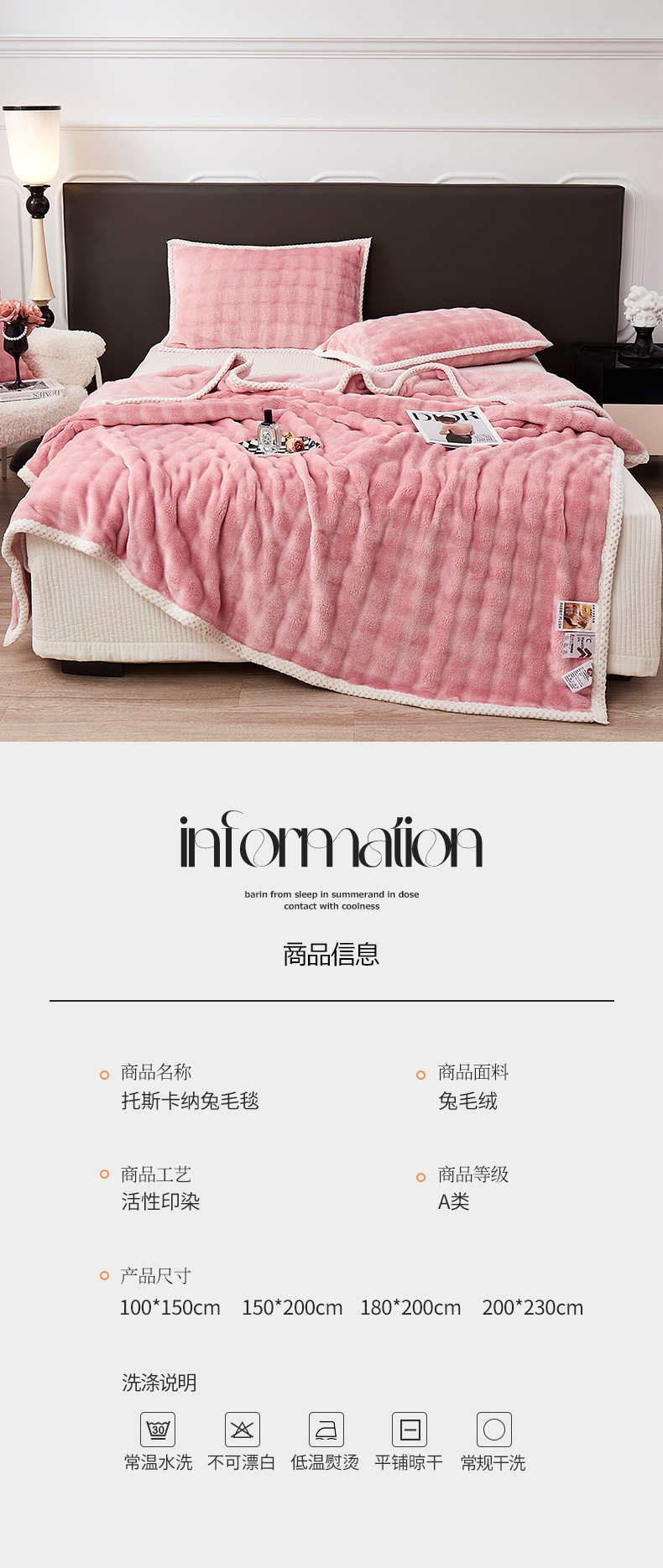 商品名称:肖恩毯业 2025新款托斯卡纳兔毛绒毛毯 托斯-豆沙粉