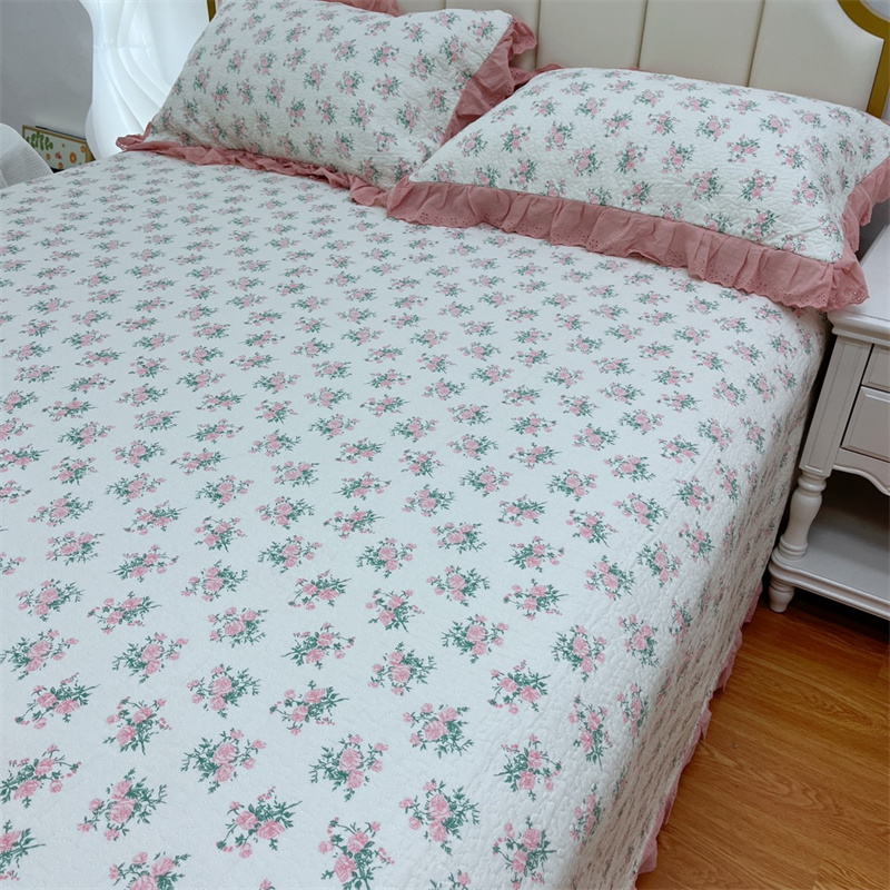 商品名称:暖居 2024新款砂洗棉花被套全棉床盖四件套绗缝夹棉纯棉床盖三件套茉莉