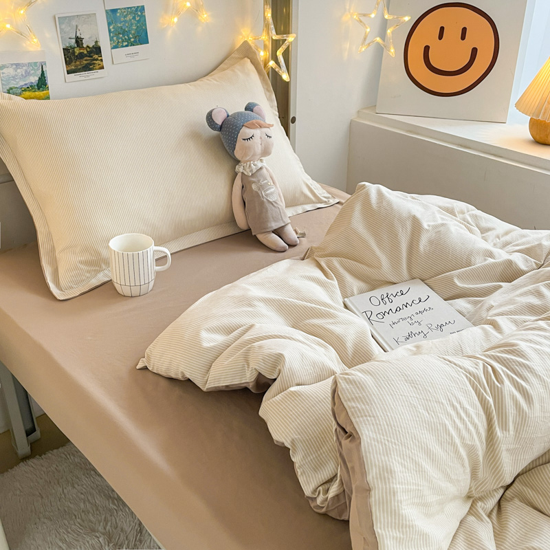 当前位置: 91家纺网 > 商品网购 > 床品套件 > 三件套 > yyds网供 2024新款细条纹三件套学生宿舍非全棉纯棉水洗棉四件套单被套六件套 细条纹-奶咖