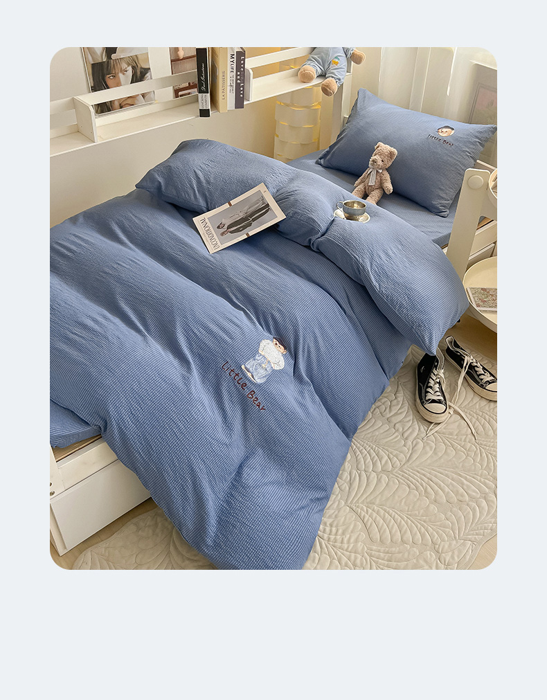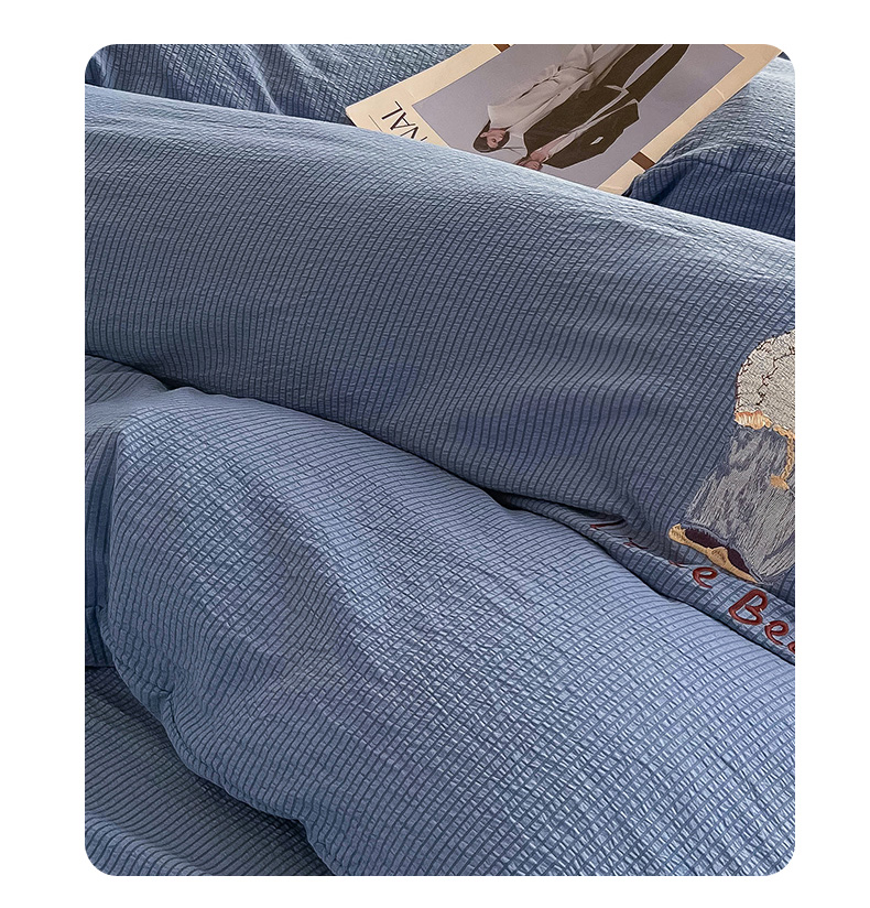 当前位置: 91家纺网 > 商品网购 > 床品套件 > 四件套 > 水洗棉四件套 > 眠帛家居 2024新款宿舍三件套水洗棉提花刺绣四件套熊先生 冰岛蓝