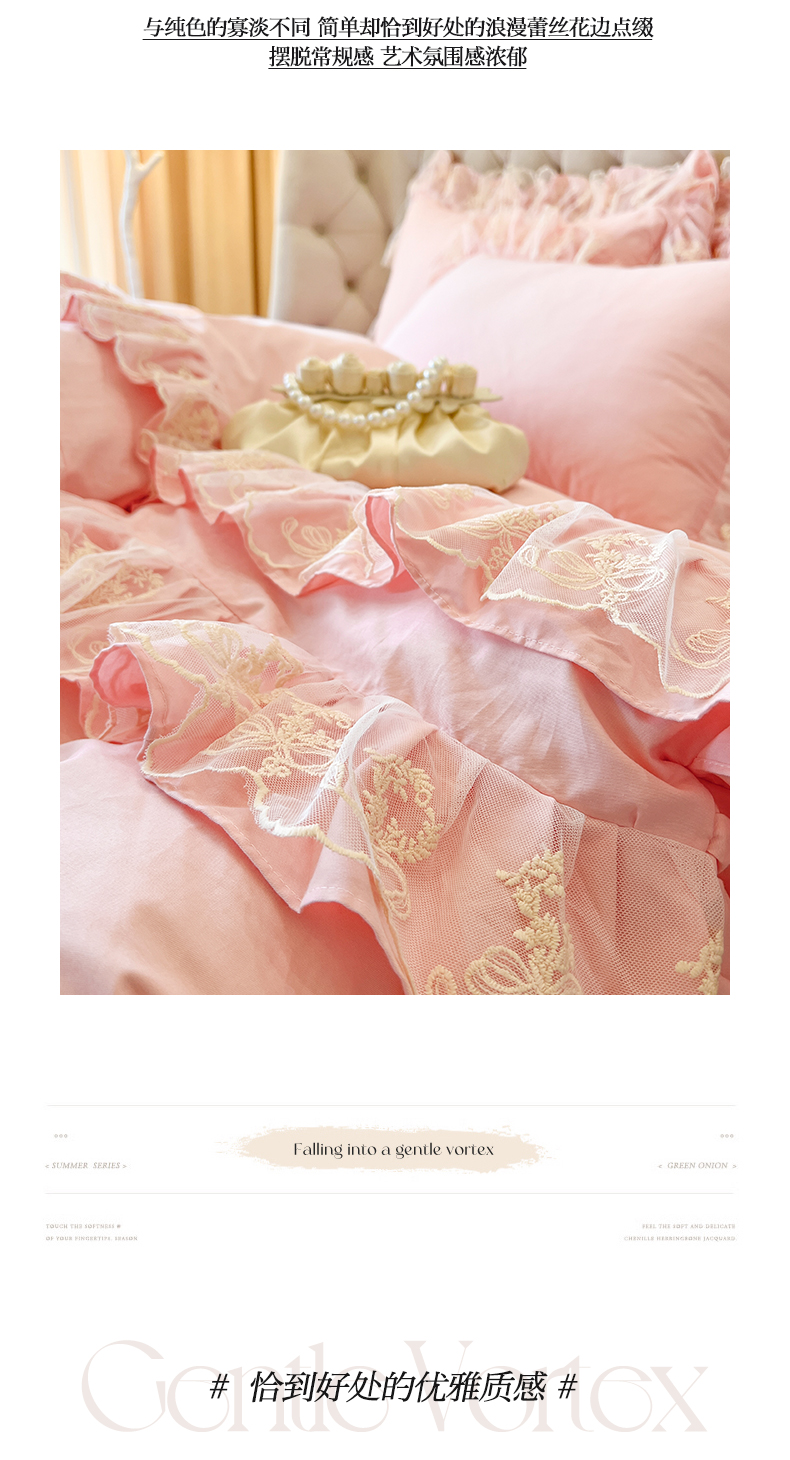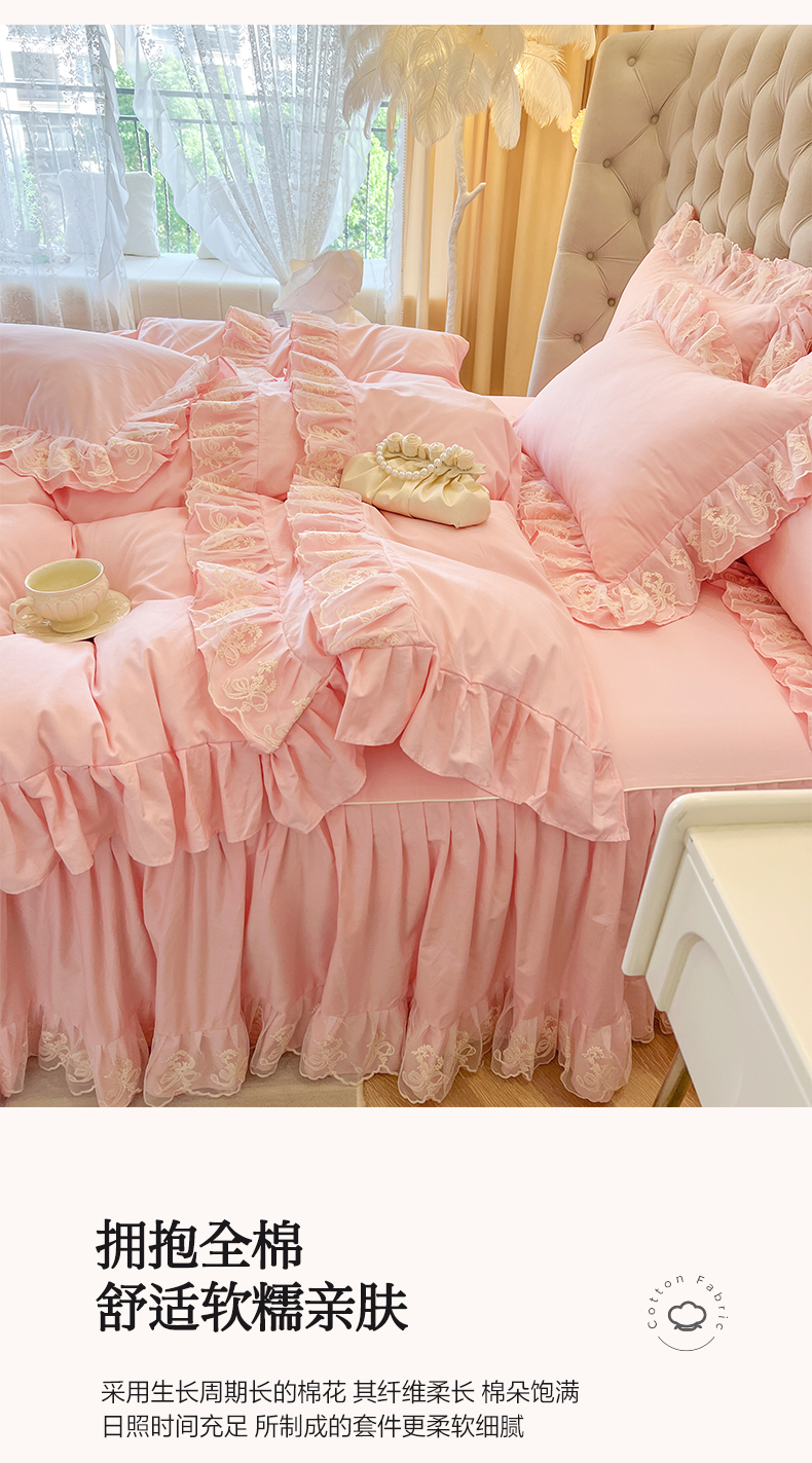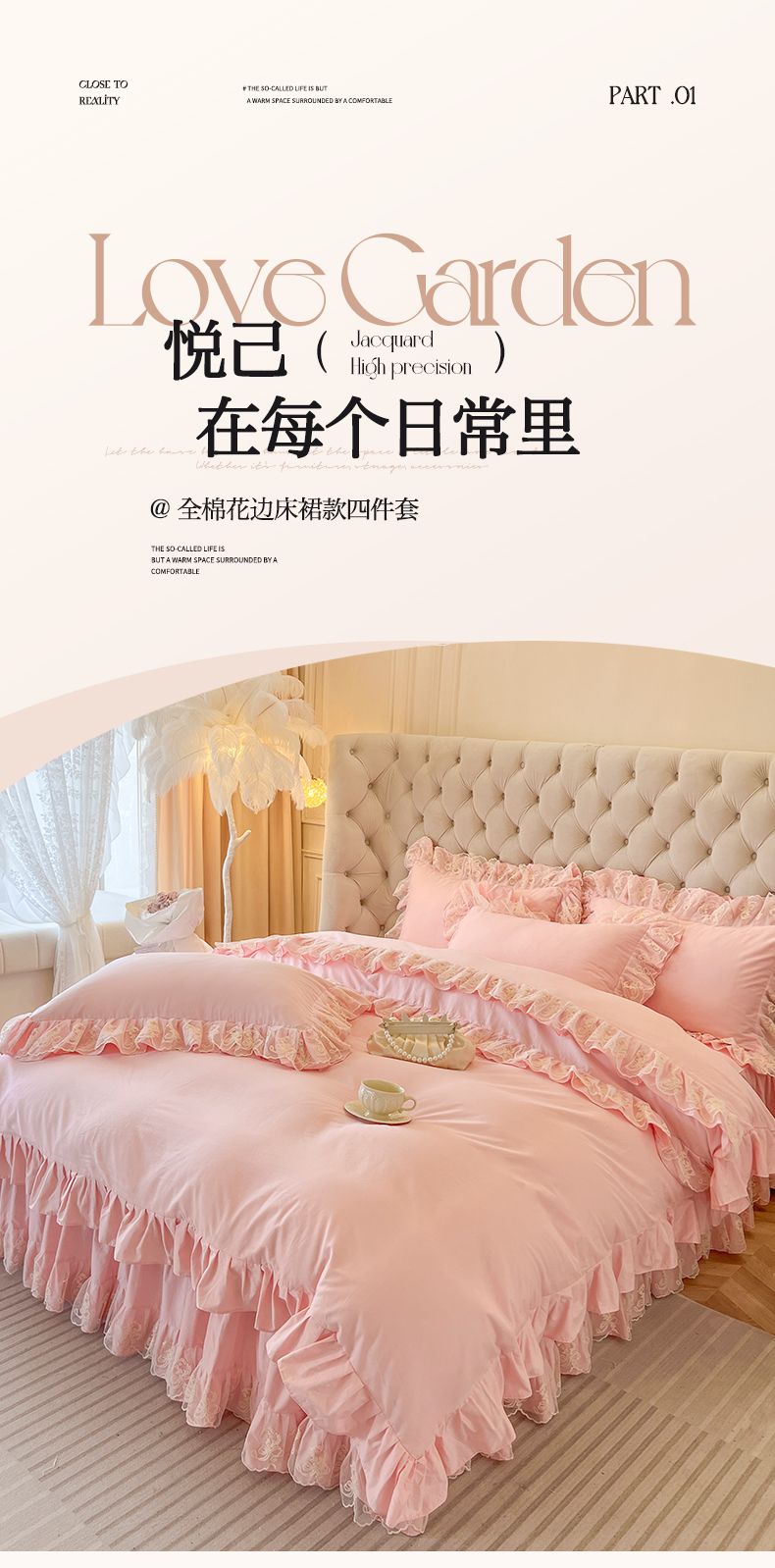 商品名称:网红馆(ck家纺) 2025新款花之茵系列13372全棉床裙四件套 花之茵-嫩粉