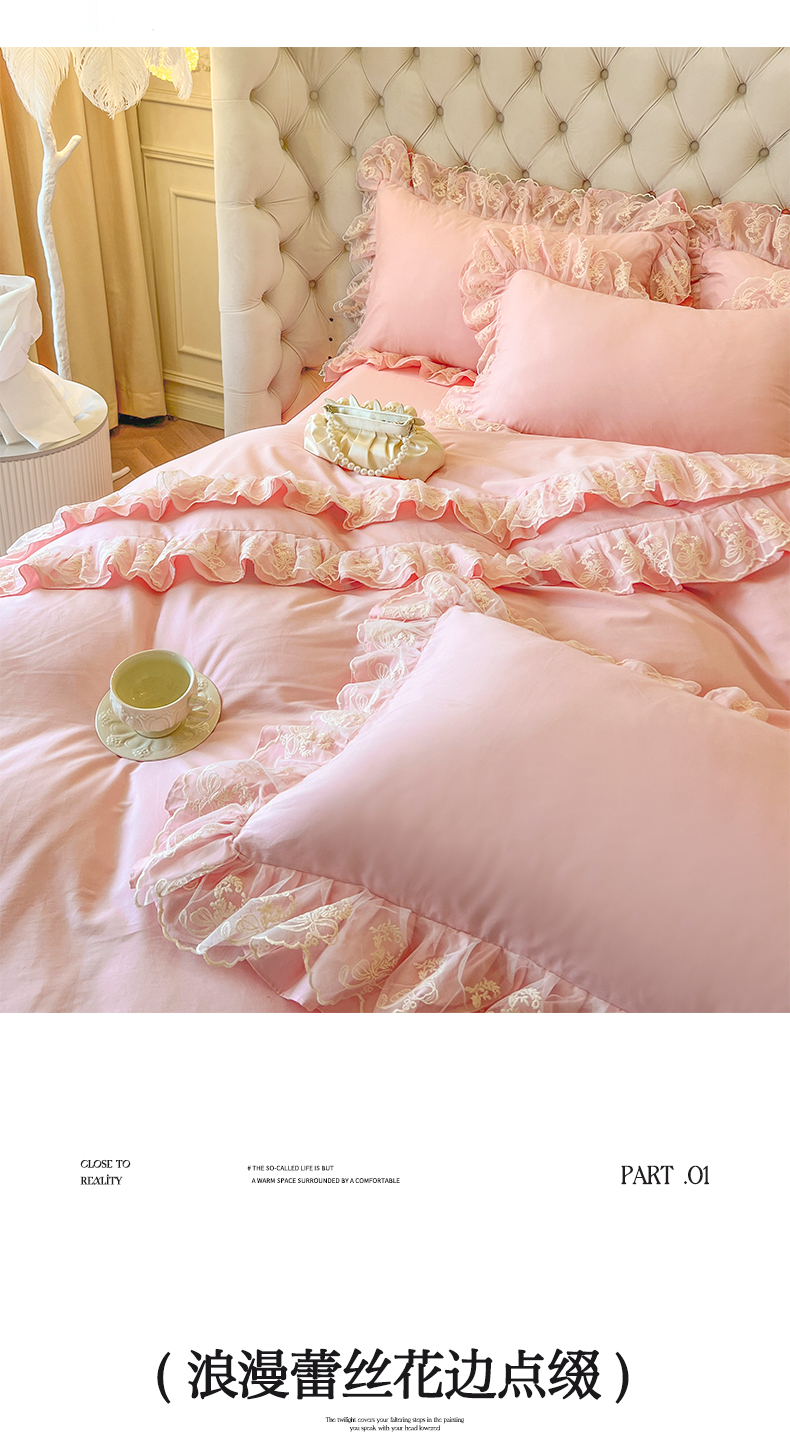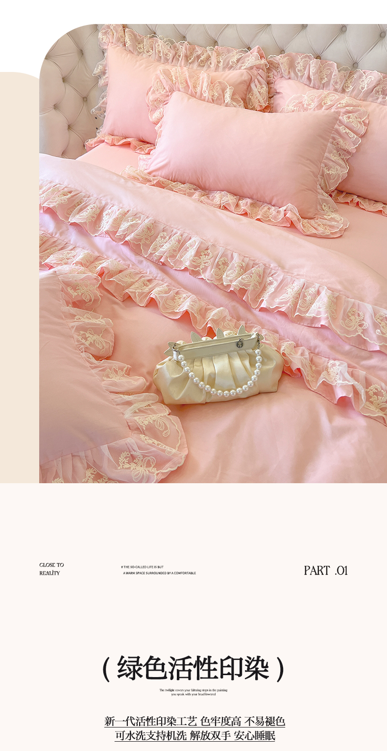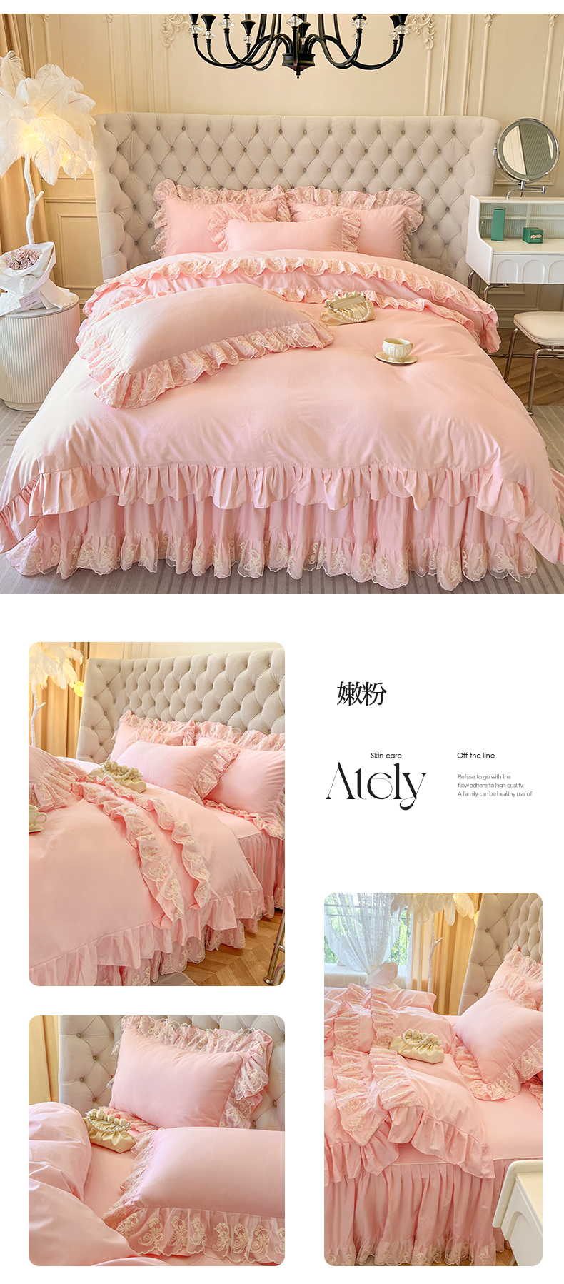 商品名称:网红馆(ck家纺) 2025新款花之茵系列13372全棉床裙四件套 花之茵-嫩粉