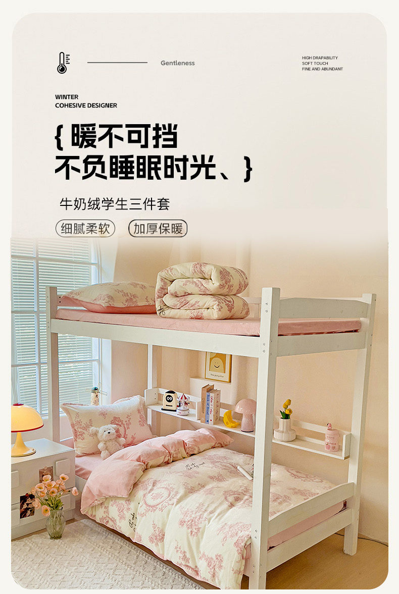 当前位置: 91家纺网 > 商品网购 > 床品套件 > 三件套 > 卡普二店 2024新款牛奶绒学生三件套系列 浪漫玫瑰
