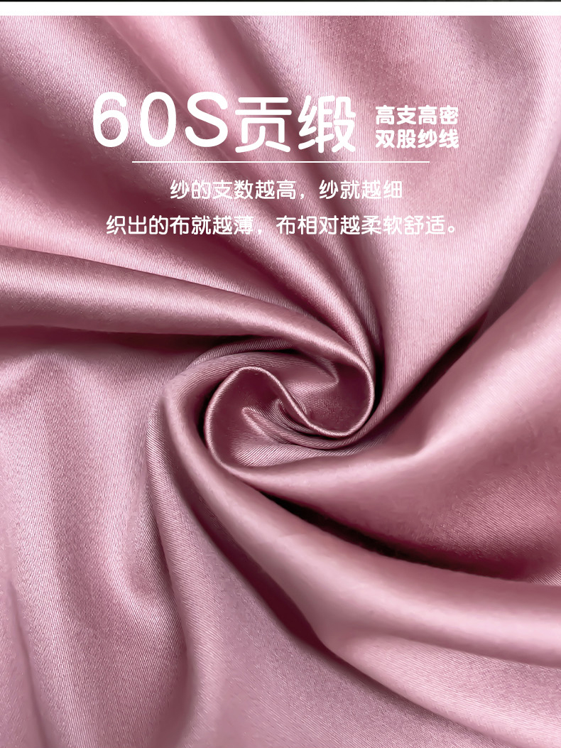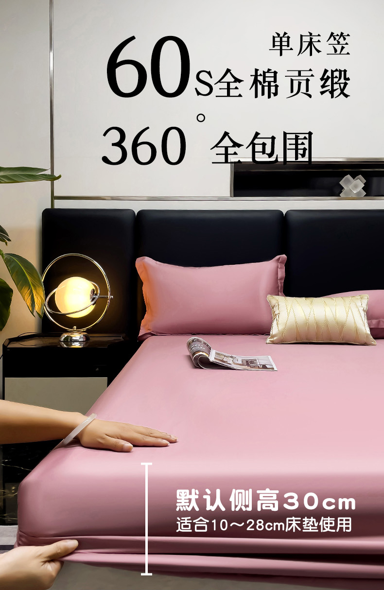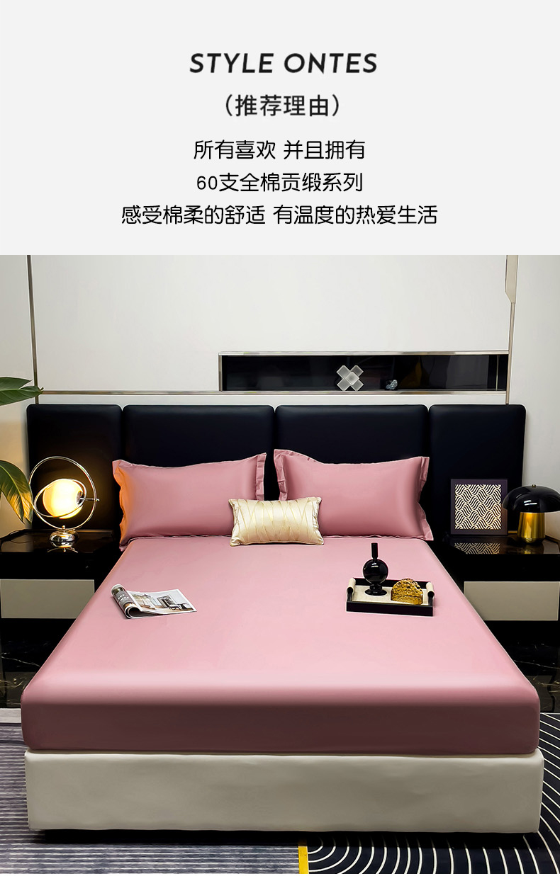 漫时光 2025新款60s全棉贡缎单床笠和单枕套 红豆沙