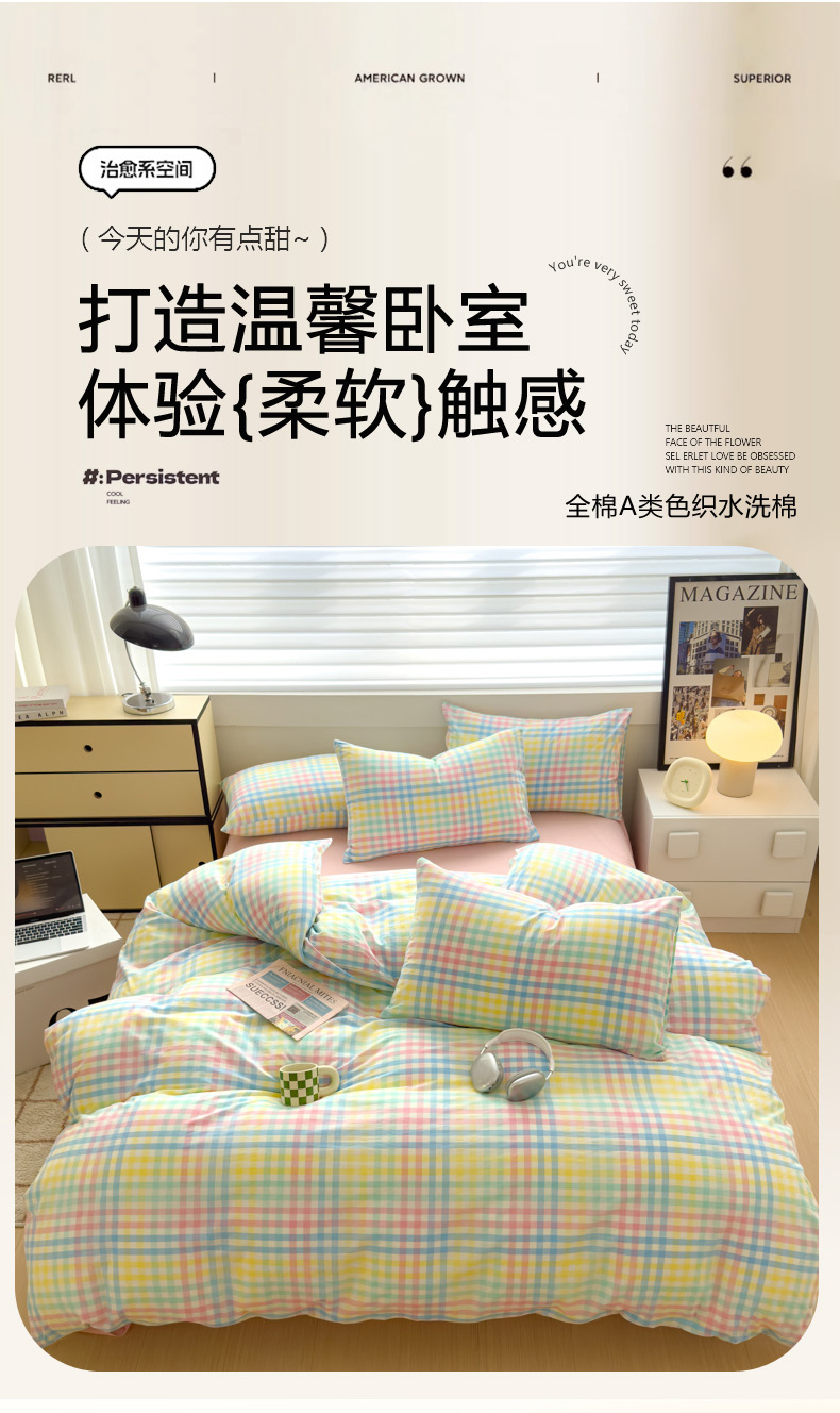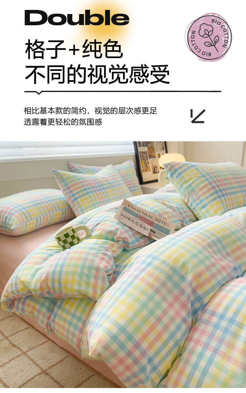 商品名称:星尚家纺 2024新款全棉色织水洗棉学生三件套 冰激凌粉