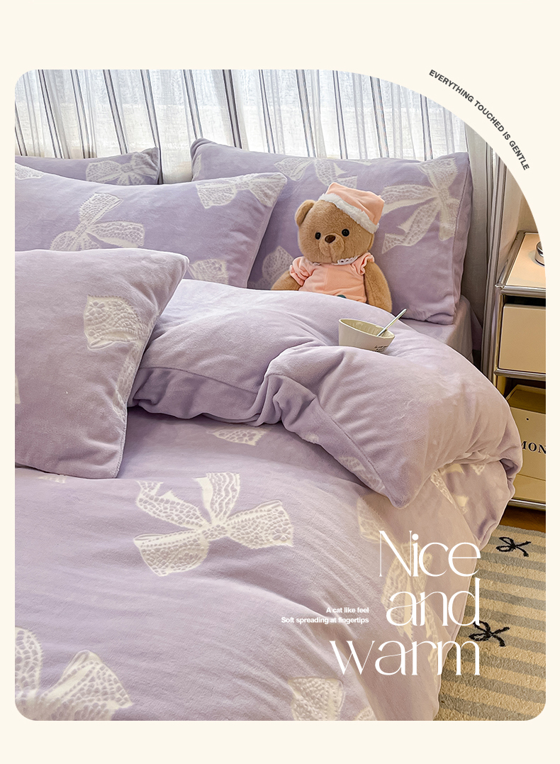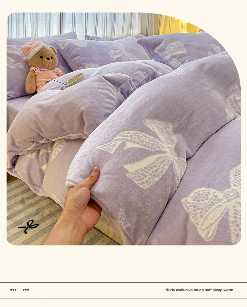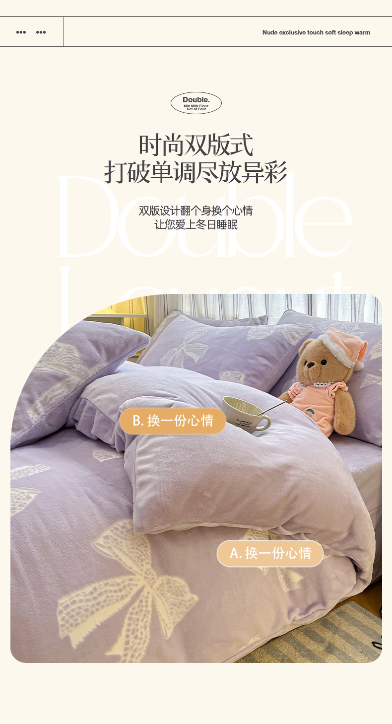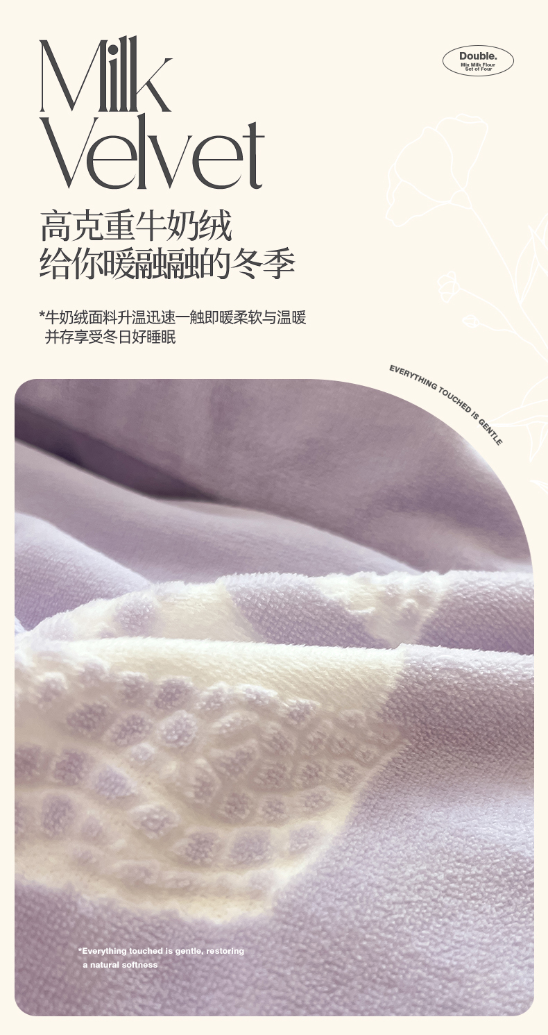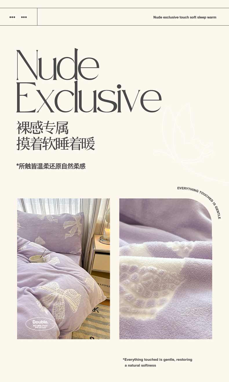 绘萱家居 2025新款高克重雕花雕印纯色牛奶绒四件套双拼法莱绒珊瑚绒 蝴蝶公主