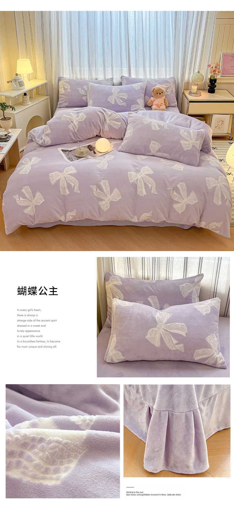 商品名称:绘萱家居 2025新款高克重雕花雕印纯色牛奶绒四件套双拼法莱绒珊瑚绒 蝴蝶公主