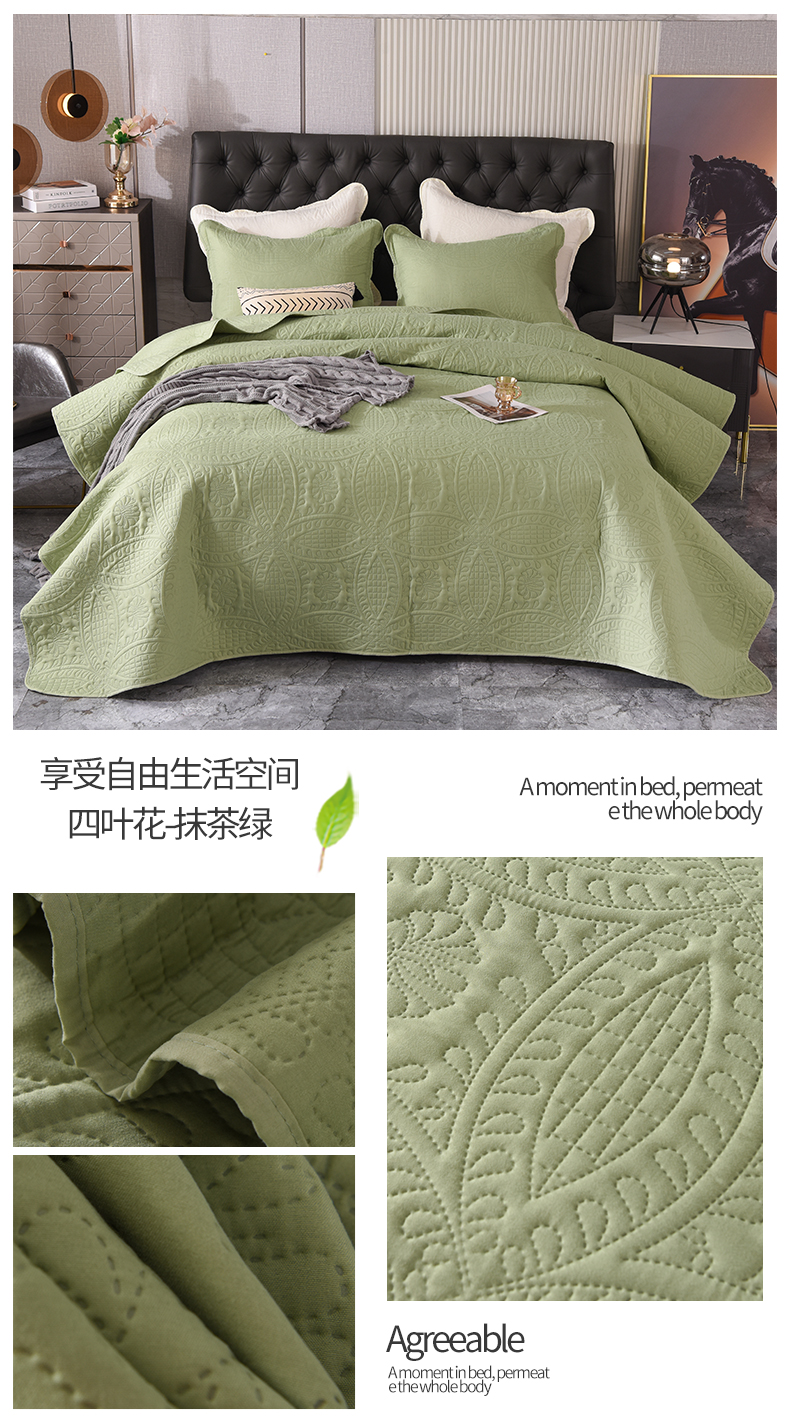商品名称:恩和家纺 2024新款水洗棉床盖压花加厚四件套-四叶花 四叶花-抹茶绿