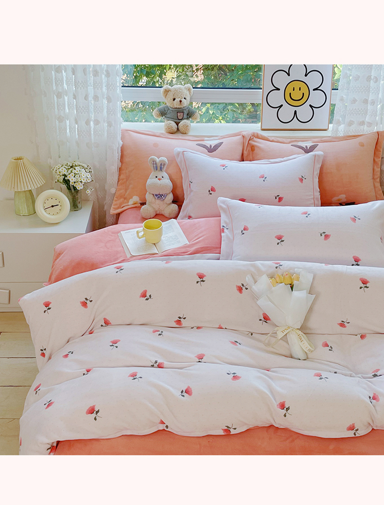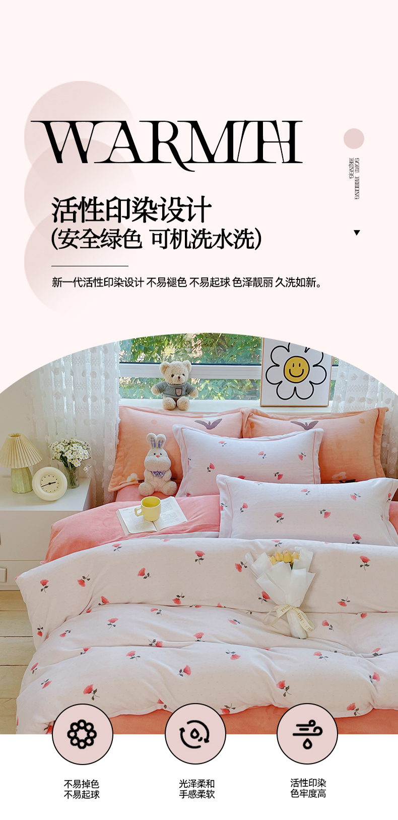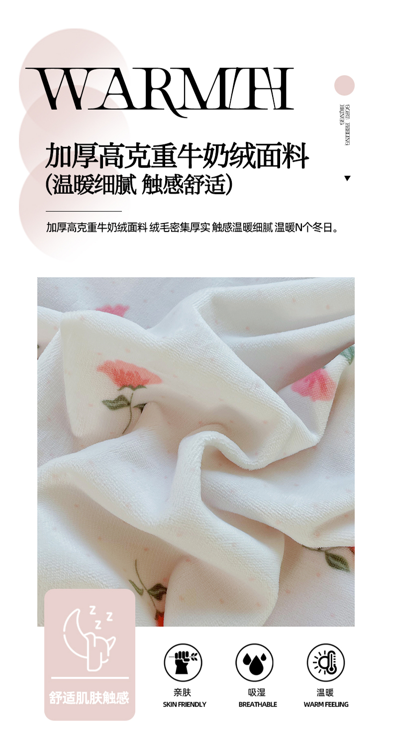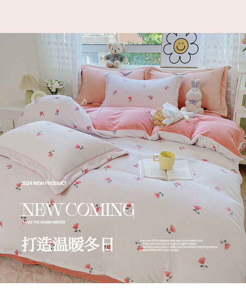 商品名称:锦罗绣 2024新款加厚牛奶绒四件套印花四件套单被套 小粉花