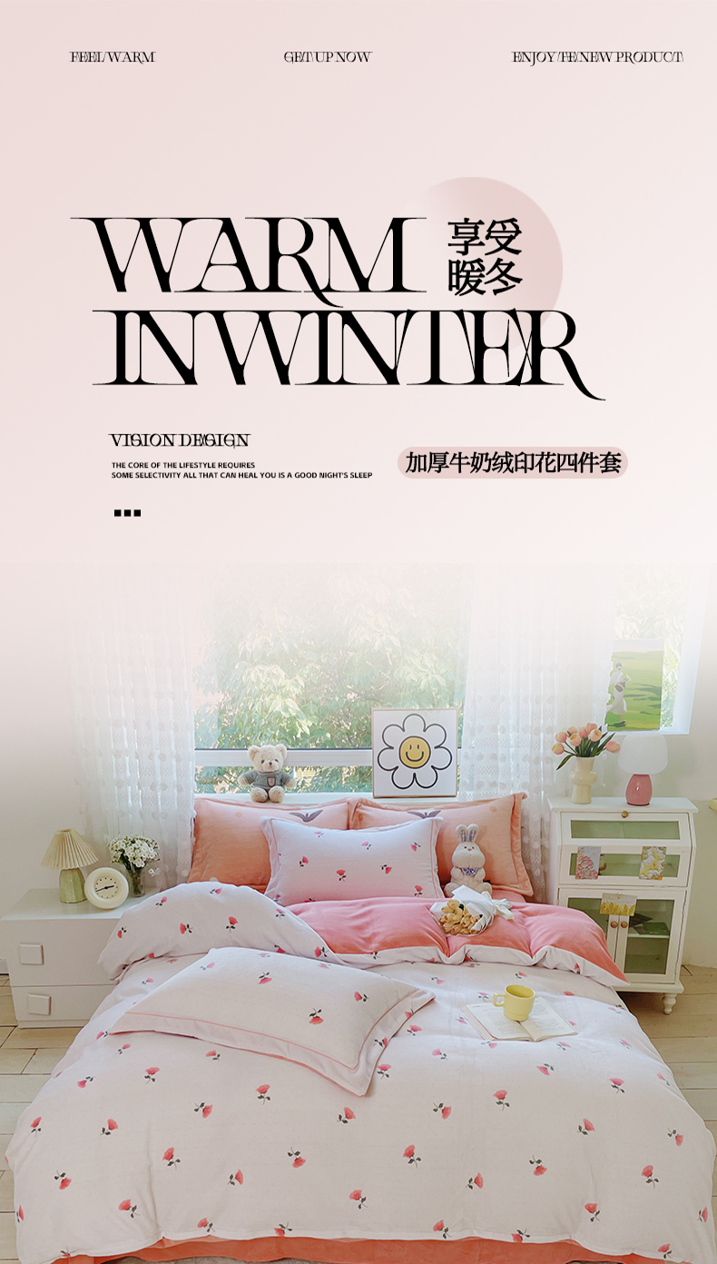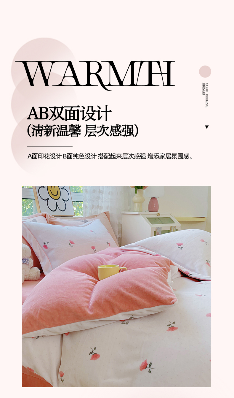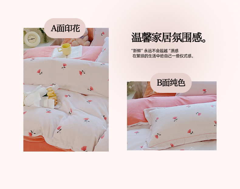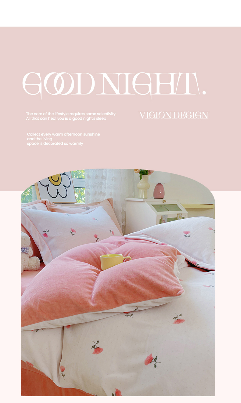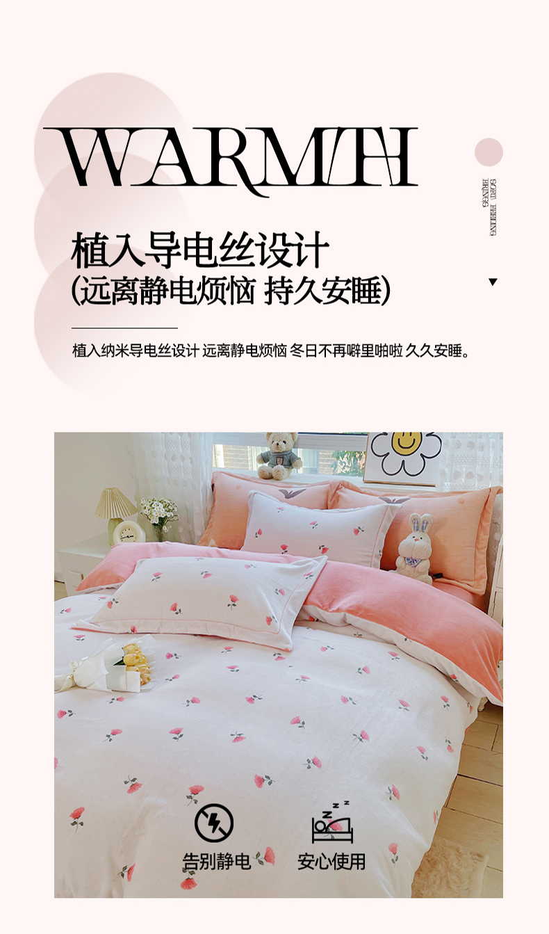 商品名称:锦罗绣 2024新款加厚牛奶绒四件套印花四件套单被套 小粉花