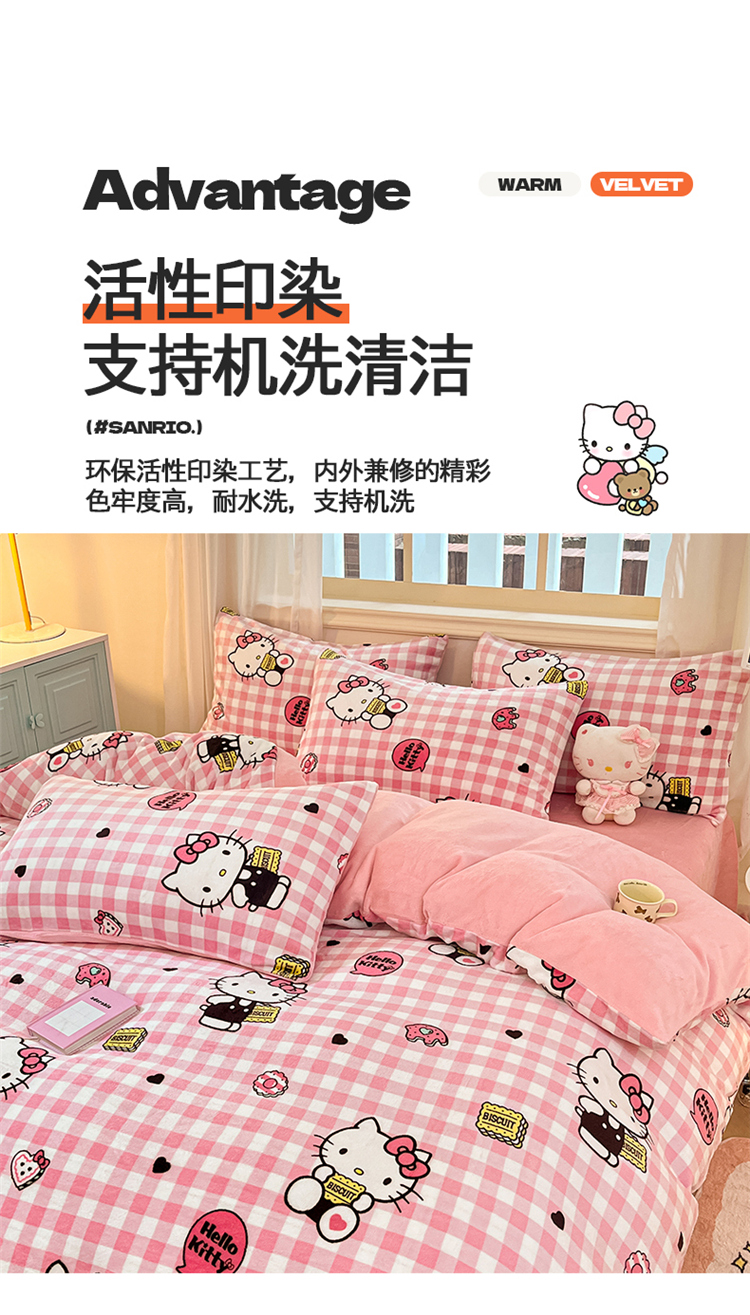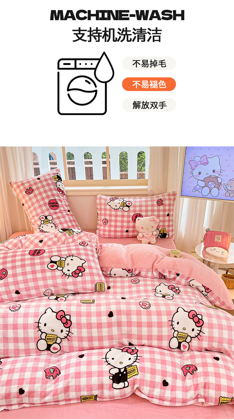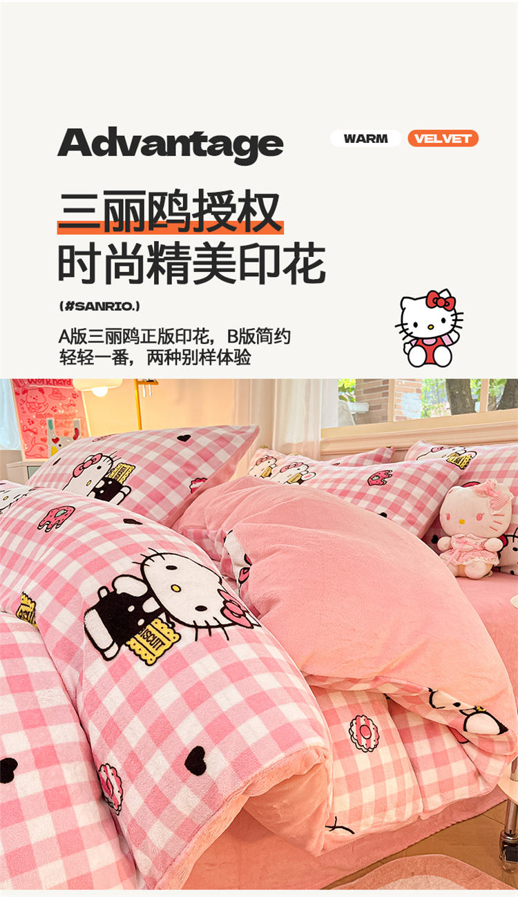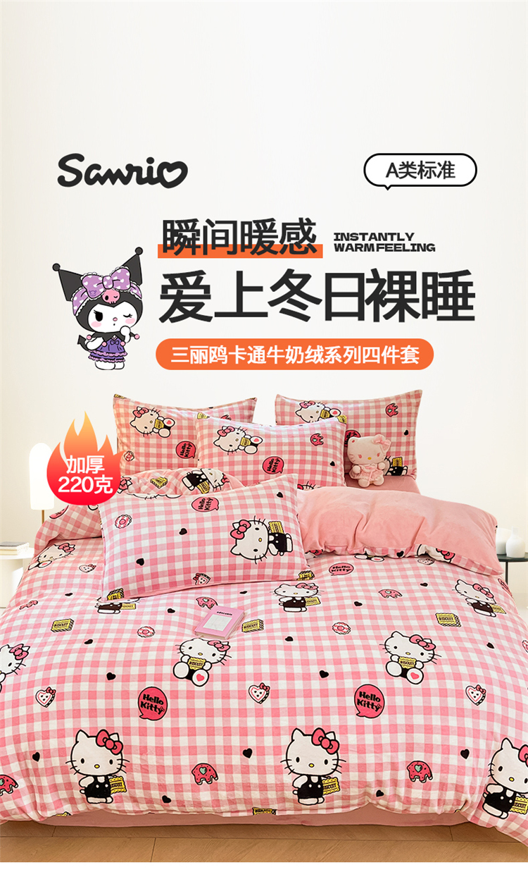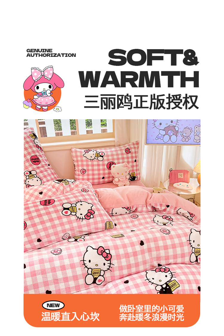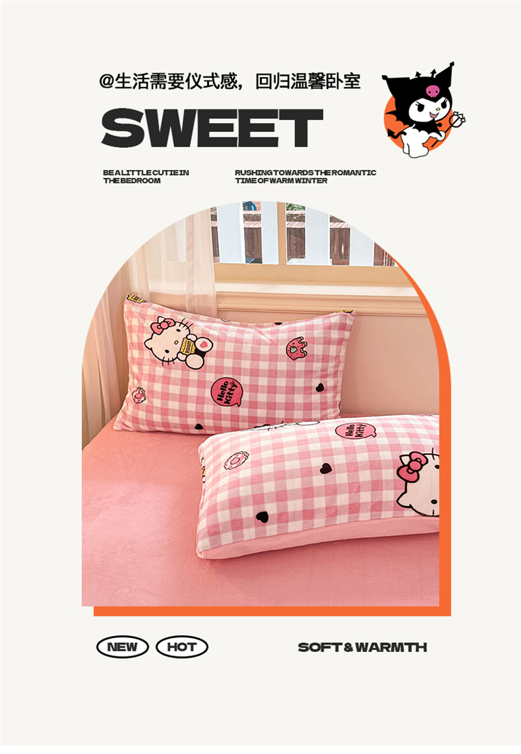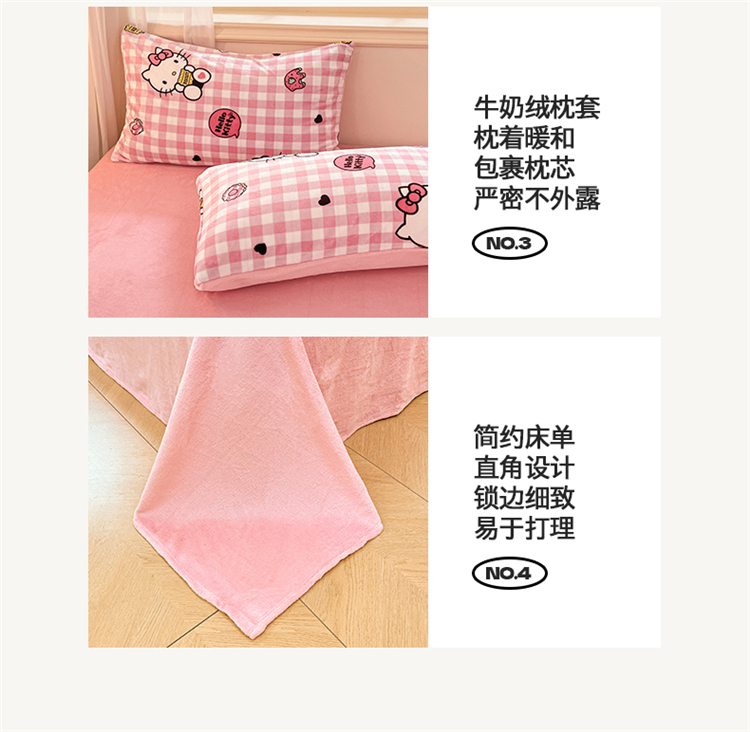 当前位置: 91家纺网 > 商品网购 > 床品套件 > 四件套 > 牛奶绒四件套 > 2024新品正版三丽鸥授权卡通加厚高克重牛奶绒系列四件套 绒三丽鸥-粉格kitty