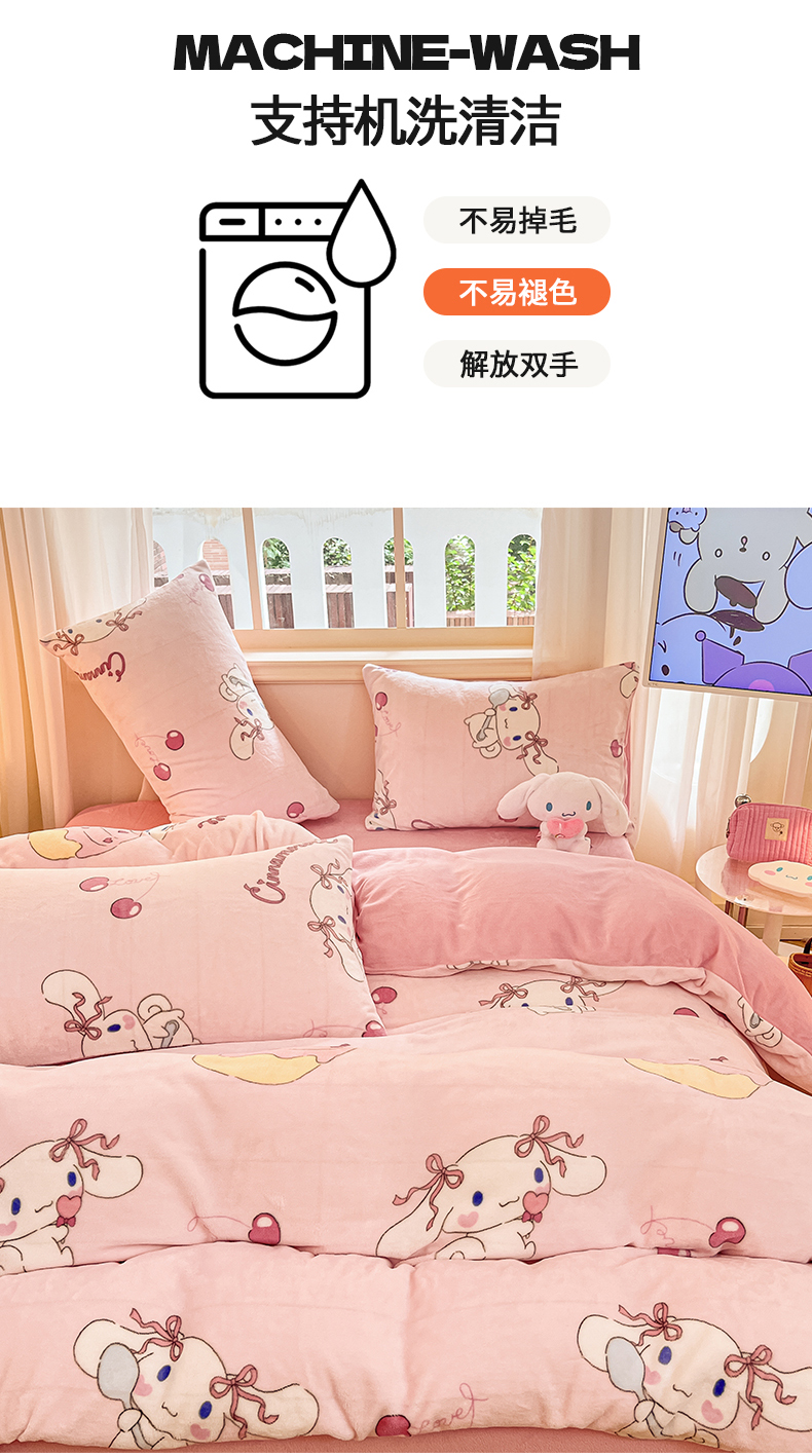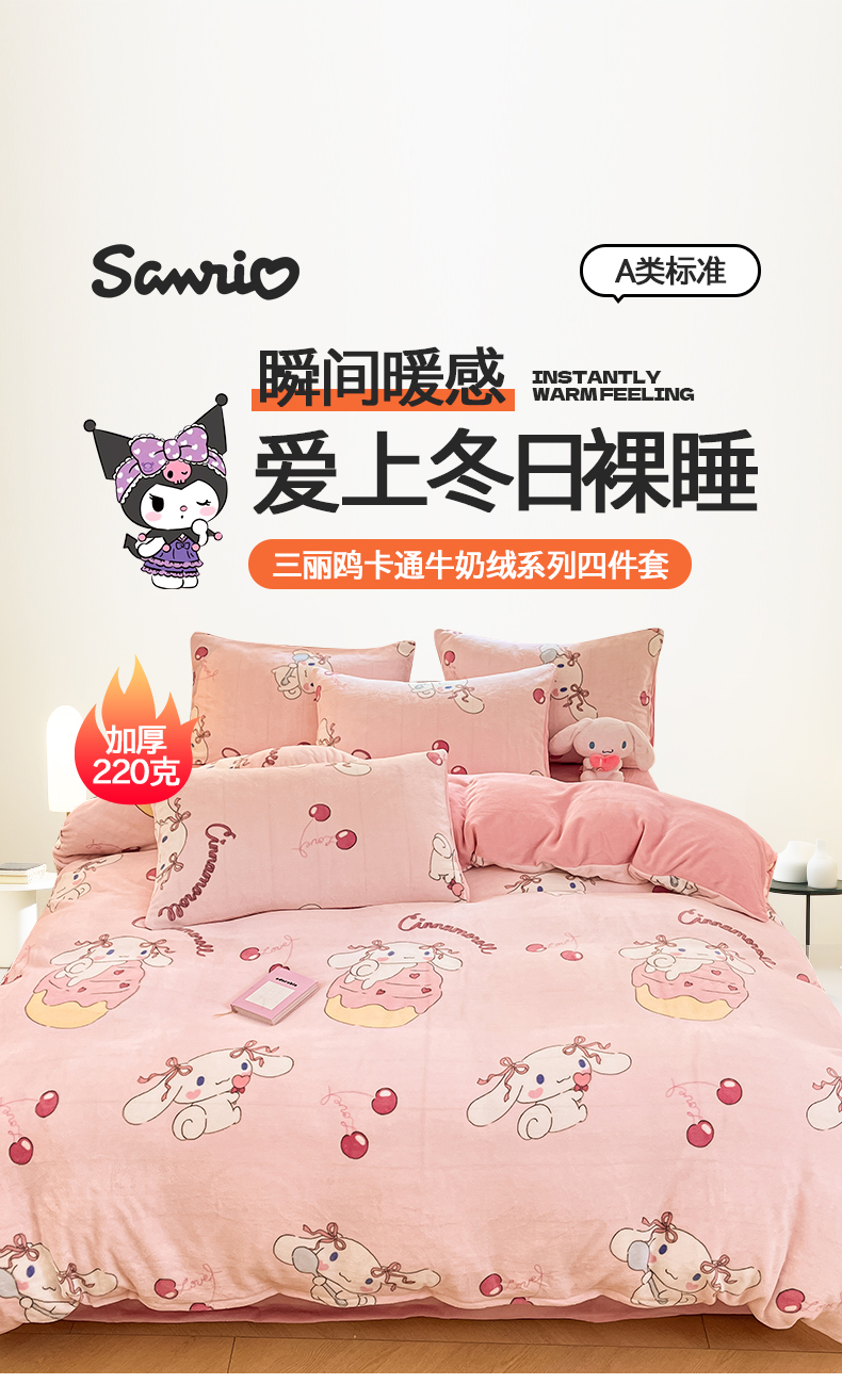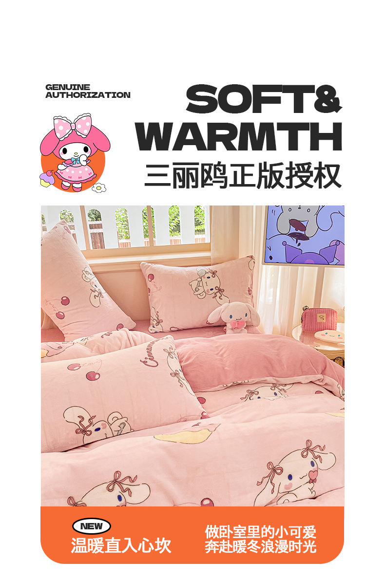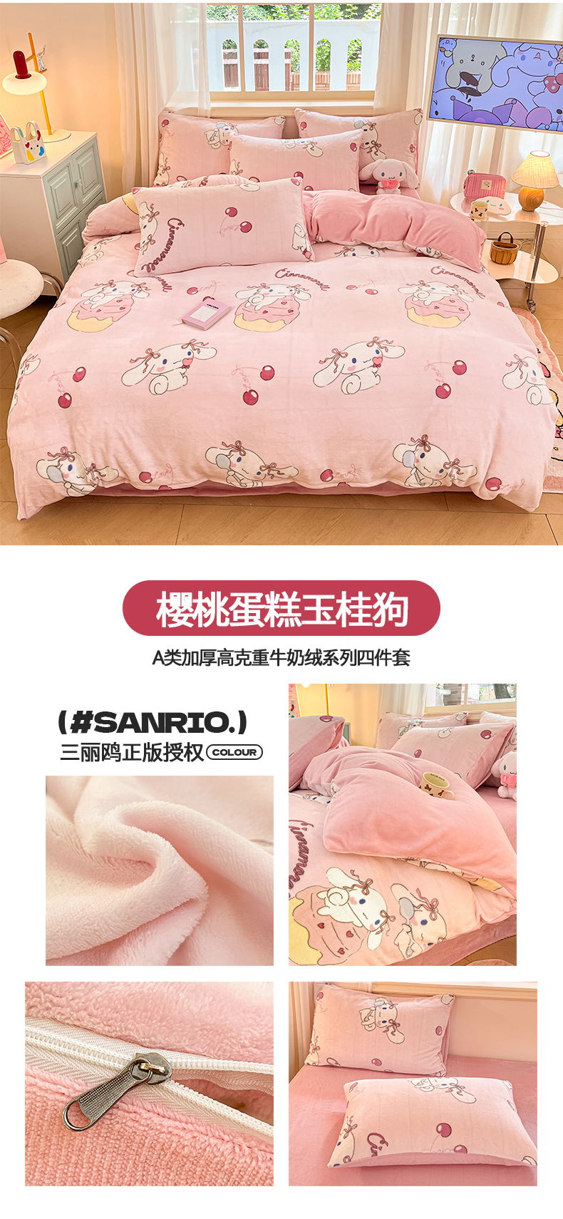 当前位置: 91家纺网 > 商品网购 > 床品套件 > 四件套 > 牛奶绒四件套 > 2024新品正版三丽鸥授权卡通加厚高克重牛奶绒系列四件套 绒三丽鸥-樱桃蛋糕玉桂狗