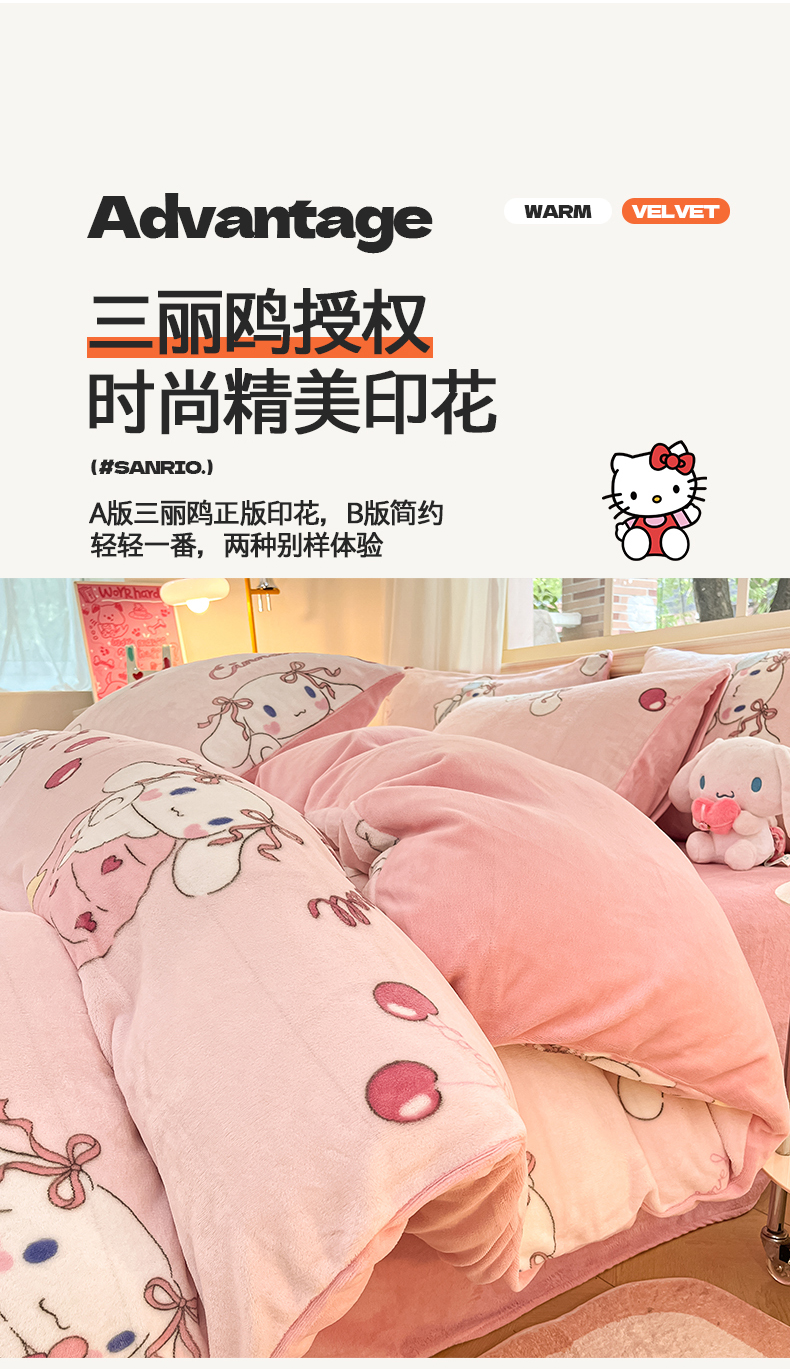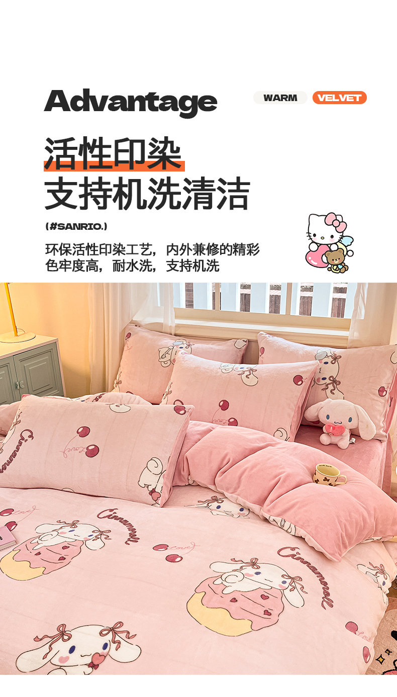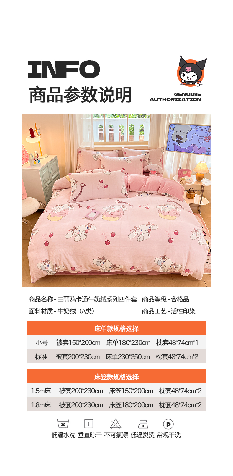 当前位置: 91家纺网 > 商品网购 > 床品套件 > 四件套 > 牛奶绒四件套 > 2024新品正版三丽鸥授权卡通加厚高克重牛奶绒系列四件套 绒三丽鸥-樱桃蛋糕玉桂狗