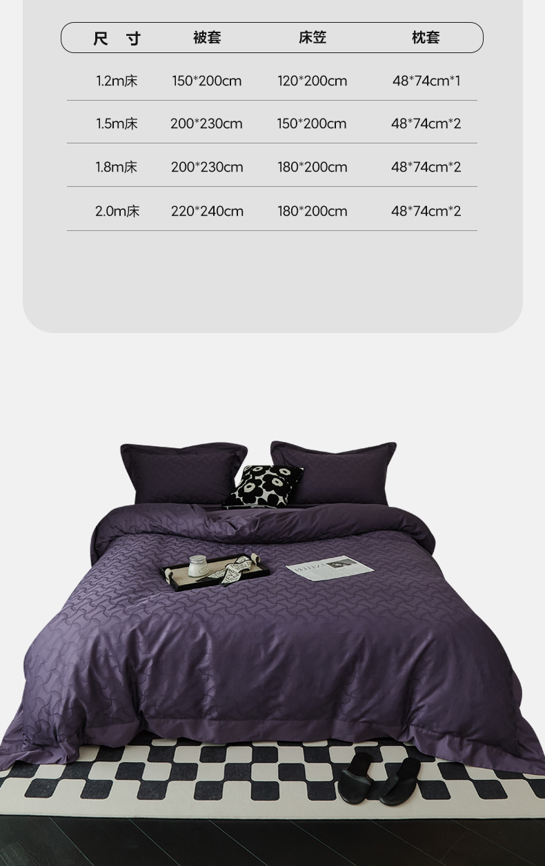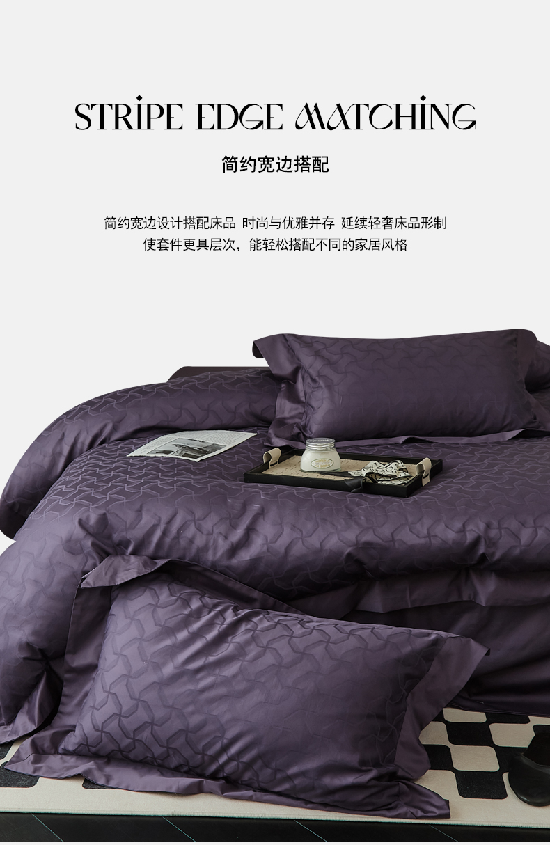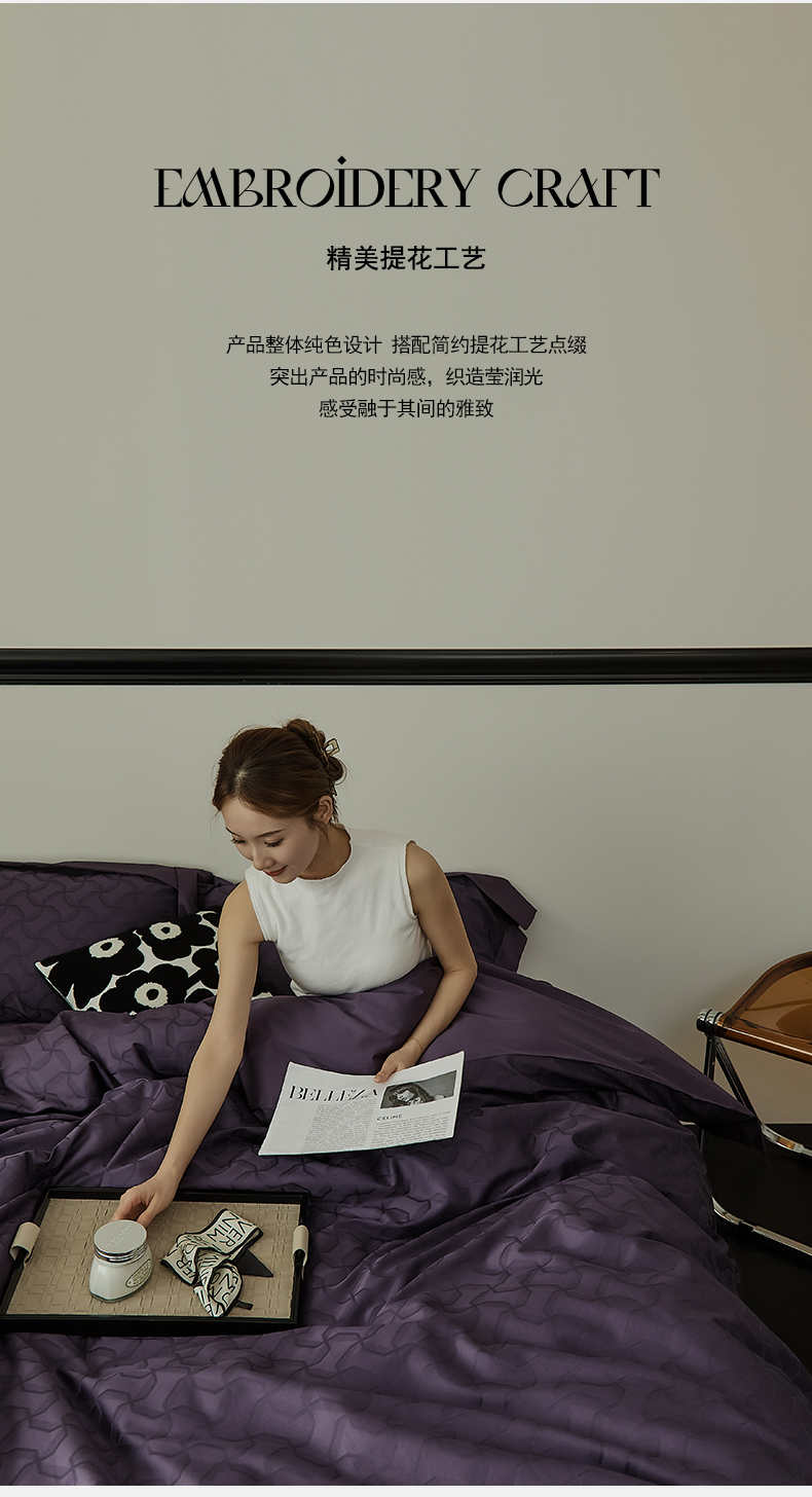 当前位置: 91家纺网 > 商品网购 > 床品套件 > 四件套 > 长绒棉四件套 > 2024新款60支长绒棉提花四件套--漫时光系列(英文版) 漫时光-黑葡紫