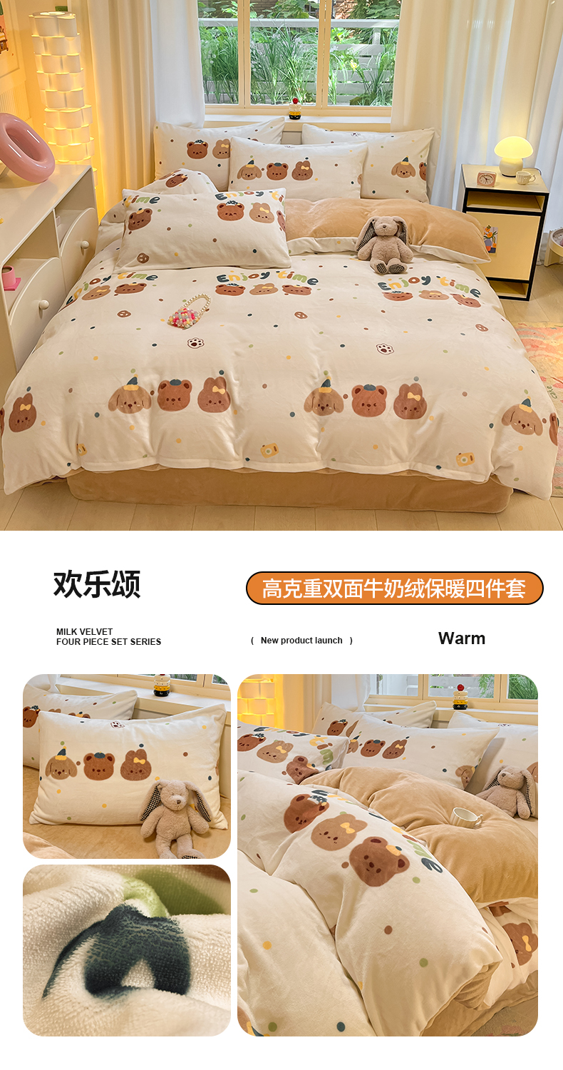 (总)铭宣家居 2025新款200g牛奶绒数码印花加毛巾绣四件套,海盐蛋糕,快乐萌友,萌餐格韵,萌喵花町,星落卡皮