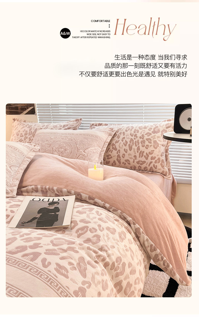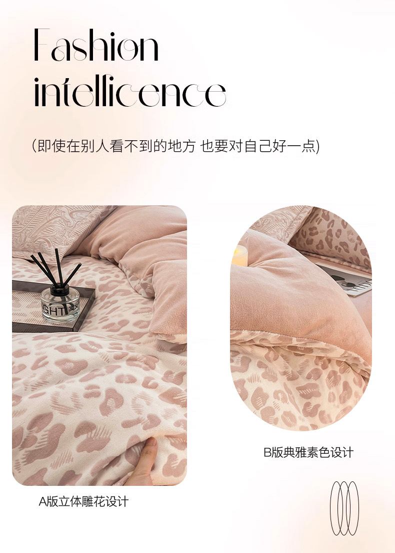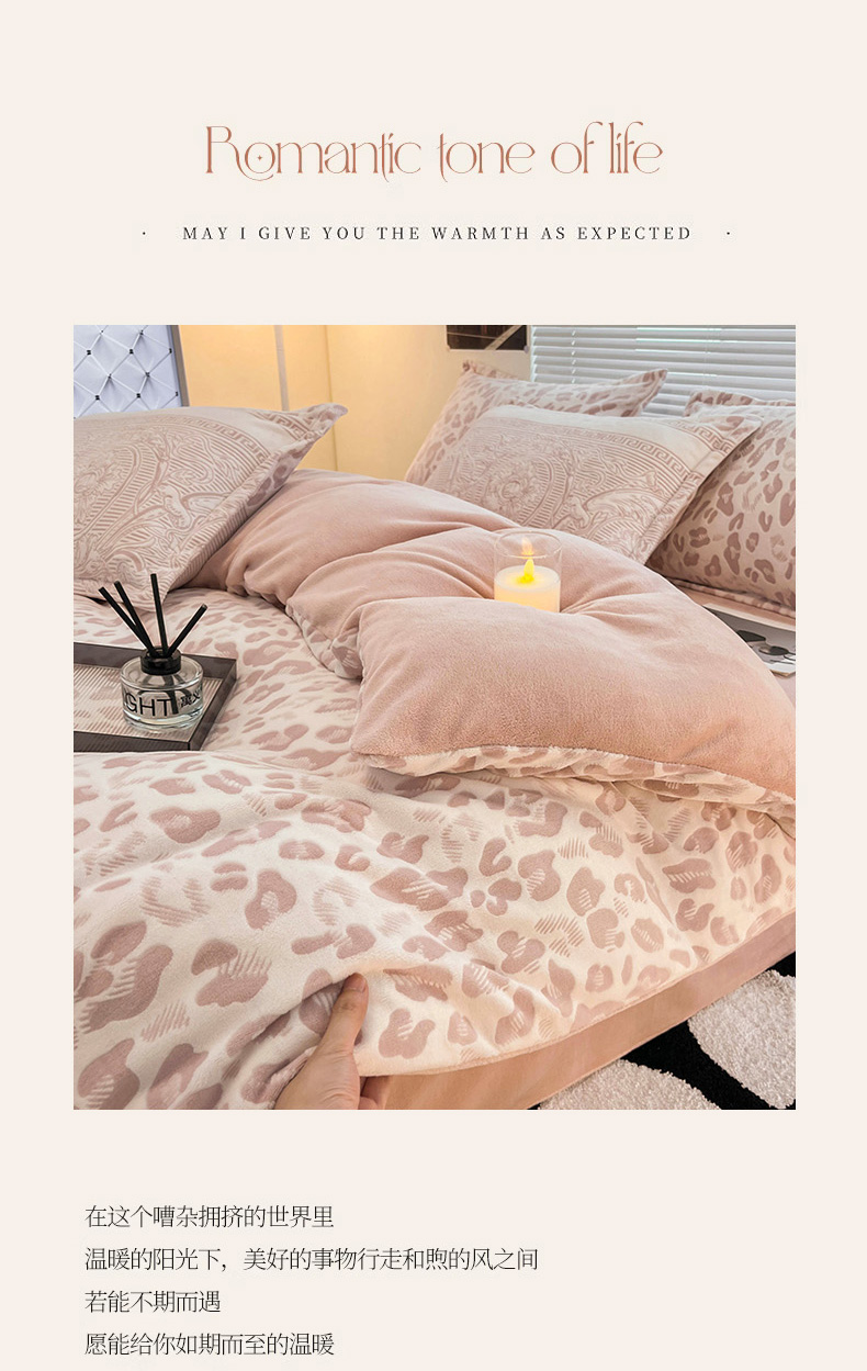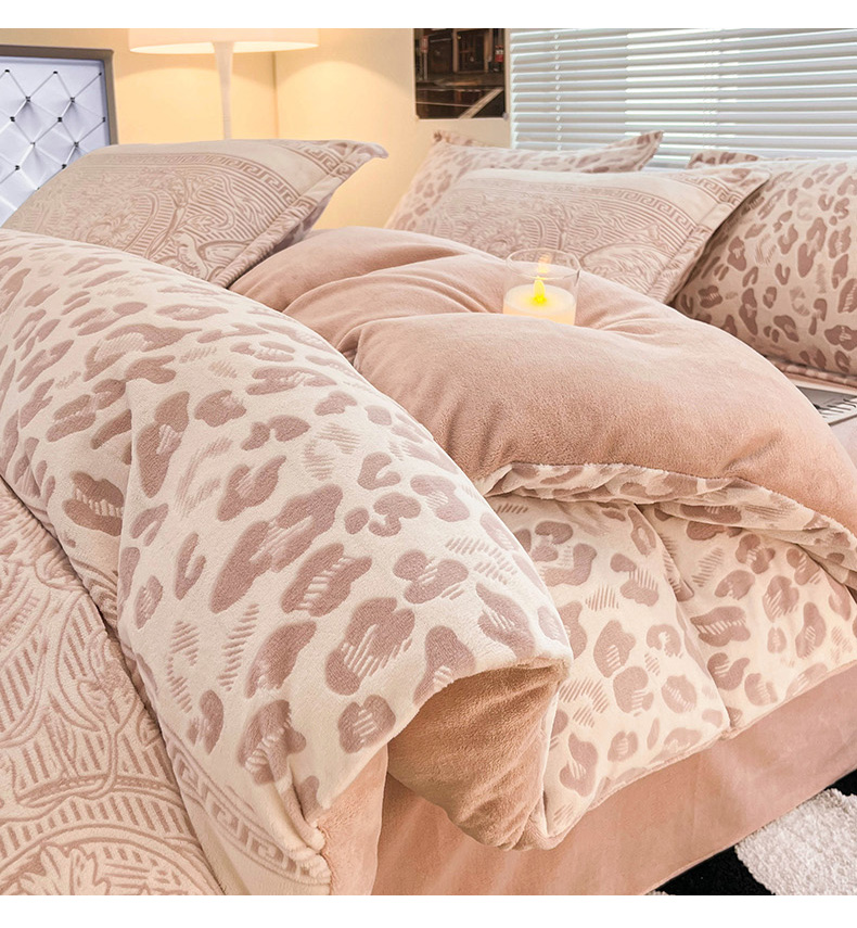 当前位置: 91家纺网 > 商品网购 > 床品套件 > 四件套 > 牛奶绒四件套 > 2024新款A类高克重立体浮雕牛奶绒加厚保暖系列-四件套 豹纹粉