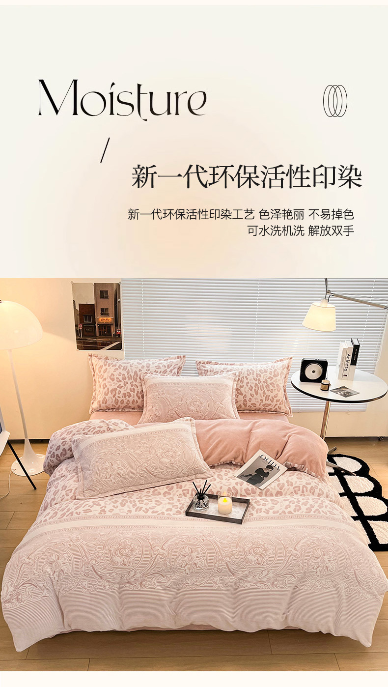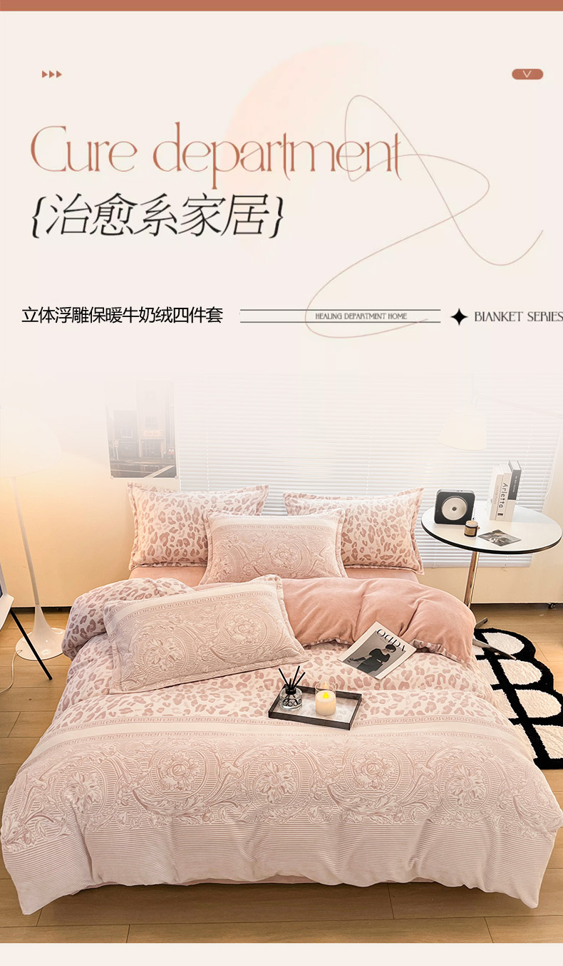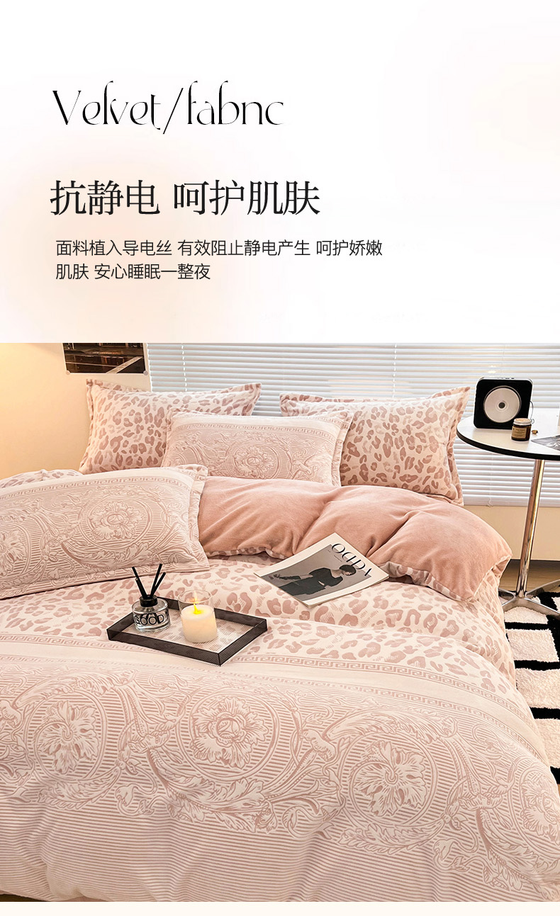 当前位置: 91家纺网 > 商品网购 > 床品套件 > 四件套 > 牛奶绒四件套 > 2024新款A类高克重立体浮雕牛奶绒加厚保暖系列-四件套 豹纹粉