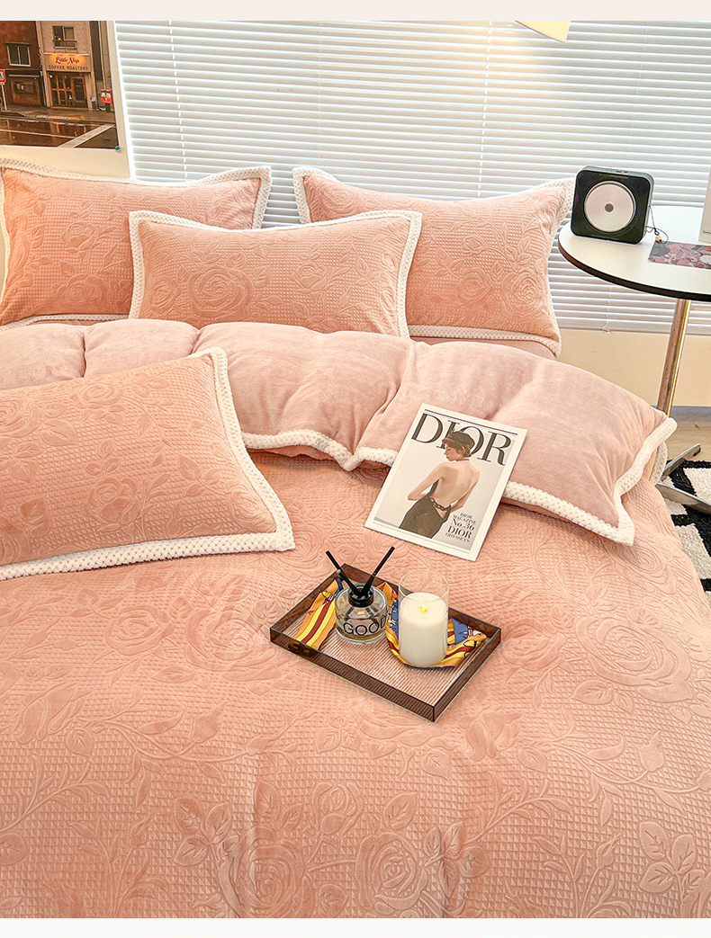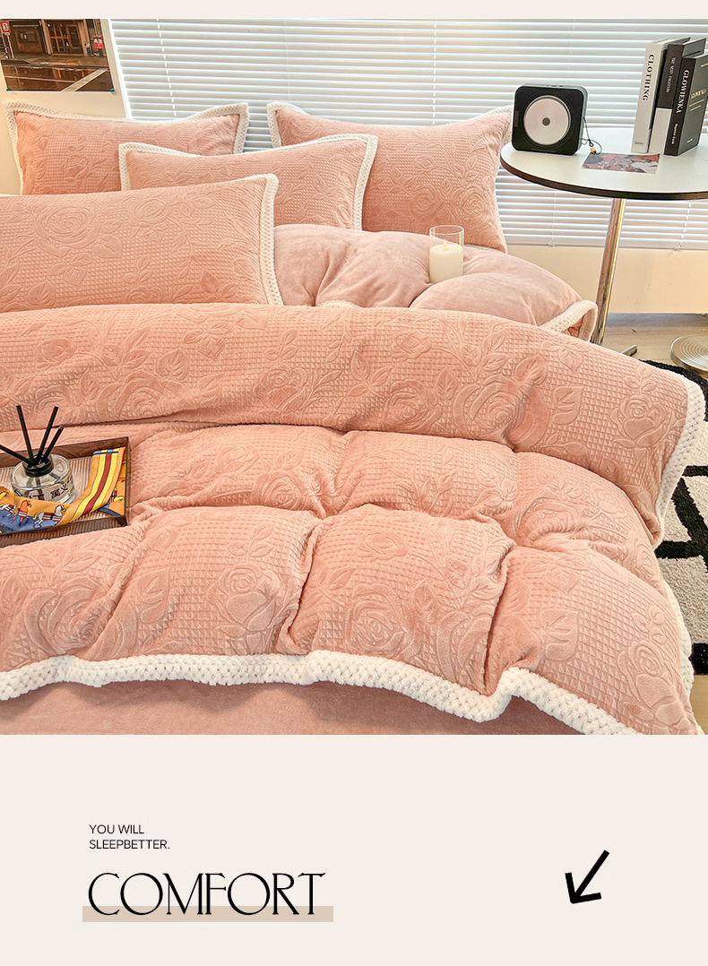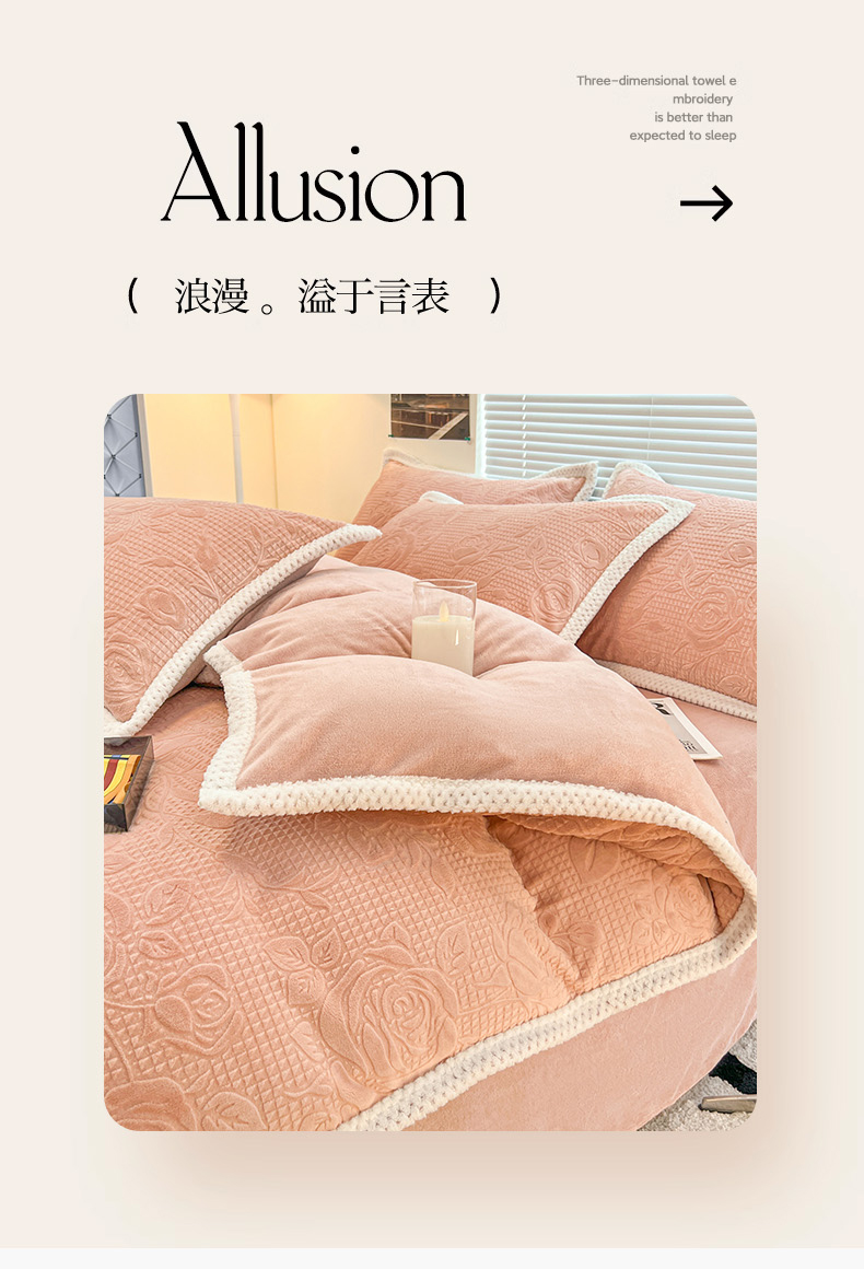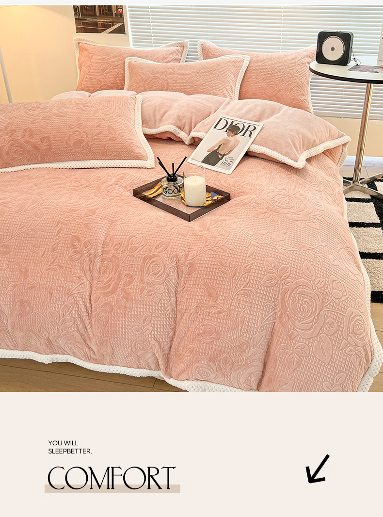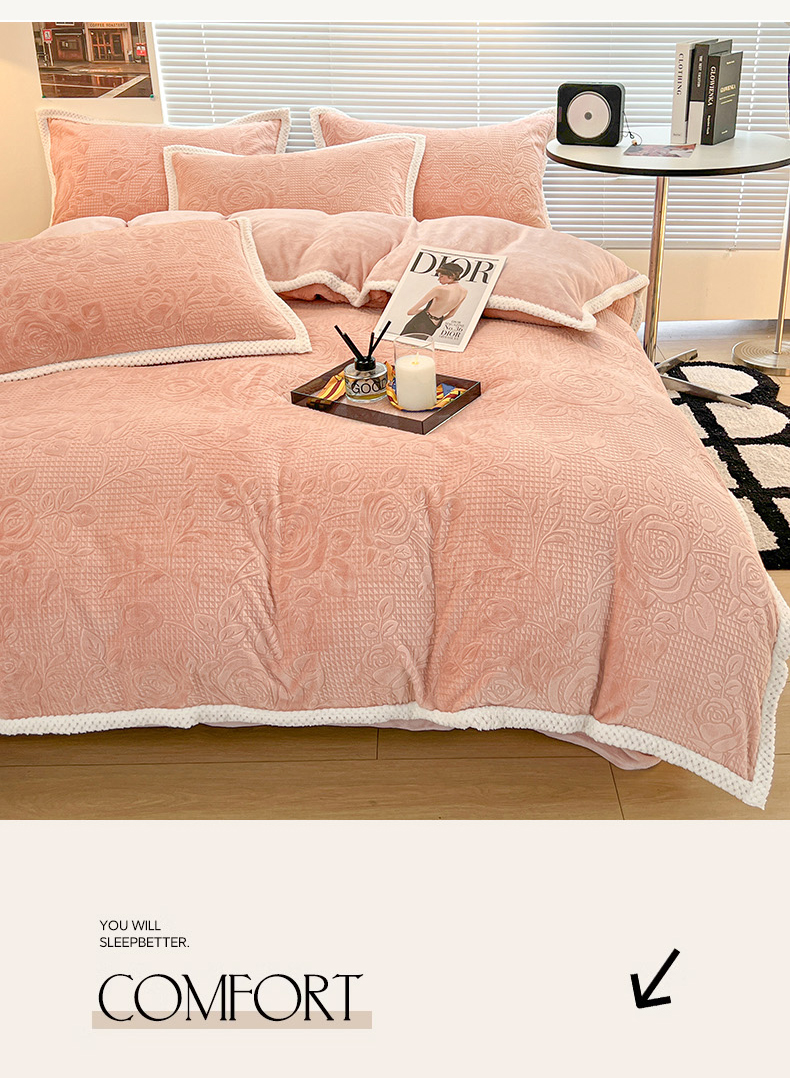 当前位置: 91家纺网 > 商品网购 > 床品套件 > 四件套 > 牛奶绒四件套 > 2024新款A类高克重3D立体雕花牛奶绒保暖系列套件单品-四件套 玫瑰恋情粉