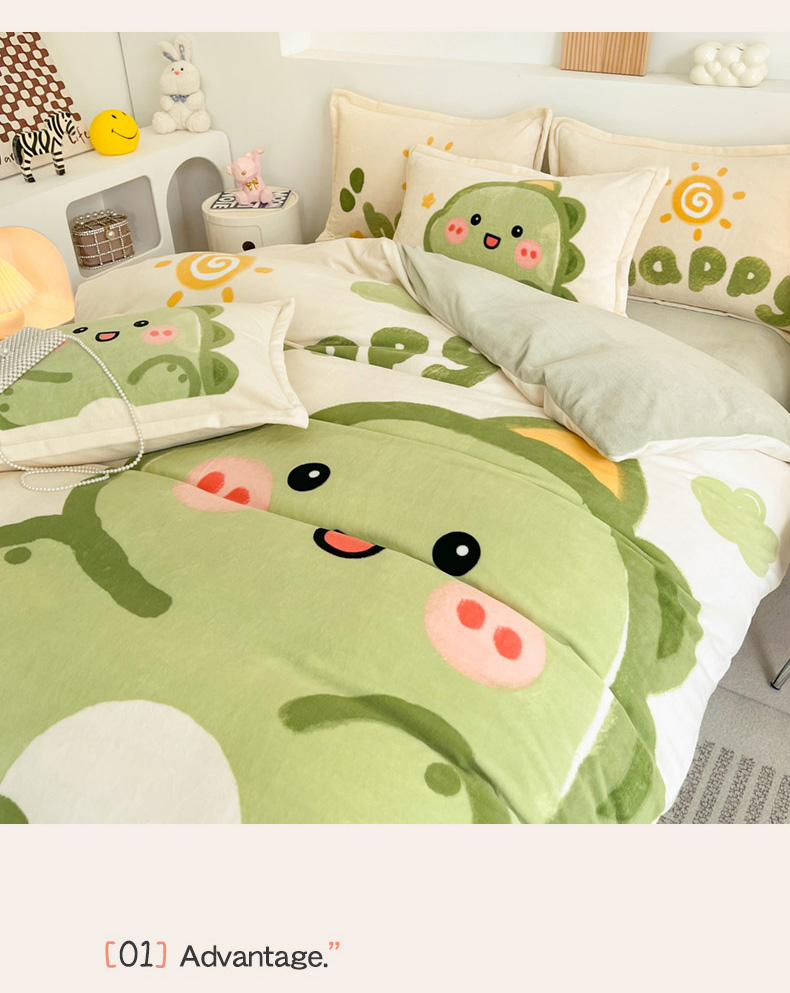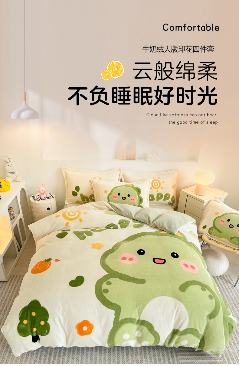 2024新款A类高克重牛奶绒大版印花保暖四件套 嘟嘟小龙