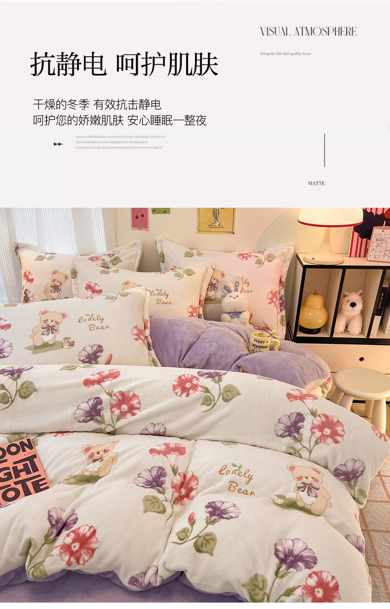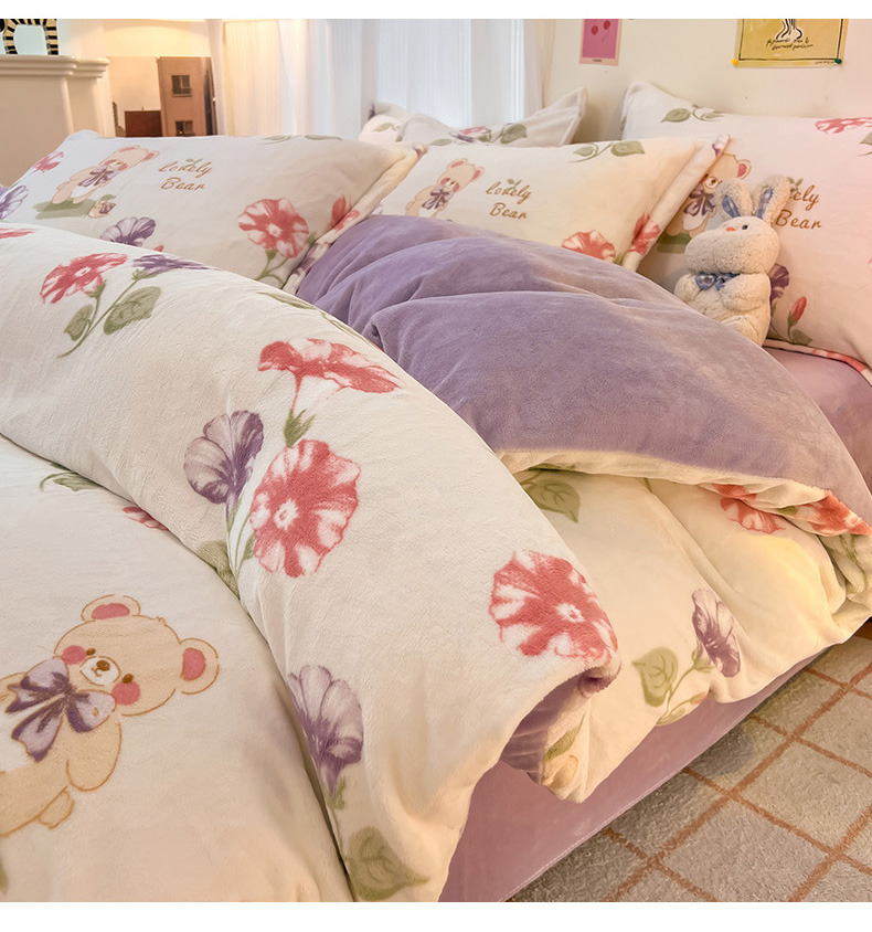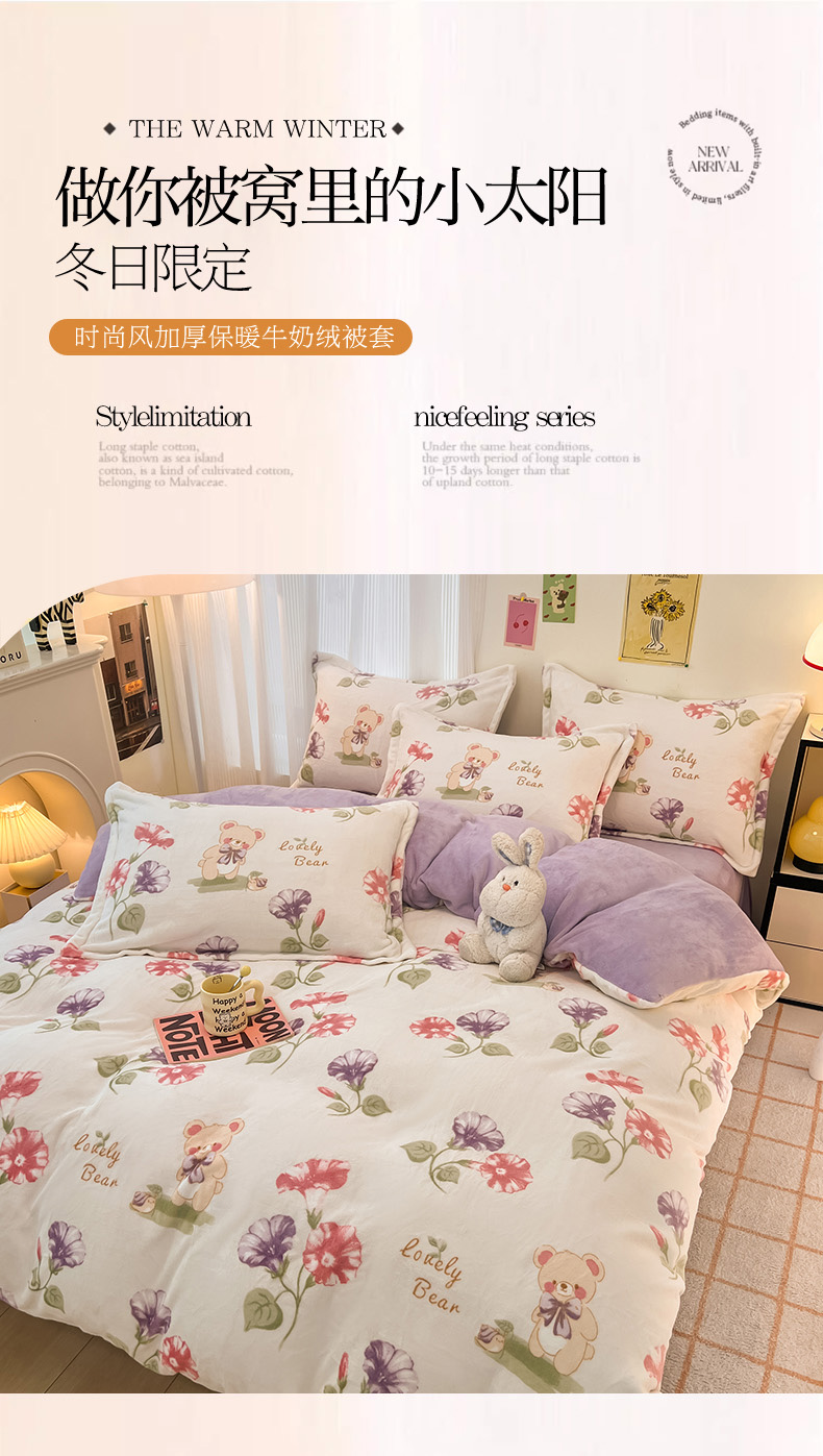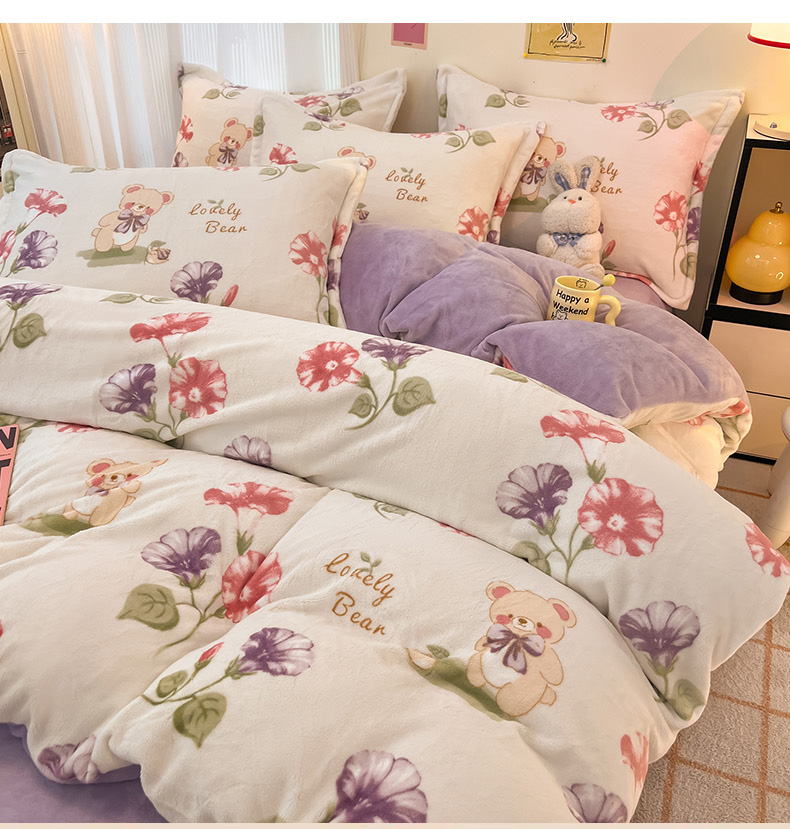 2024新款A类高克重时尚风牛奶绒加厚保暖系列套件单品-被套 牵牛花小熊