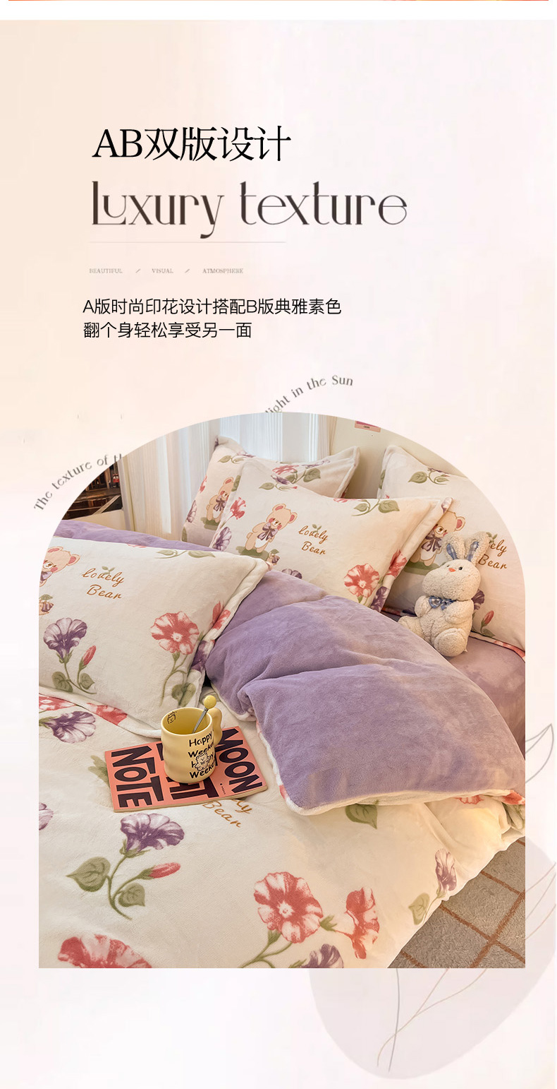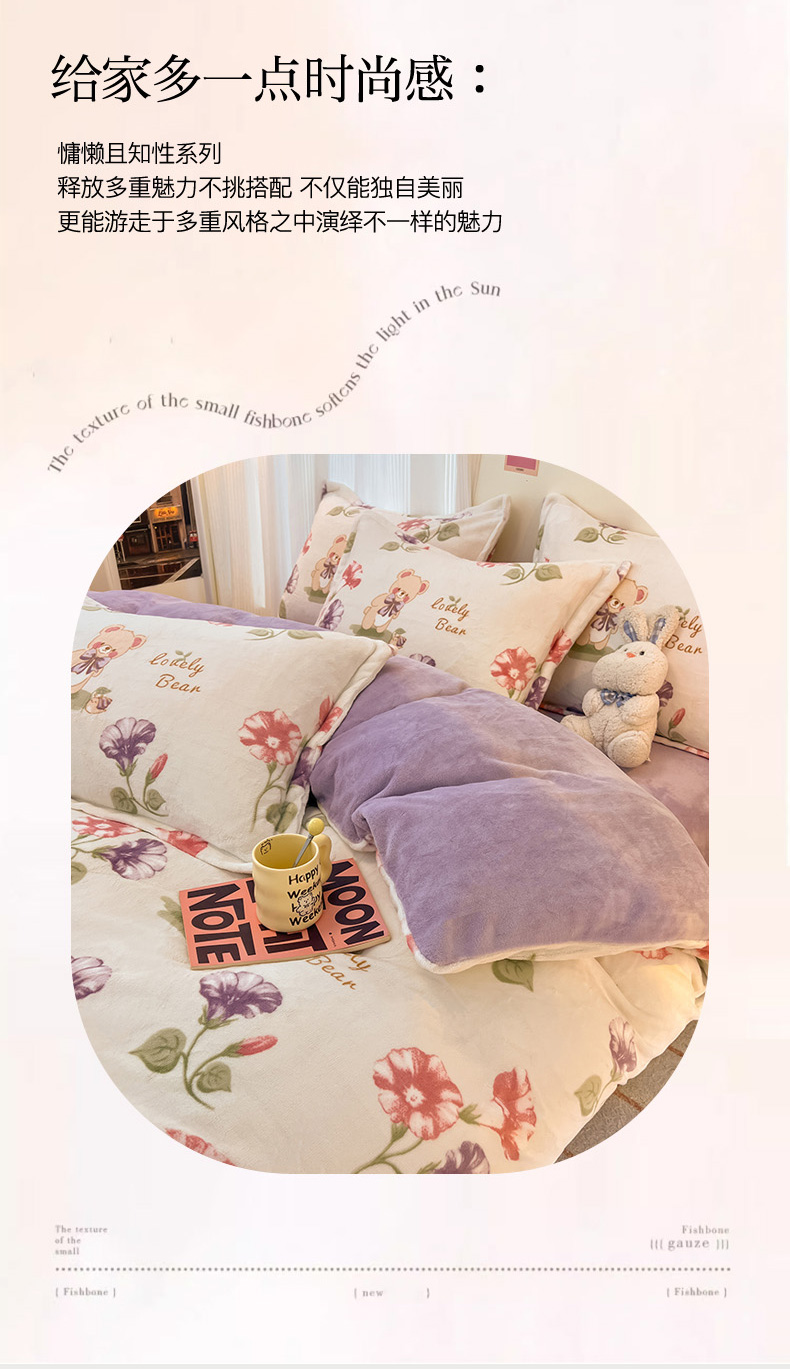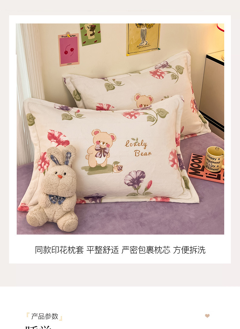 2024新款A类高克重时尚风牛奶绒加厚保暖系列套件单品-被套 牵牛花小熊