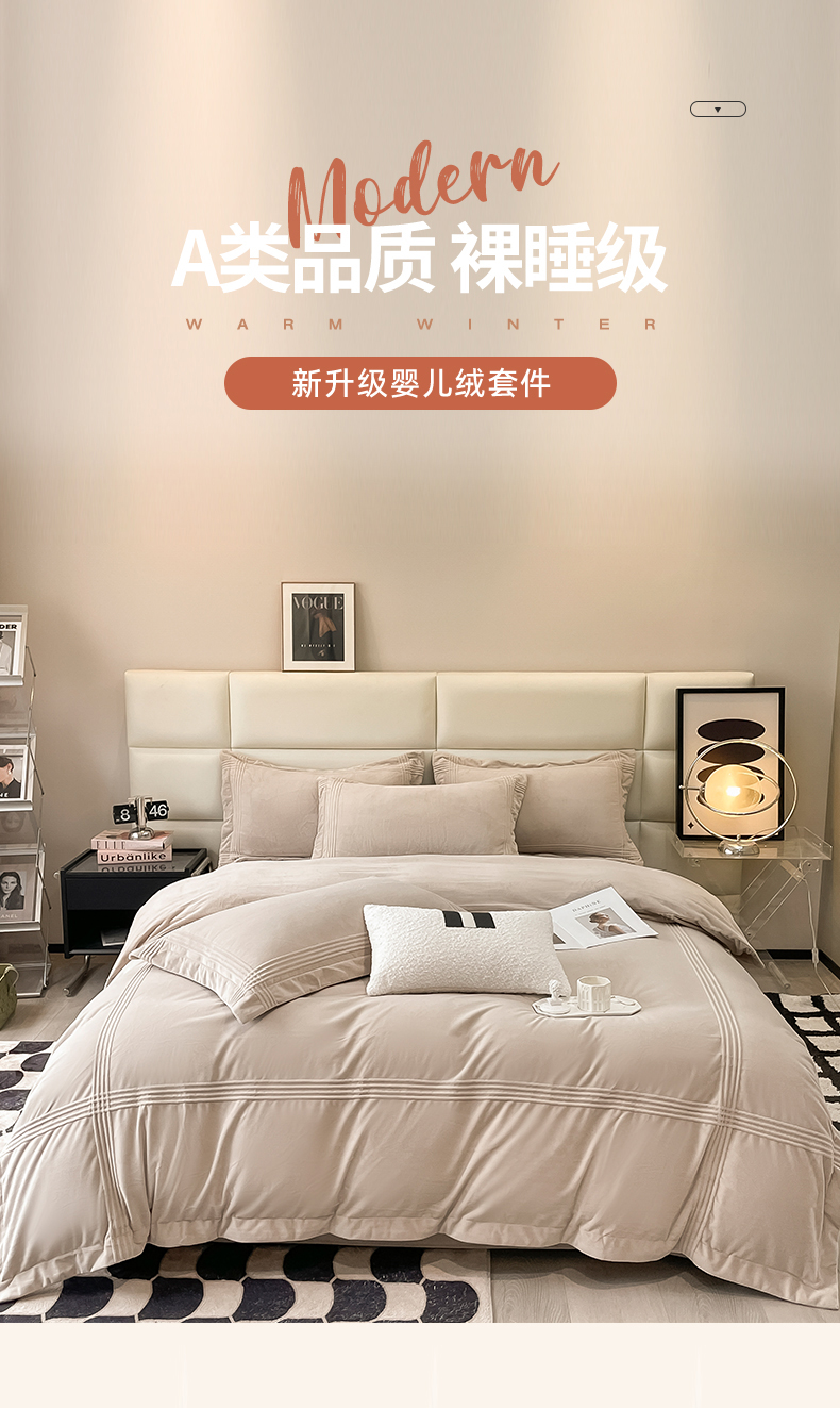 (总)禧澜庭 2025新款A类婴儿绒宝宝绒牛奶绒纯色双拼四件套,罗兰黄+米白,云雾灰+浅卡其,云黛紫+米白,初荷粉+浅卡其,梵克绿,海盐蓝+云雾灰,爵士灰,富山白+古栗棕,蒂姆蓝,初荷粉