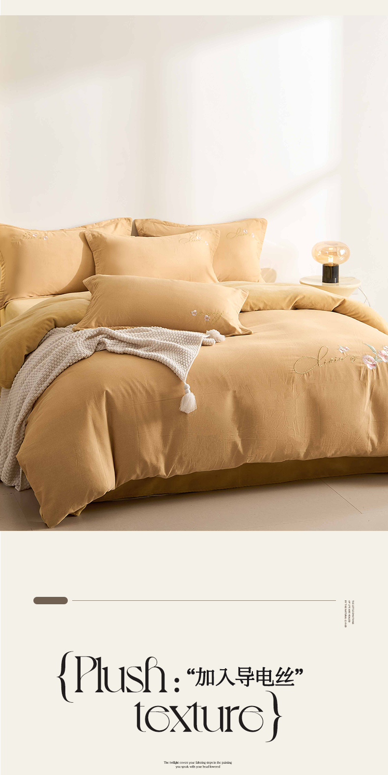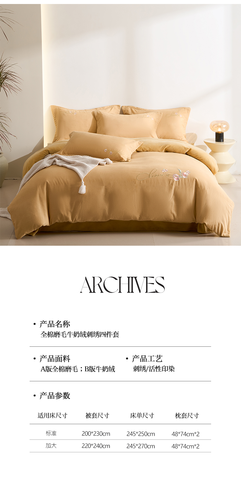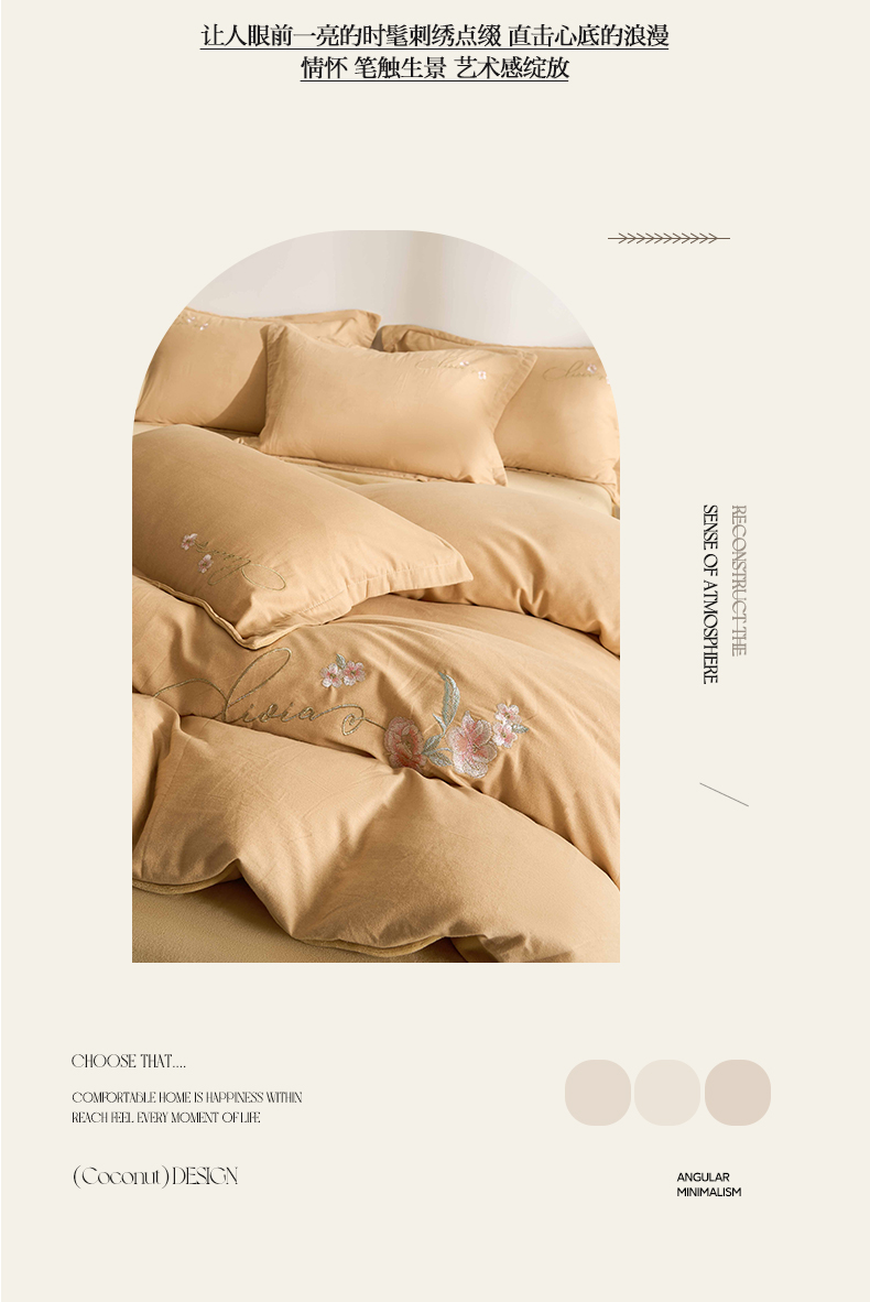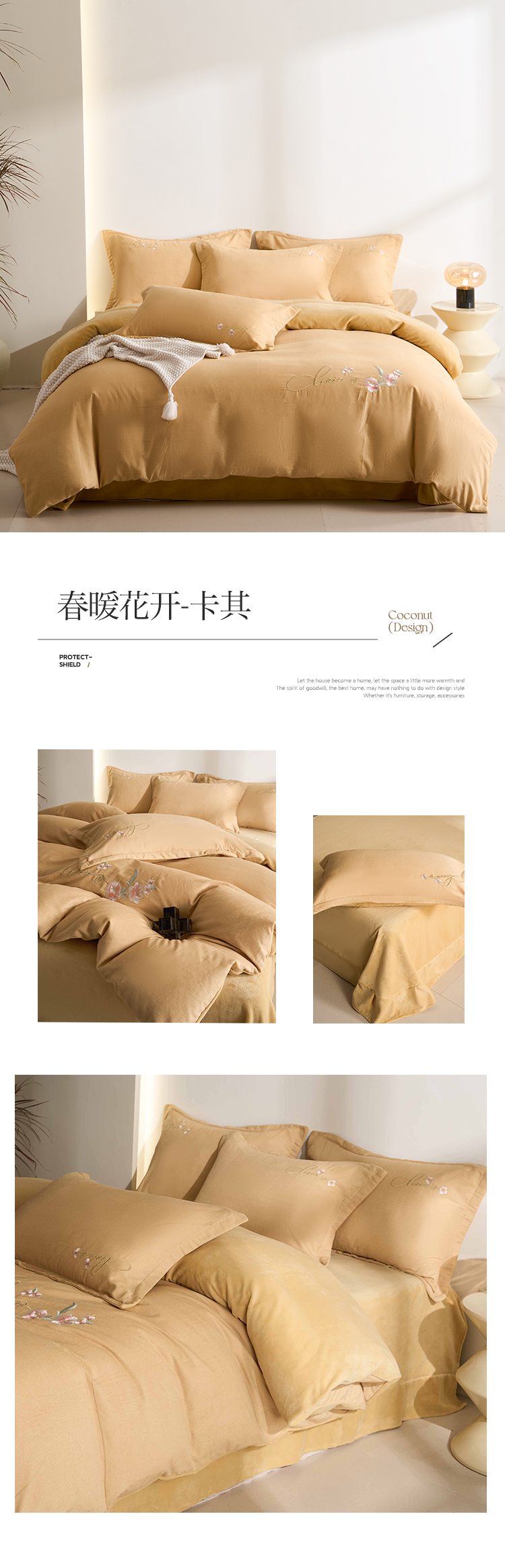 商品名称:慕希家纺 2024新款全棉磨毛牛奶绒刺绣四件套-春暖花开 春暖花开-卡其
