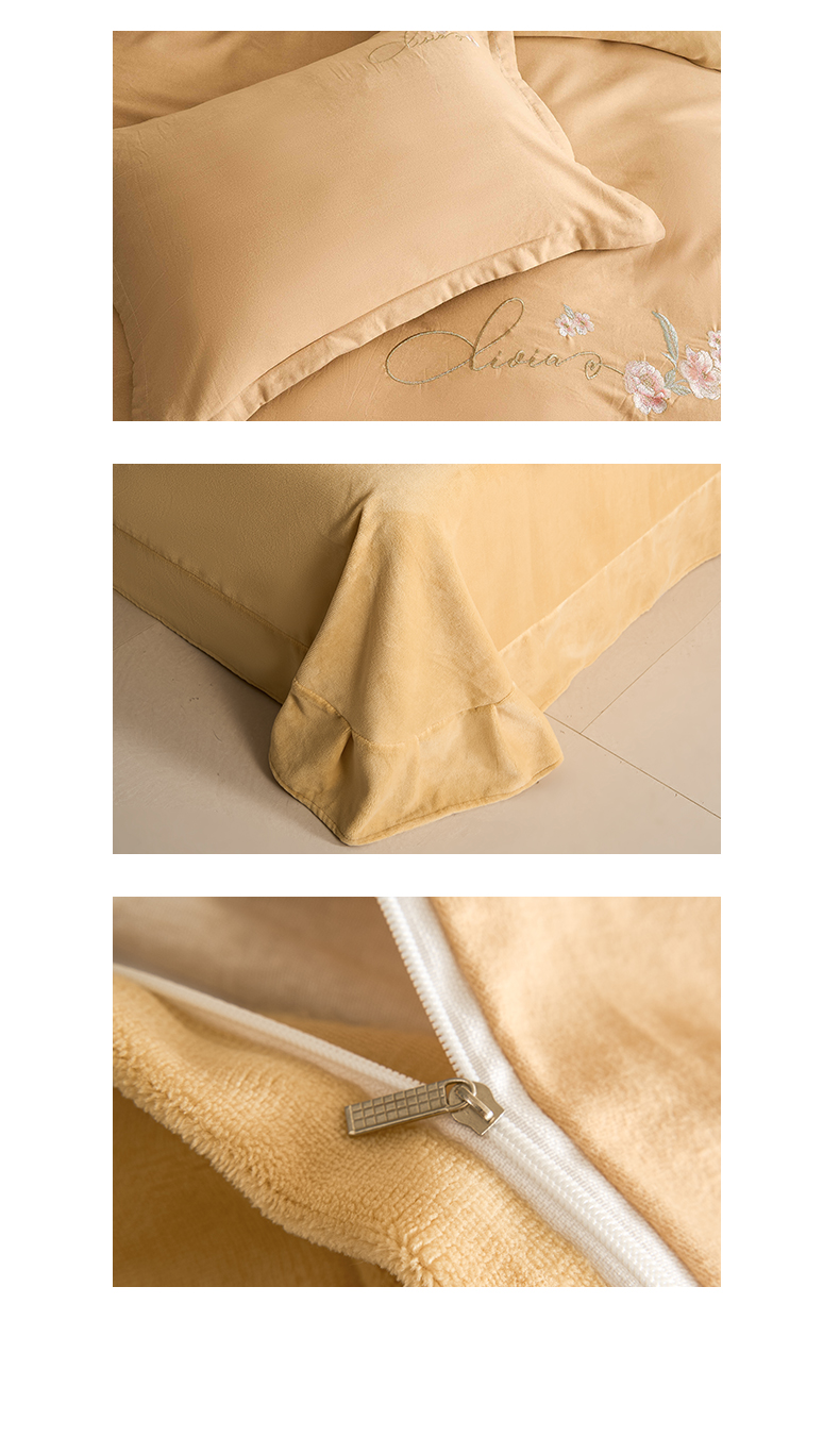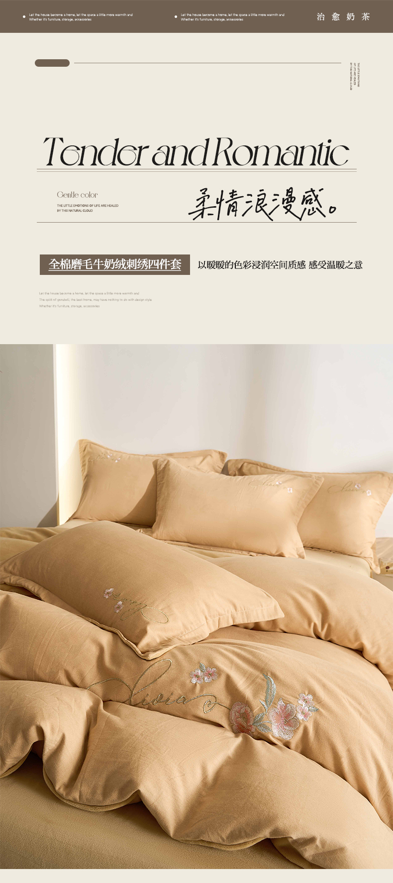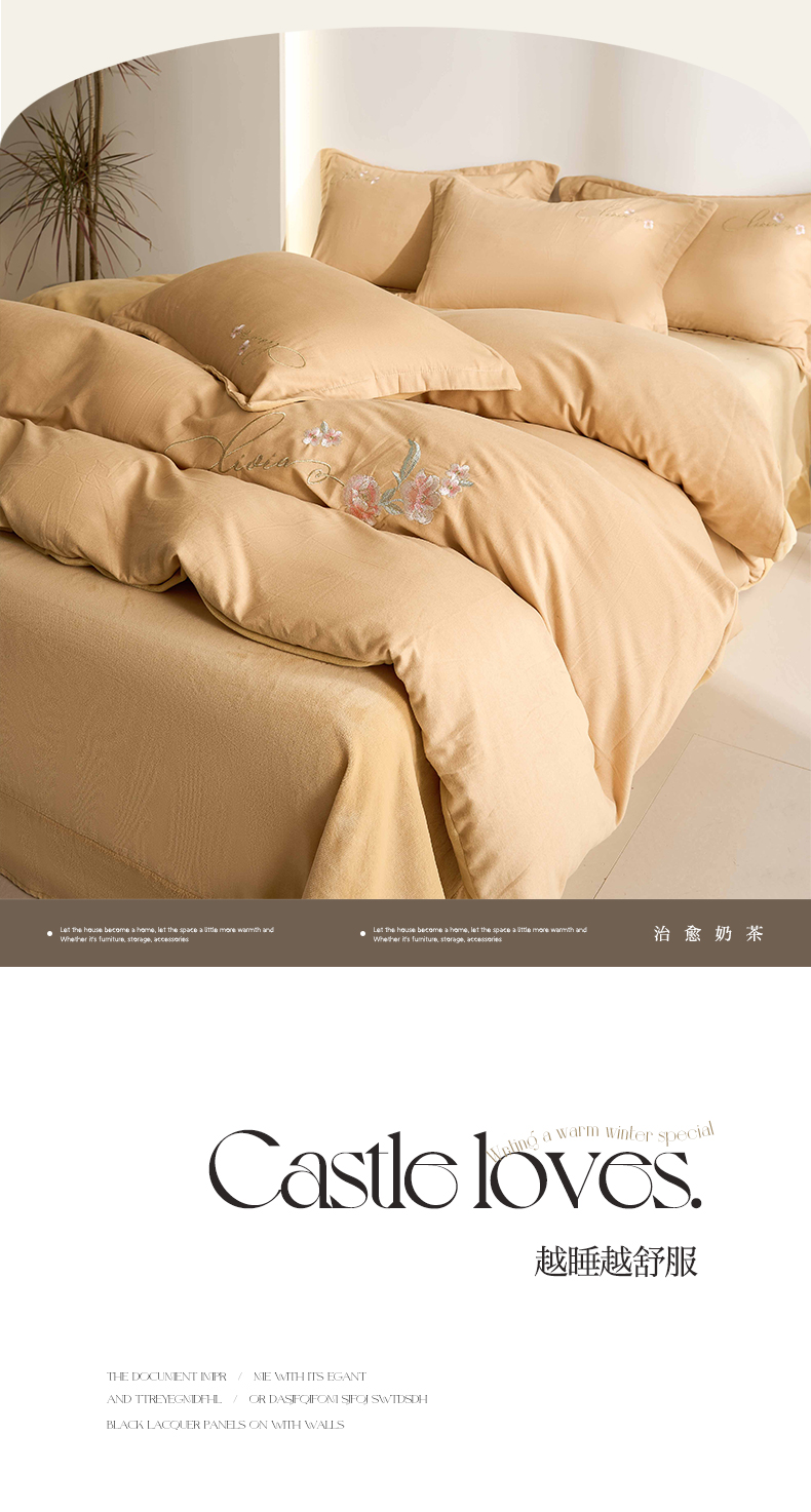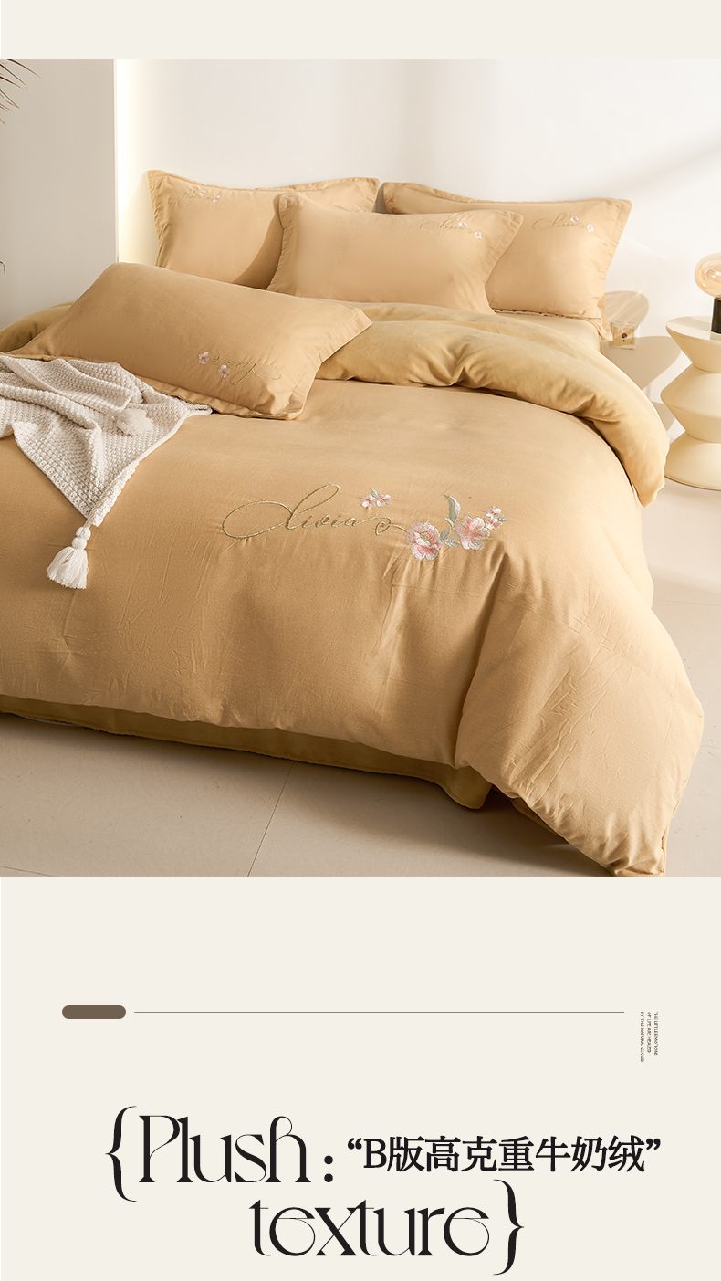 慕希家纺 2024新款全棉磨毛牛奶绒刺绣四件套-春暖花开 春暖花开-卡其