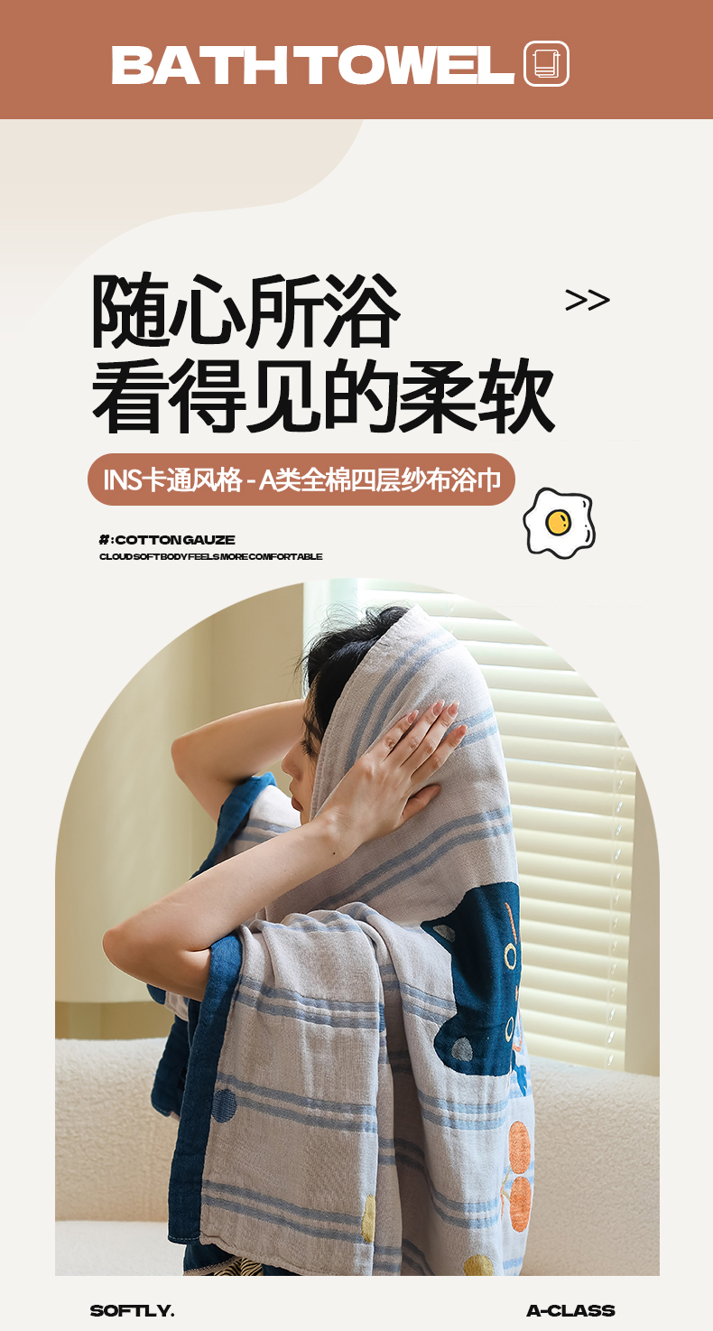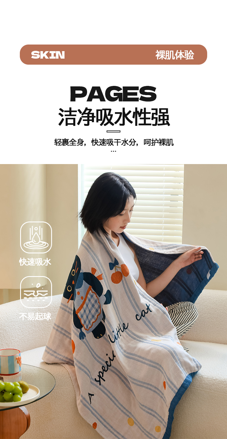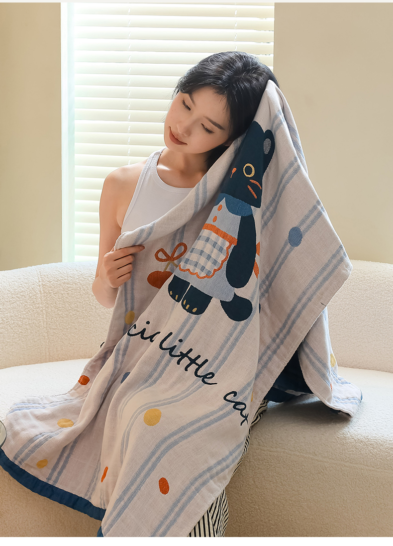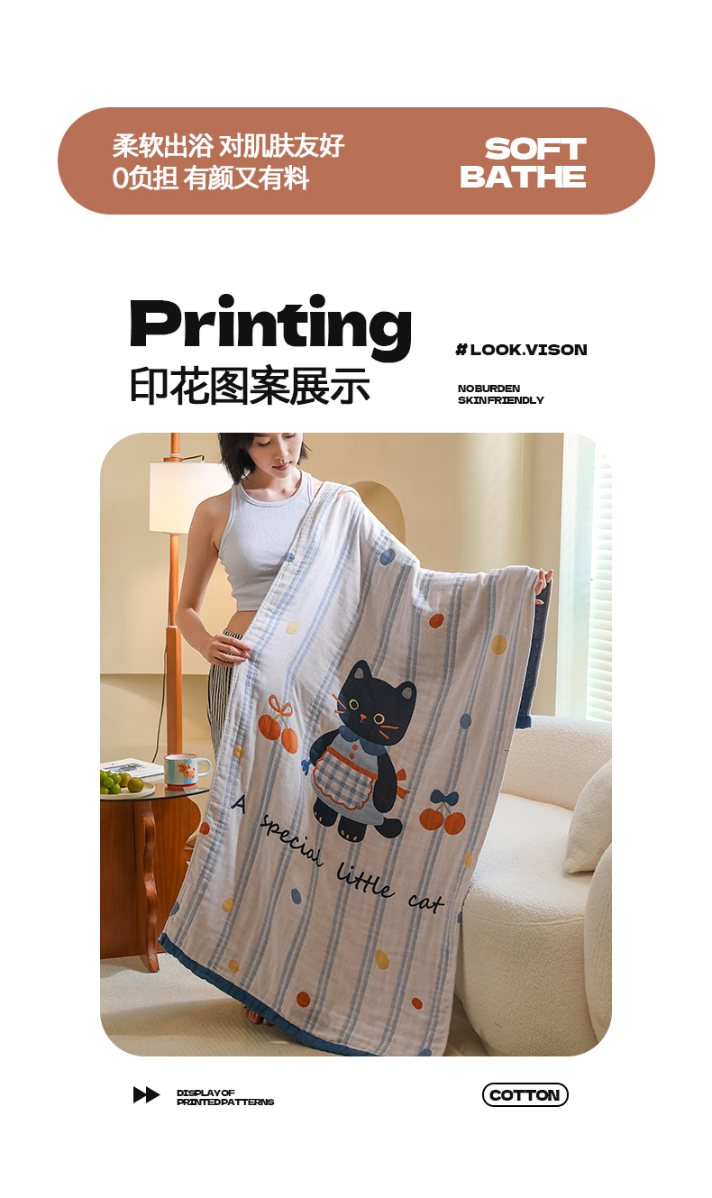 当前位置: 91家纺网 > 商品网购 > 居家日用 > 毛巾/浴巾/浴袍 > 浴巾 > 雯雨家纺 2024新款四层全棉纱布浴巾加大毛巾80*160cm 小黑猫