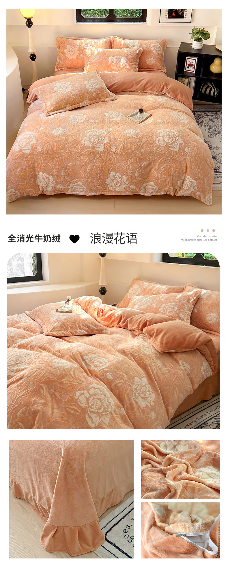 商品名称:新印象 2025新款高克重牛奶绒烂花四件套雕花绒四件套浪漫花语