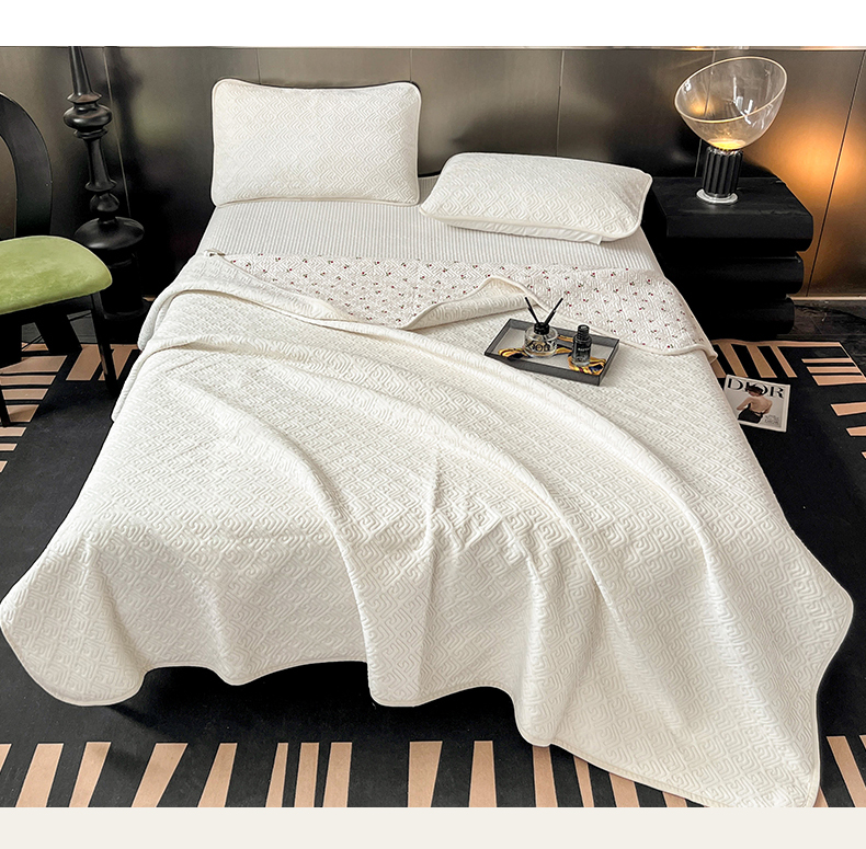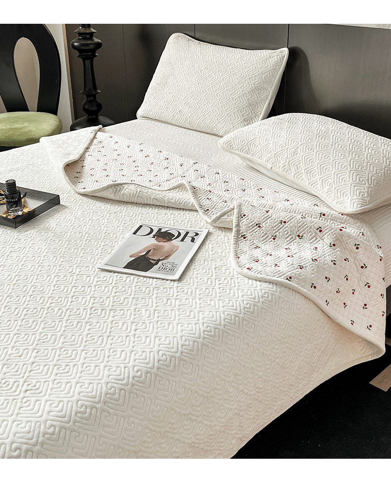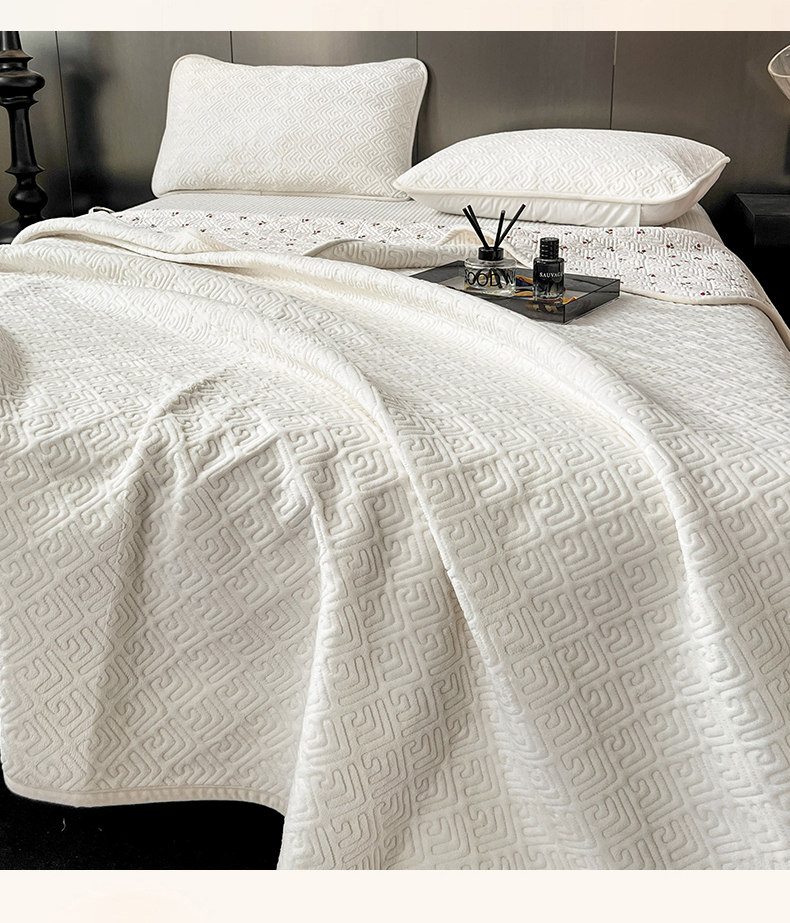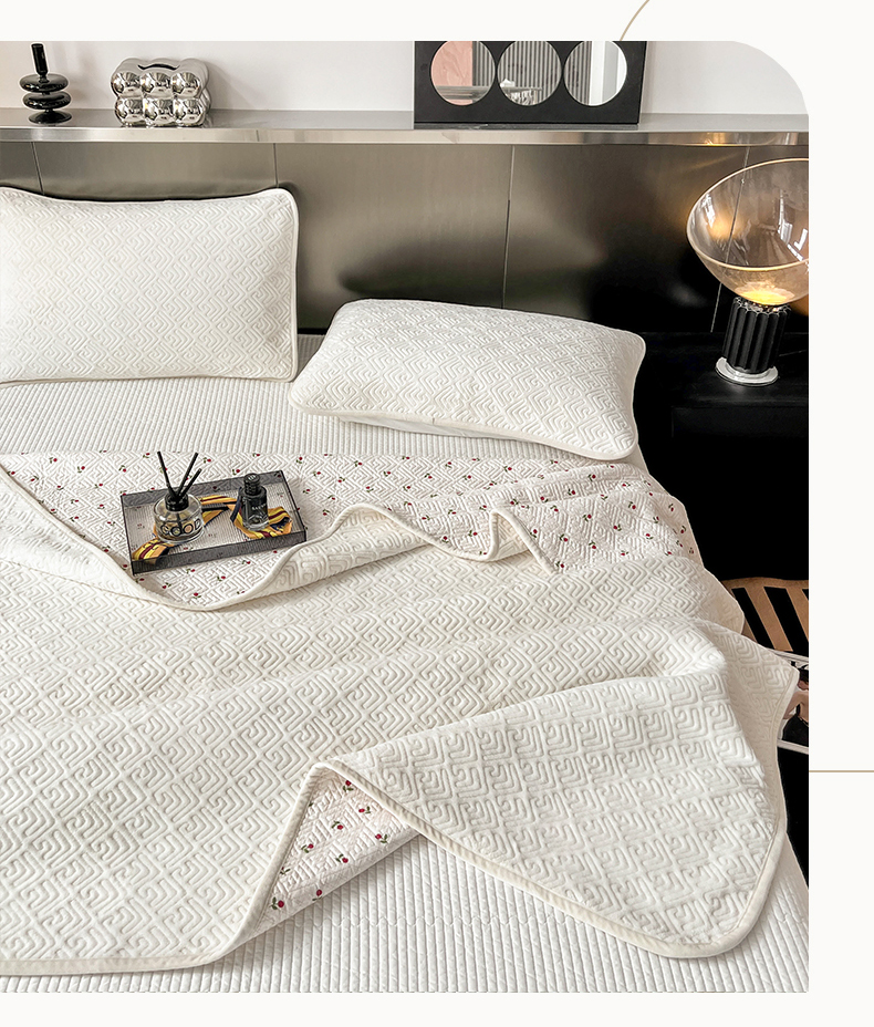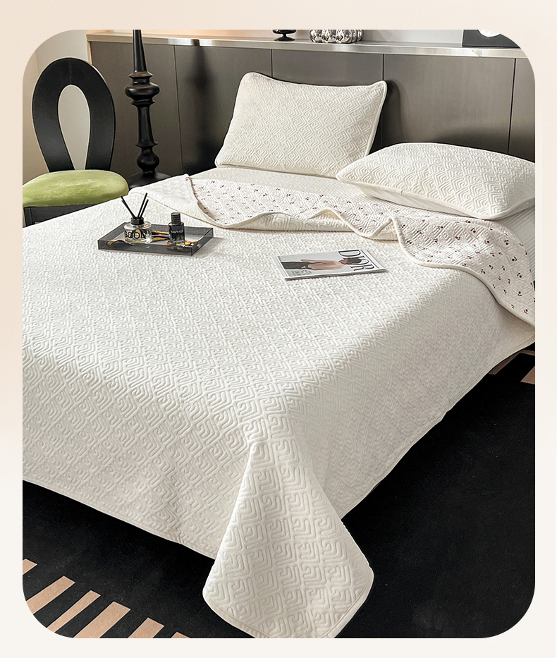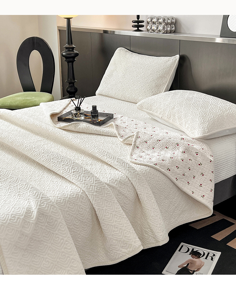 茉夕家纺 2024新款奶芙纯棉牛奶绒水洗床盖 奶芙-米白