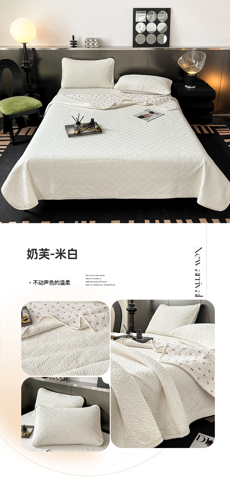 商品名称:茉夕家纺 2024新款奶芙纯棉牛奶绒水洗床盖 奶芙-米白