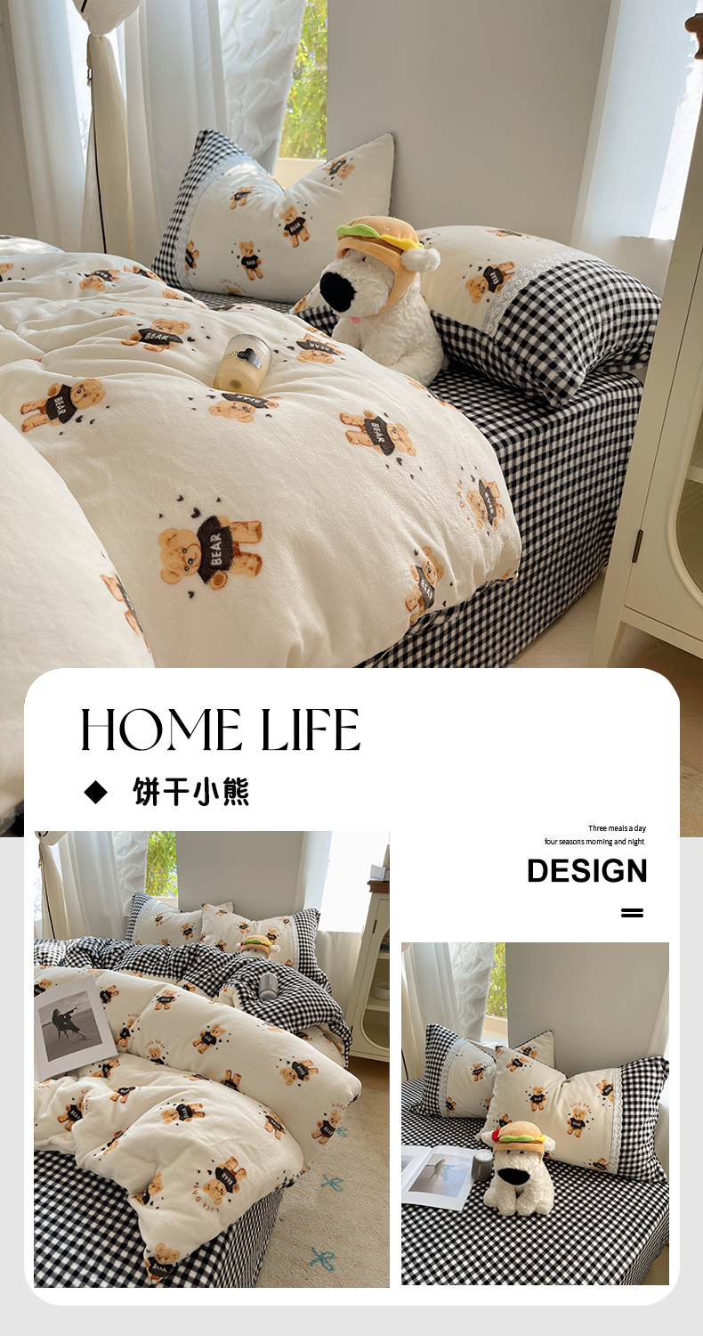当前位置: 91家纺网 > 商品网购 > 床品套件 > 四件套 > 牛奶绒四件套 > 花漾家居 2024新款小红书ins风韩版棉质小花边牛奶绒四件套(提供买家秀) 饼干小熊