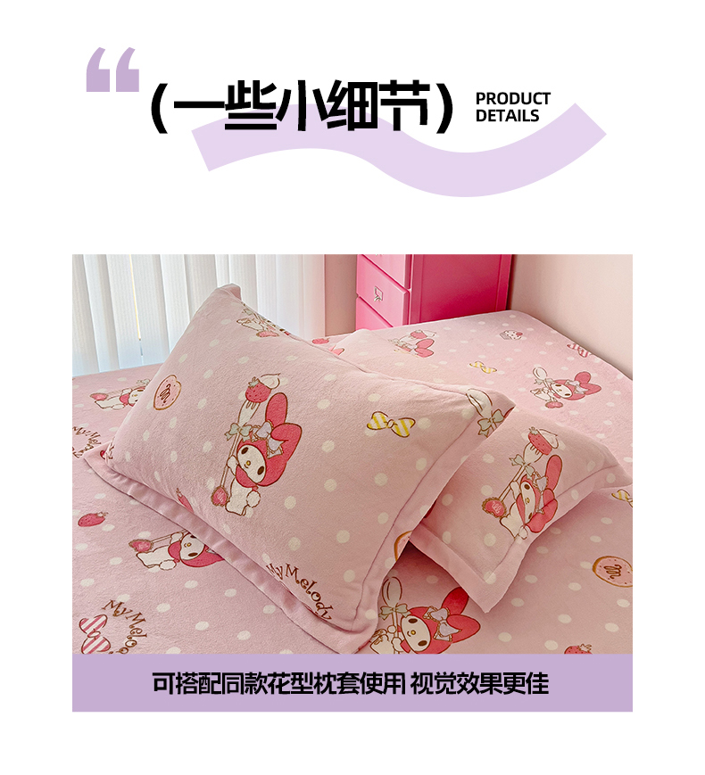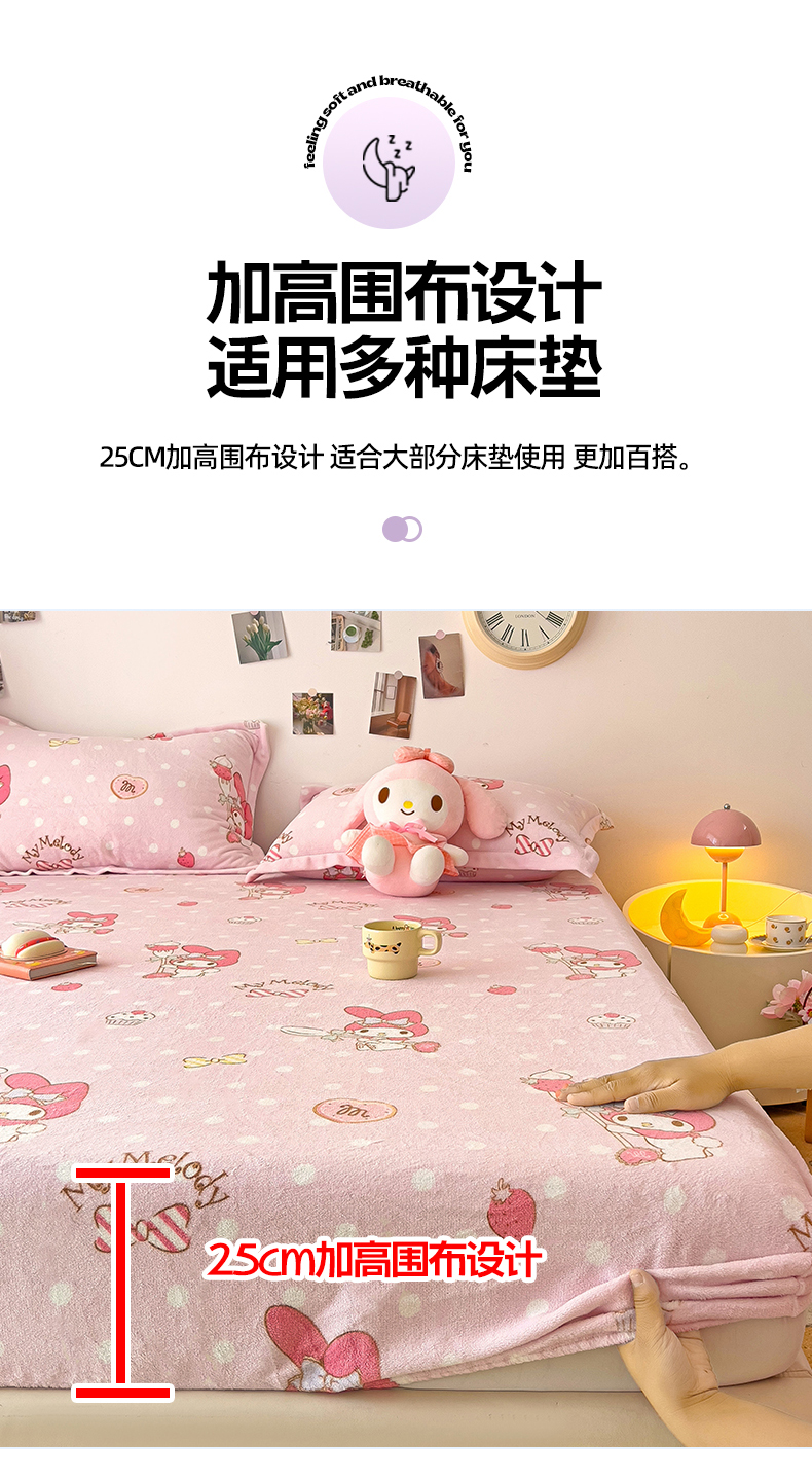 • 91家纺网 家纺一手货源 找家纺 KT猫直营店 2024新款三丽鸥正版授权库洛米牛奶绒单品床笠 奶油美乐蒂-笠