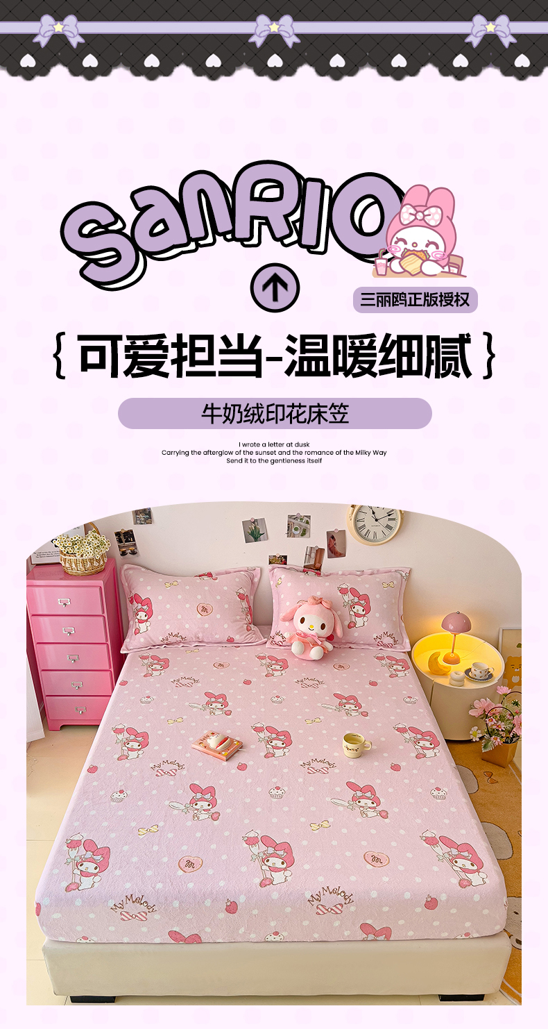 KT猫直营店 2024新款三丽鸥正版授权库洛米牛奶绒单品床笠 奶油美乐蒂-笠