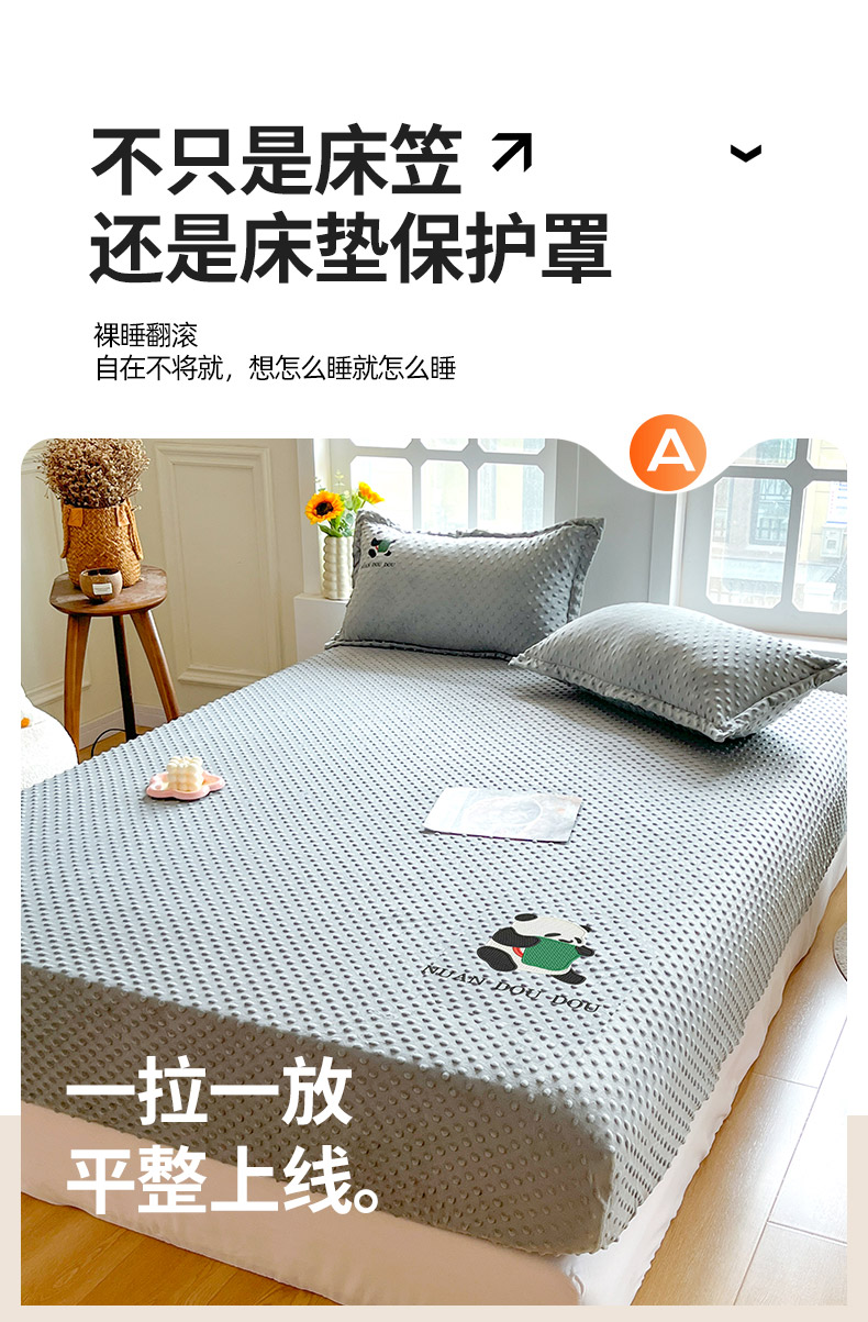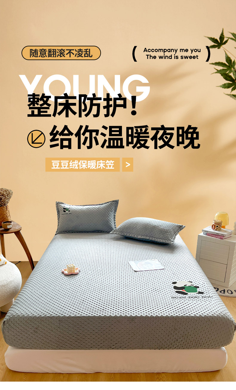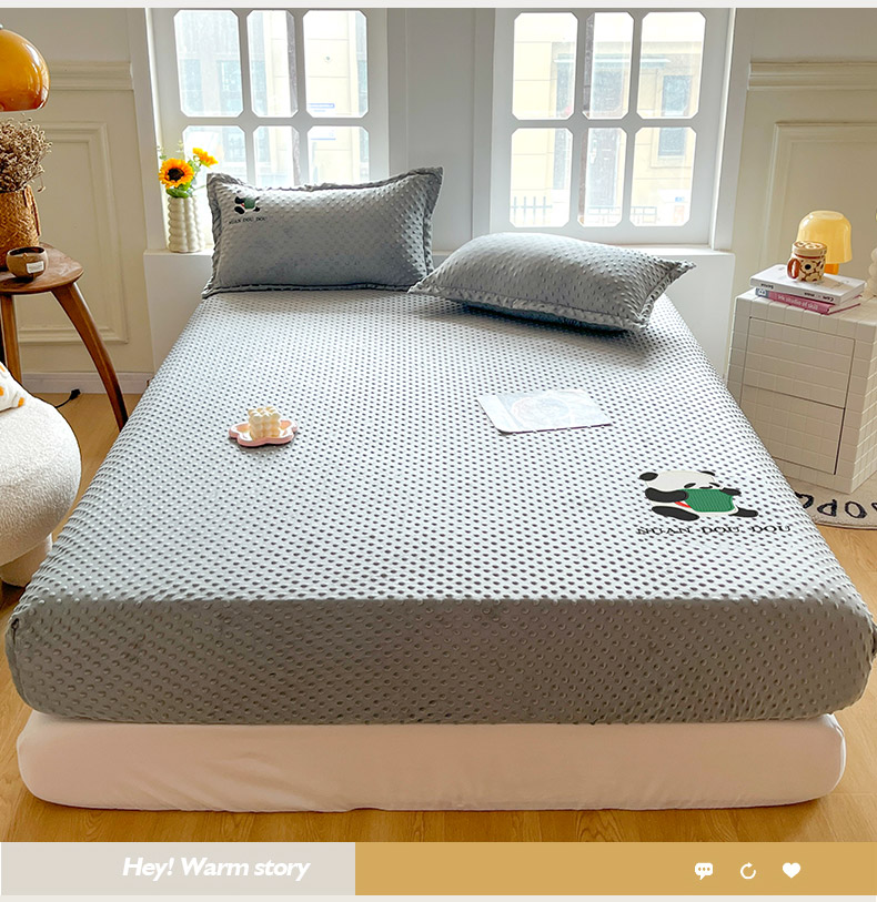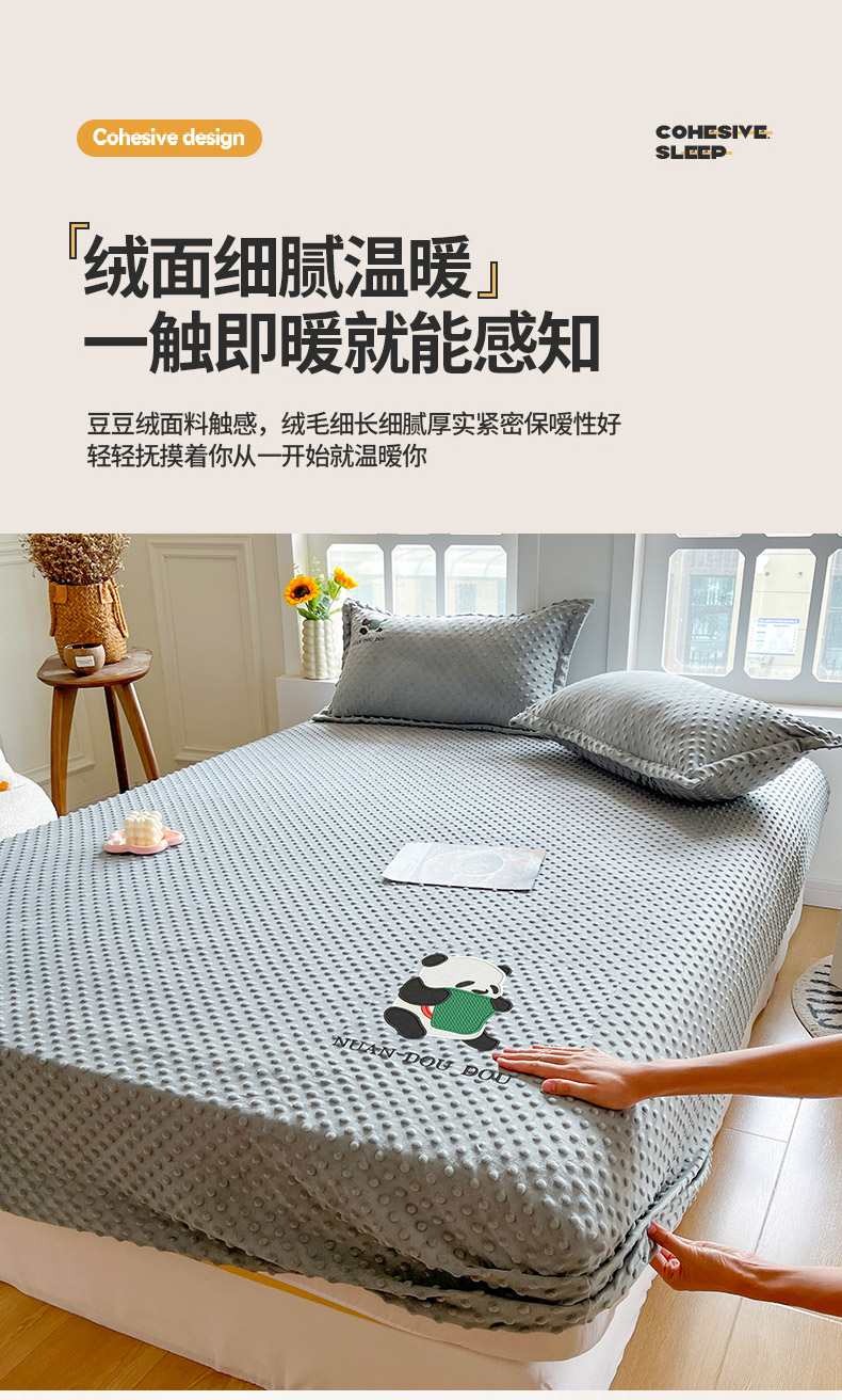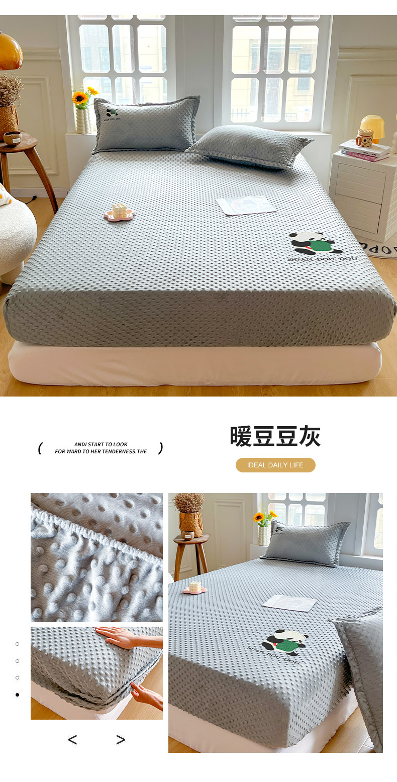 商品名称:美宜家 2025新款加厚宝宝绒暖豆豆纯色烫画床笠 暖豆豆灰